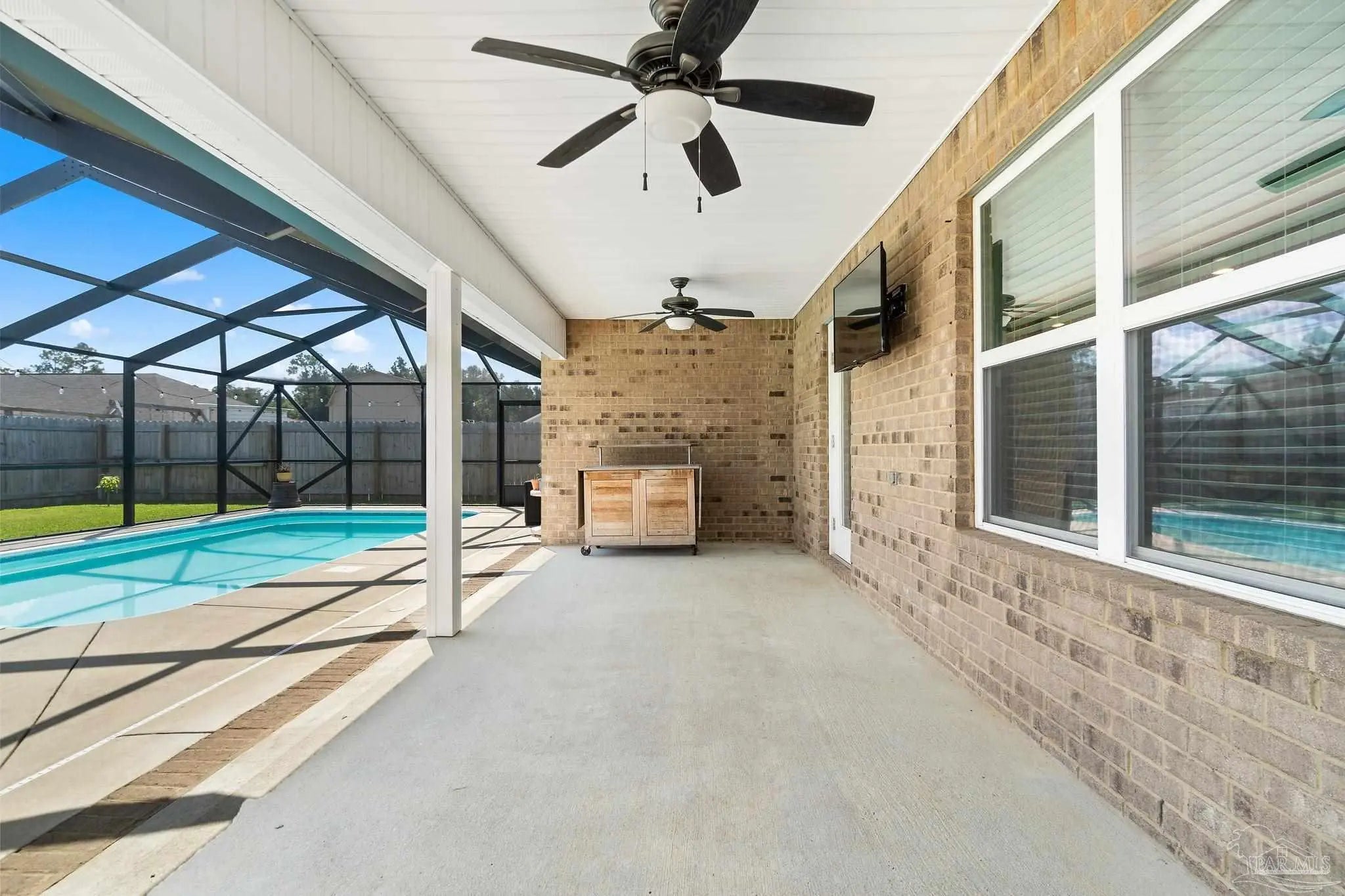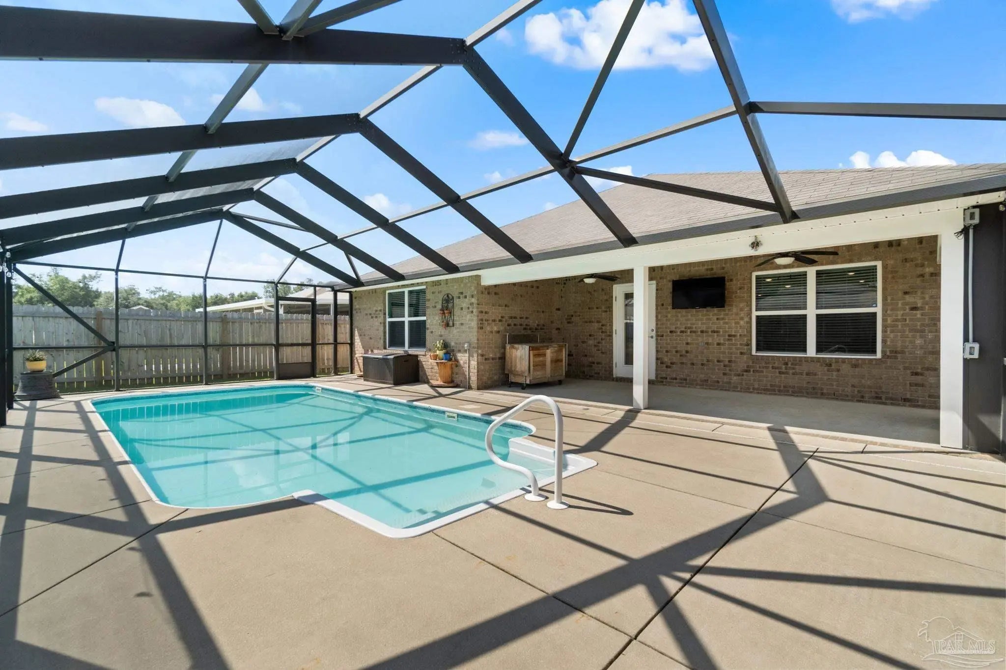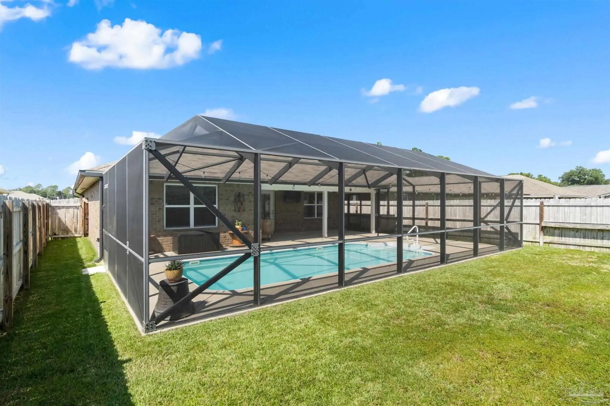 This beautifully upgraded 4-bedroom, 2-bath home in desirable Milton blends style, comfort, and smart design. From the spacious foyer to the elegant LVP flooring throughout the main living areas, every detail has been thoughtfully considered. The chef’s kitchen features quartz countertops, a granite sink, and custom pantry shelving for maximum functionality. The primary suite offers custom-designed closets for both elegance and organization, with similar upgrades in the front bedroom. Step outside to your private oasis: a fully enclosed, heated saltwater pool, a covered patio with two new ceiling fans, and a lush lawn maintained by a full irrigation system. Energy efficiency is a standout with paid-off solar panels keeping electric bills around $25/month, plus a whole house generator for peace of mind. A UV HVAC system and recently serviced AC and generator add to the home’s reliability. The garage includes overhead storage for easy organization. This truly move-in ready home is packed with high-end features. Schedule your showing today! Buyer to verify all information during due diligence.