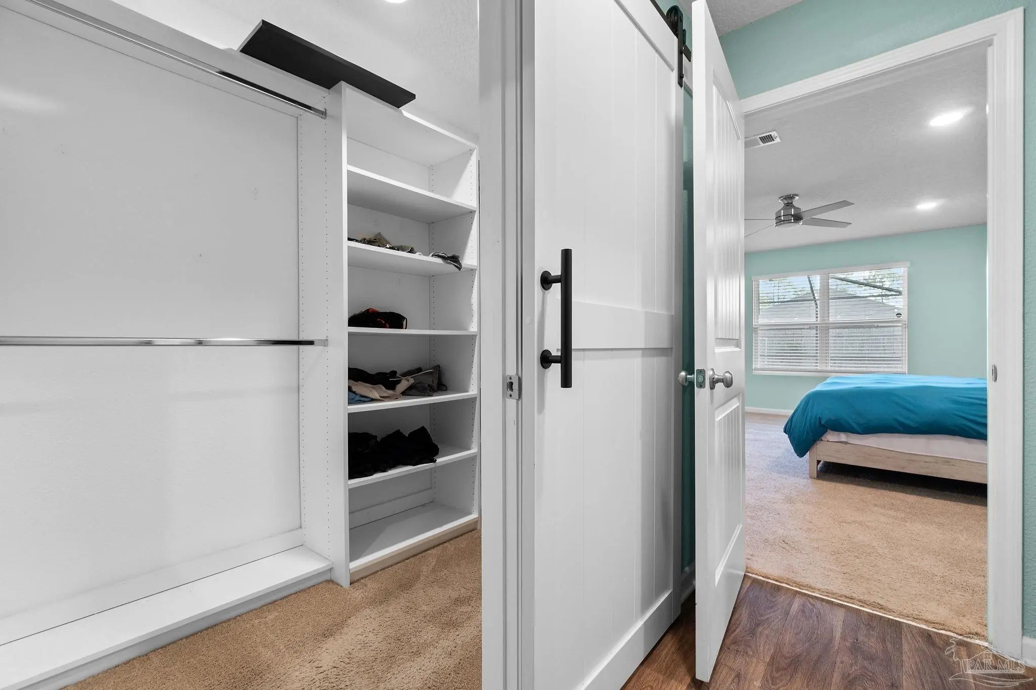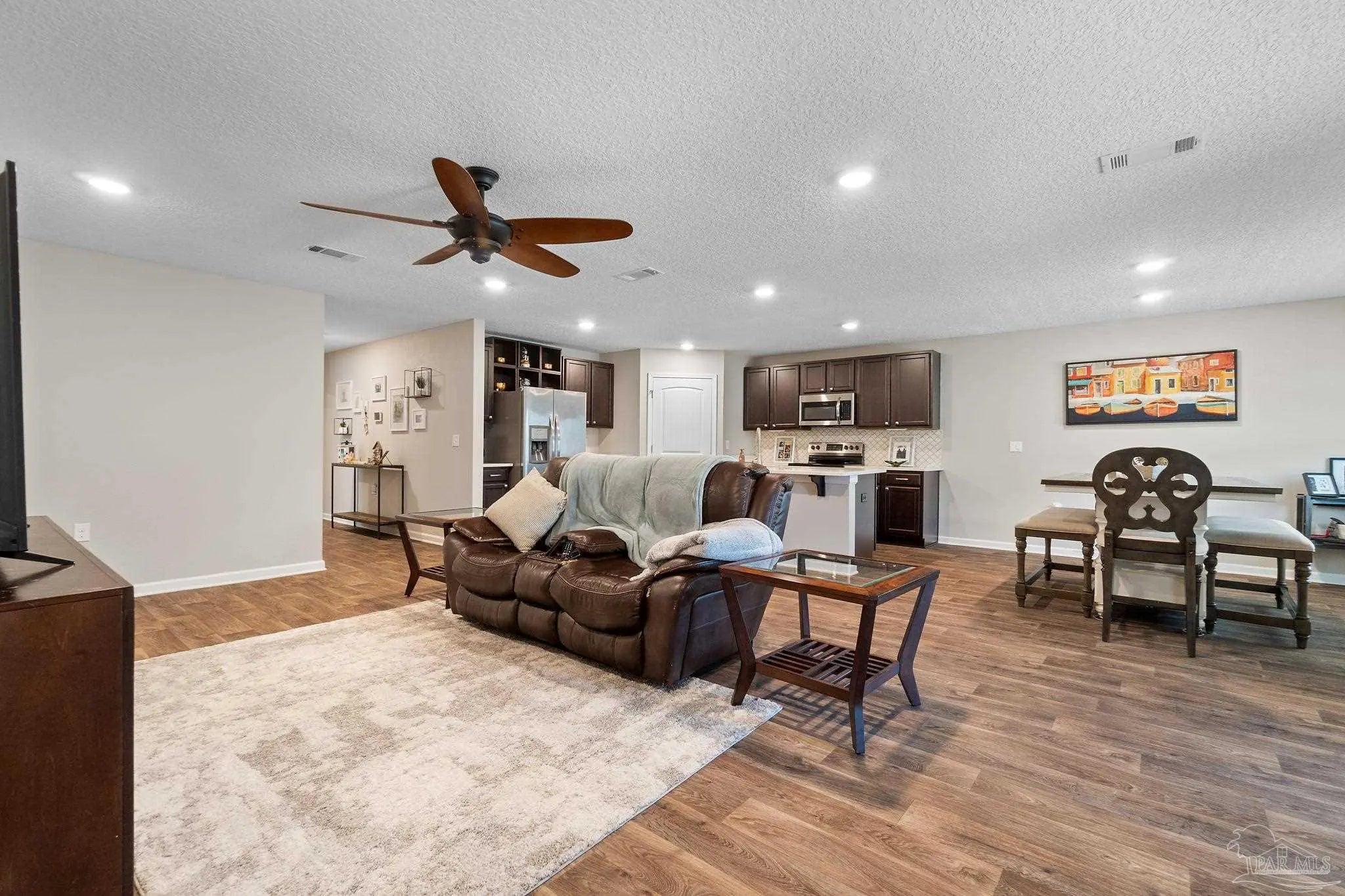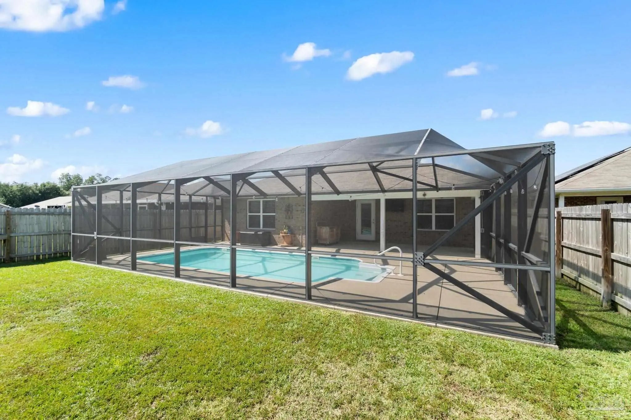 This beautifully upgraded 4-bedroom, 2-bath home in desirable Milton blends style, comfort, and smart design. From the spacious foyer to the elegant LVP flooring throughout the main living areas, every detail has been thoughtfully considered. The chef’s kitchen features quartz countertops, a granite sink, and custom pantry shelving for maximum functionality. The primary suite offers custom-designed closets for both elegance and organization, with similar upgrades in the front bedroom. Step outside to your private oasis: a fully enclosed, heated saltwater pool, a covered patio with two new ceiling fans, and a lush lawn maintained by a full irrigation system. Energy efficiency is a standout with paid-off solar panels keeping electric bills around $25/month, plus a whole house generator for peace of mind. A UV HVAC system and recently serviced AC and generator add to the home’s reliability. The garage includes overhead storage for easy organization. This truly move-in ready home is packed with high-end features. Schedule your showing today! Buyer to verify all information during due diligence.