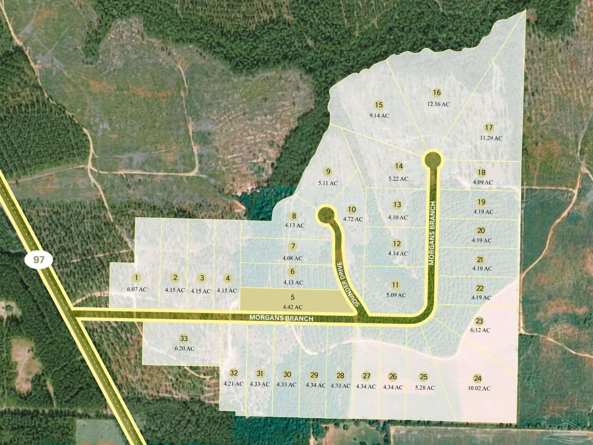 Welcome to Bluewater Creek Estates — Molino’s premier gated acreage community, offering 33 exclusive homesites from 4 to 12 acres with paved road frontage. Choose your own floor plan and bring your own builder. This 4.42-acre corner parcel sits at an elevation of about 200 feet. Its long frontage, mature pines, and scenic views create a premium homesite. The raised terrain and dual access enhance both appeal and convenience. Bluewater Creek Estates offers space, privacy, and nature just minutes from daily conveniences — 3 minutes to Hwy 29, 20 minutes to Navy Federal, 25 minutes to Downtown Pensacola, and 1 hour to the beach. With paved roads, water service, and natural gas available, it blends the peace of country living with modern infrastructure. This one-of-a-kind opportunity gives future residents the option to choose their own floor plan and select their own builder. Schedule your private tour today.