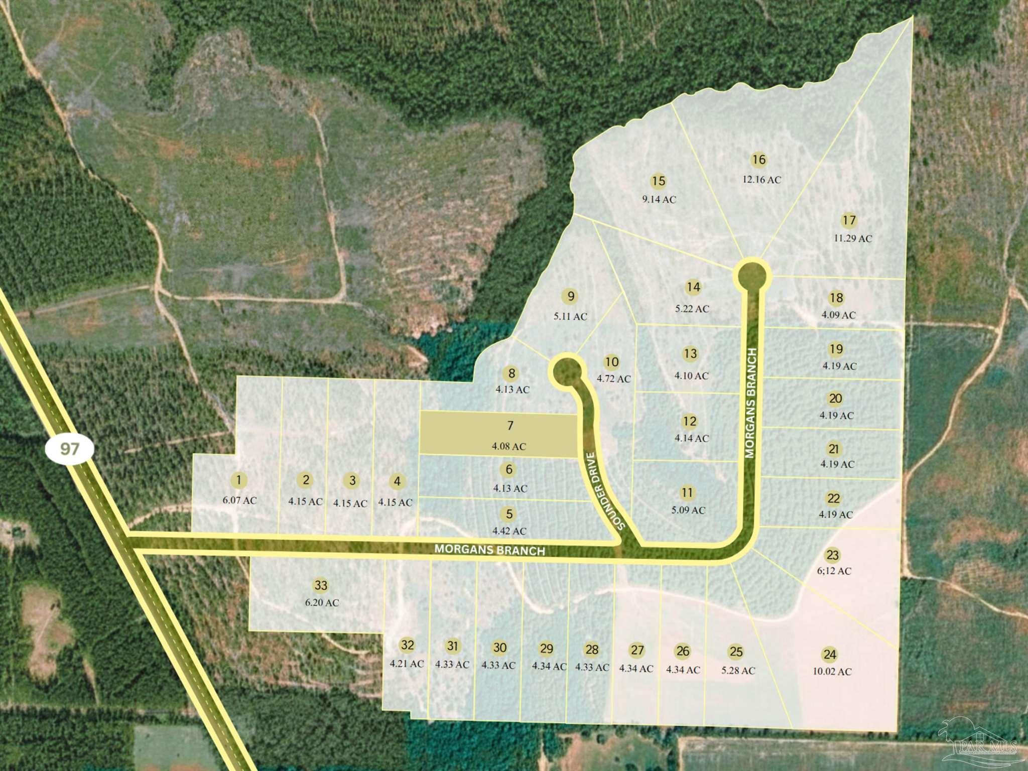 Welcome to Bluewater Creek Estates — Molino’s premier gated acreage community, offering 33 exclusive homesites from 4 to 12 acres with paved road frontage. Choose your own floor plan and bring your own builder. This 4.08-acre parcel is positioned on elevated ground of roughly 190–200 feet and combines mature hardwoods and pines with natural buffers that create privacy. The topography adds character while maintaining flexibility for a custom home design. Stunning north views add to its appeal. Tucked away on a quiet side road, it offers peace and seclusion. Bluewater Creek Estates offers space, privacy, and nature just minutes from daily conveniences — 3 minutes to Hwy 29, 20 minutes to Navy Federal, 25 minutes to Downtown Pensacola, and 1 hour to the beach. With paved roads, water service, and natural gas available, it blends the peace of country living with modern infrastructure. This one-of-a-kind opportunity gives future residents the option to choose their own floor plan and select their own builder. Schedule your private tour today.