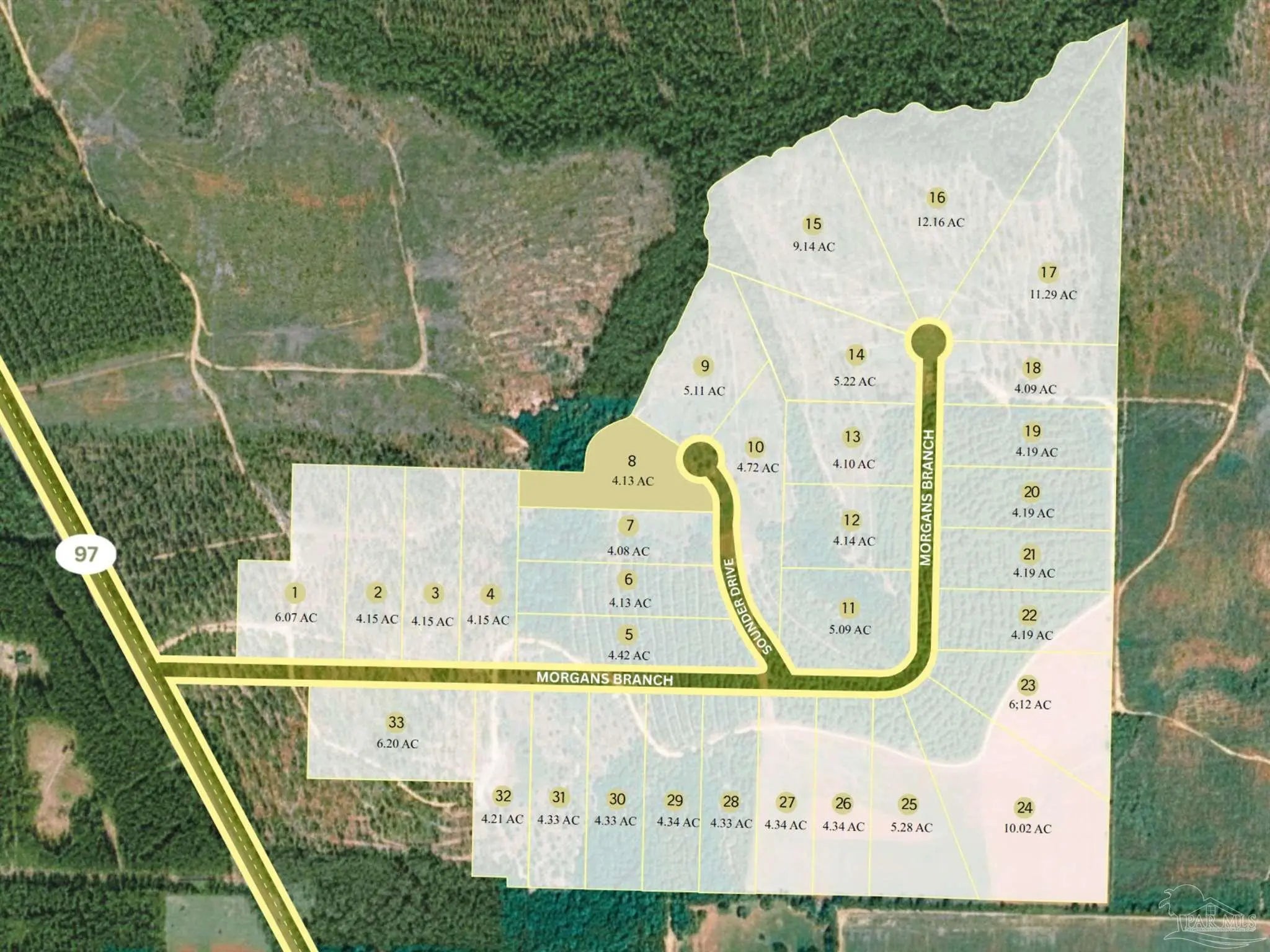 Welcome to Bluewater Creek Estates — Molino’s premier gated acreage community, offering 33 exclusive homesites from 4 to 12 acres with paved road frontage. Choose your own floor plan and bring your own builder. This 4.13-acre parcel is located on a cul-de-sac and offers a private setting with wooded acreage and stunning north-facing views. The cul-de-sac position ensures quiet surroundings, while elevation and vegetation contribute to its appeal as a tranquil homesite. Tucked away on a quiet side road, it enhances the sense of privacy. Bluewater Creek Estates offers space, privacy, and nature just minutes from daily conveniences — 3 minutes to Hwy 29, 20 minutes to Navy Federal, 25 minutes to Downtown Pensacola, and 1 hour to the beach. With paved roads, water service, and natural gas available, it blends the peace of country living with modern infrastructure. This one-of-a-kind opportunity gives future residents the option to choose their own floor plan and select their own builder. Schedule your private tour today.