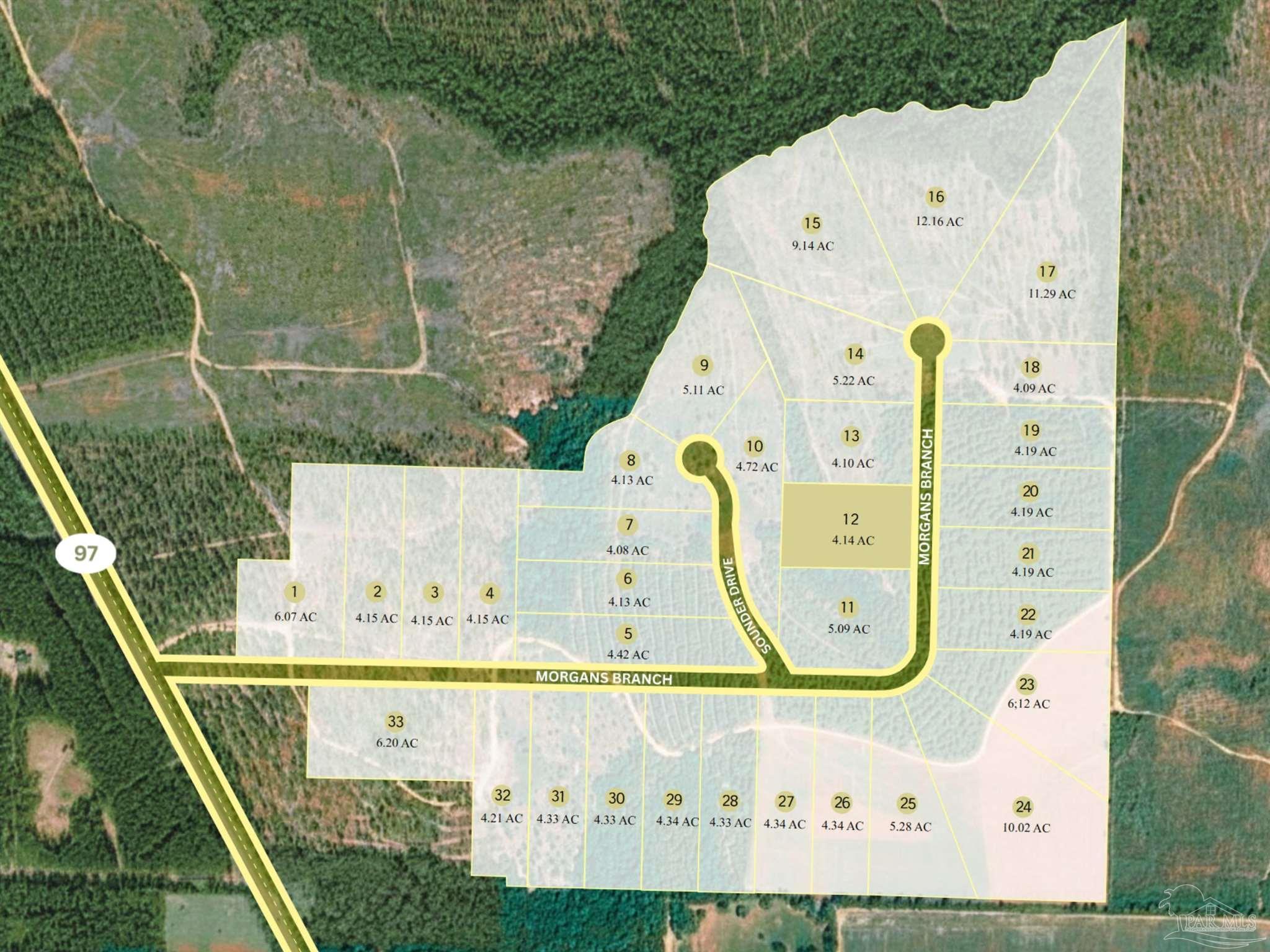Welcome to Bluewater Creek Estates — Molino’s premier gated acreage community, offering 33 exclusive homesites from 4 to 12 acres with paved road frontage. Choose your own floor plan and bring your own builder. This 4.14-acre parcel features broad frontage with clusters of mature oaks and a wooded buffer at the back for privacy. Elevated land provides beautiful views while maintaining flexibility for home design. Bluewater Creek Estates offers space, privacy, and nature just minutes from daily conveniences — 3 minutes to Hwy 29, 20 minutes to Navy Federal, 25 minutes to Downtown Pensacola, and 1 hour to the beach. With paved roads, water service, and natural gas available, it blends the peace of country living with modern infrastructure. This one-of-a-kind opportunity gives future residents the option to choose their own floor plan and select their own builder. Schedule your private tour today.