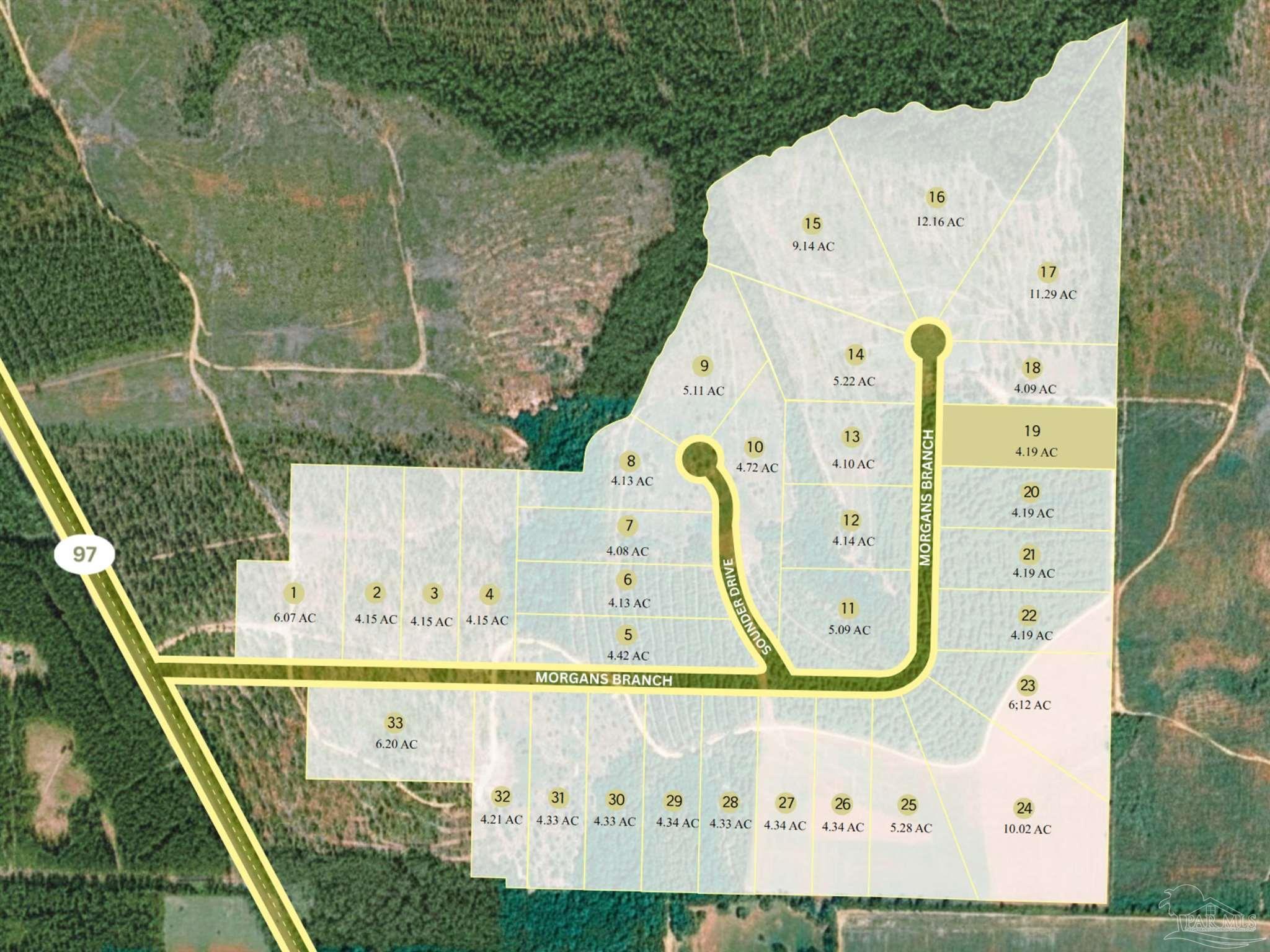Welcome to Bluewater Creek Estates — Molino’s premier gated acreage community, offering 33 exclusive homesites from 4 to 12 acres with paved road frontage. Choose your own floor plan and bring your own builder. This 4.19-acre parcel features elevated terrain and spectacular views, with mature oaks and pines that provide natural privacy. Its topography makes it a premium homesite in Bluewater Creek Estates. Bluewater Creek Estates offers space, privacy, and nature just minutes from daily conveniences — 3 minutes to Hwy 29, 20 minutes to Navy Federal, 25 minutes to Downtown Pensacola, and 1 hour to the beach. With paved roads, water service, and natural gas available, it blends the peace of country living with modern infrastructure. This one-of-a-kind opportunity gives future residents the option to choose their own floor plan and select their own builder. Schedule your private tour today.