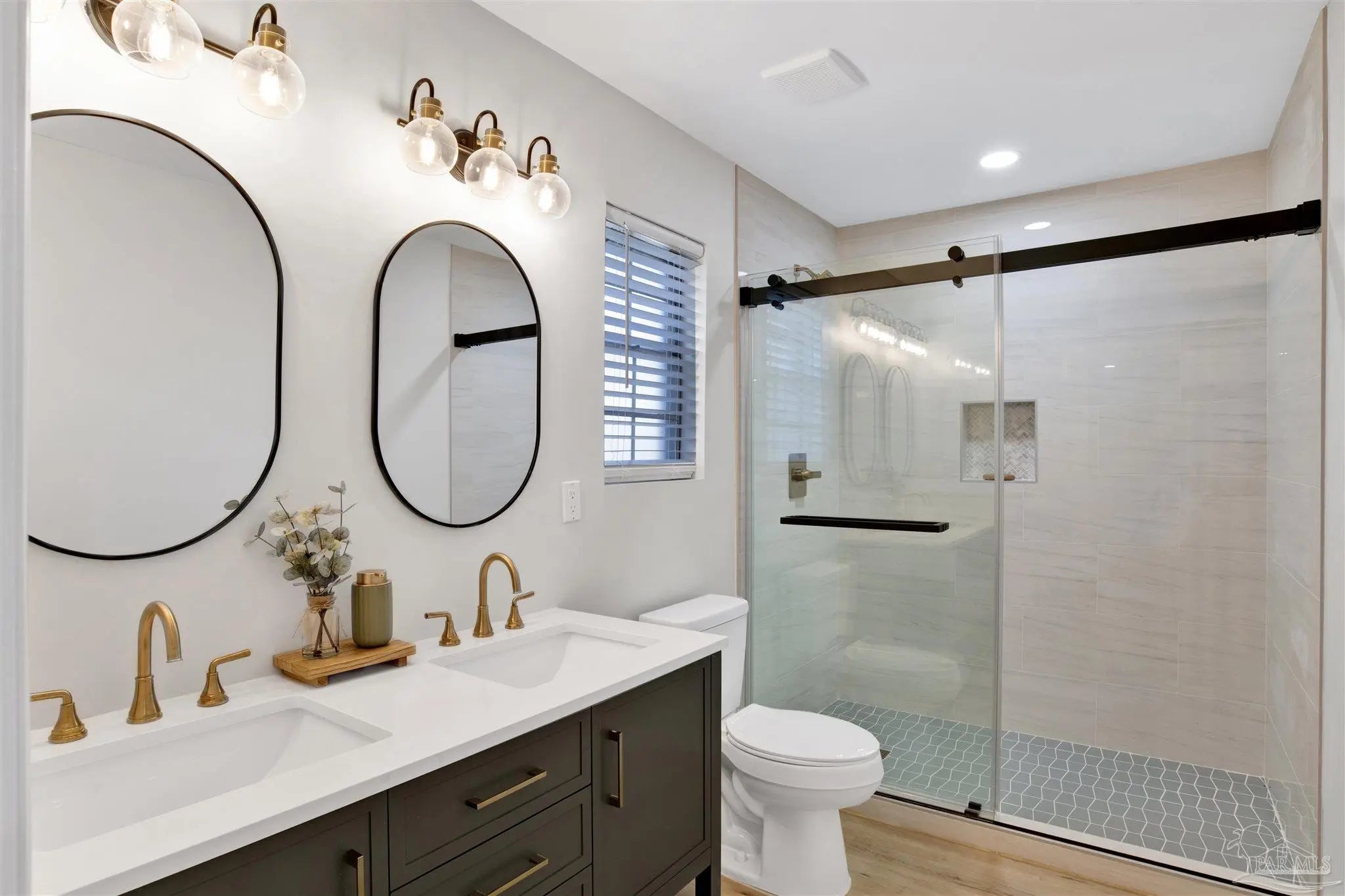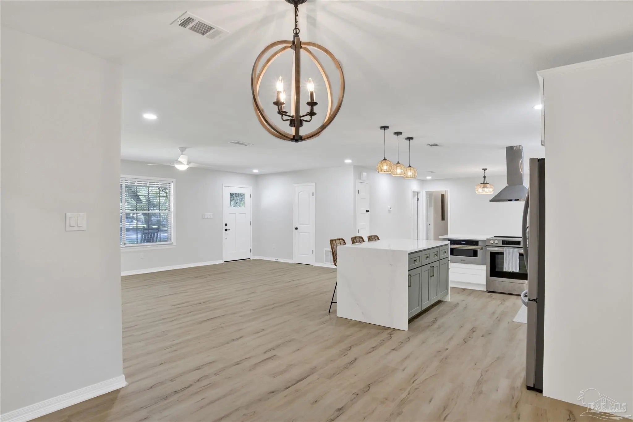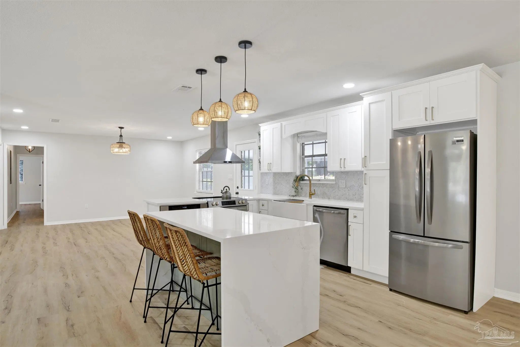 FREE HOME WARRANTY with an an accepted offer in December! The perfect blend of generous living space and ideal location at this spacious brick home, perfectly situated on a large, private lot at the end of the road awaits! The heart of the home is a stunning, brand-new open-concept kitchen, featuring new appliances and high-end finishes that flow seamlessly into the main living area, ideal for entertaining and daily life. This expansive home boasts an exceptional double primary suite floor plan, providing ultimate flexibility and privacy. The innovative split floor plan places the larger of the two primary suites in its own private wing, complete with a separate exterior entrance—perfect for an in-law suite, guest quarters, or a massive private retreat. This wing also features an amazing primary bathroom and an incredibly spacious walk-in closet. The 4 other bedrooms are on the other side of the house! The new home owner will enjoy tremendous peace of mind and minimal immediate expenses, as all major insurance-related components (including the roof, HVAC, re-wire, and water heater) have recently been replaced or will be brand new prior to closing. Relax and entertain outdoors on the large screened-in porch, which overlooks the large and peaceful yard. With an oversized garage and solid brick construction, this home is as durable as it is beautiful. Enjoy the highly convenient Pensacola location with quick access to Naval Air Station Pensacola (NAS P), downtown Pensacola’s dining and entertainment, and all major shopping and restaurants. This home is truly designed for modern, comfortable living.