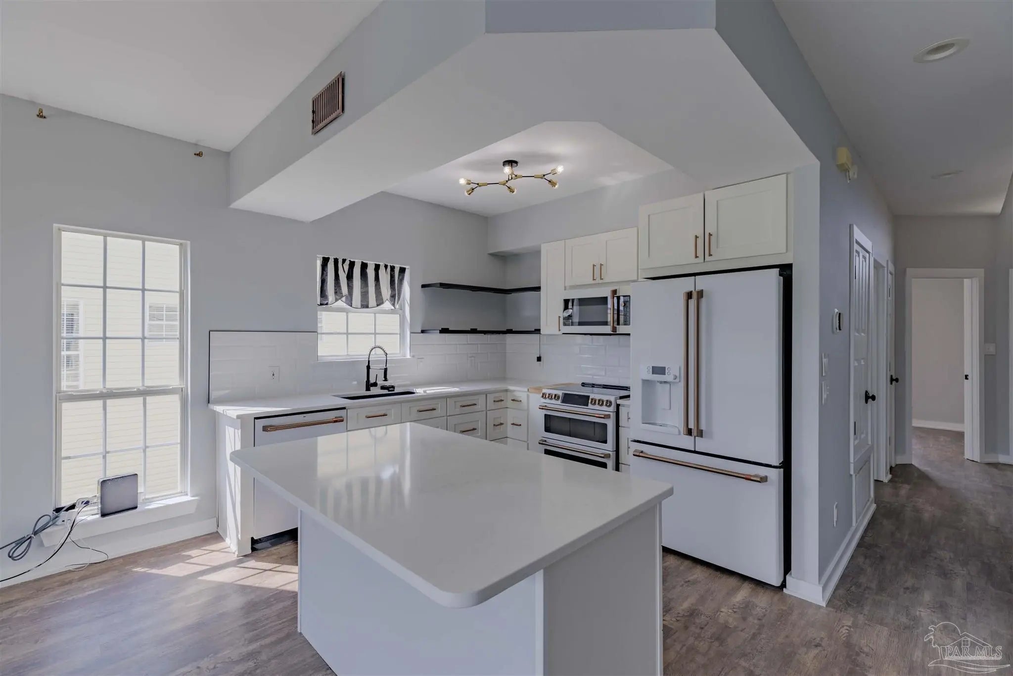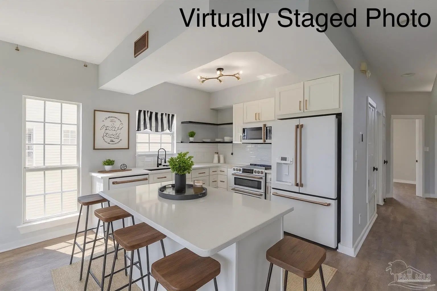 GULF VIEWS!! Discover your ideal beach retreat at 1550 Via Deluna Dr #D, an end-unit townhome featuring 2 bedrooms, 2 full baths, and 1,214 sq ft of comfortable coastal living. On the main level you’ll find an open living/dining area, well-appointed kitchen, guest bedroom with full bath, and a covered balcony that invites indoor/outdoor enjoyment. Upstairs, the spacious master suite includes an ensuite bath and a private second balcony with water views. Downstairs, a generous 1-car garage with interior access provides storage for vehicles and beach gear. Residents enjoy shared access to a community pool and a prime location with views of the Gulf, sound, and adjoining lake—just steps from Pensacola’s world-class beaches. Since owning the property, Sellers have done several upgrades since 2020 to include the following: -Roof -AC -Water Heater -Complete new kitchen including top of the line appliances -Flooring -Bathroom vanities -Trim -Light fixtures and outlets -Closet organizers -Popcorn ceilings removed and refinished