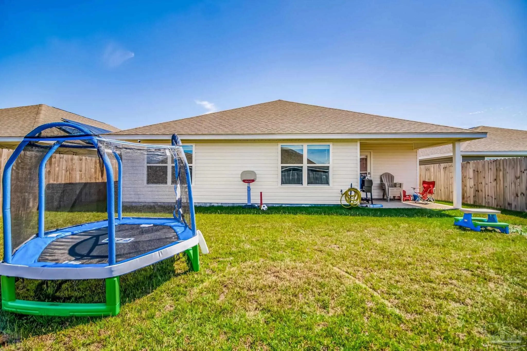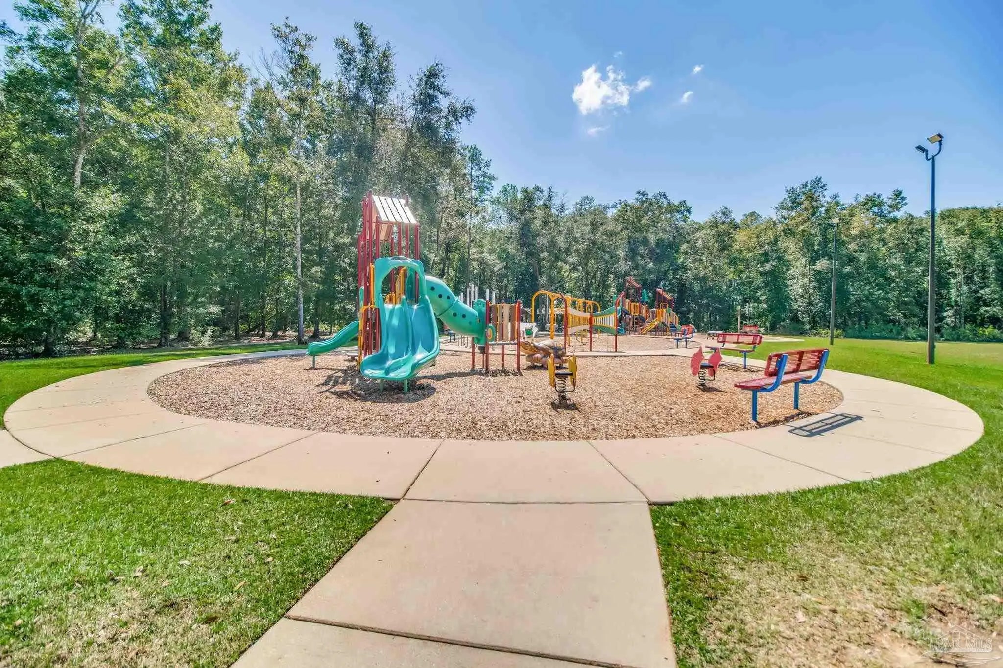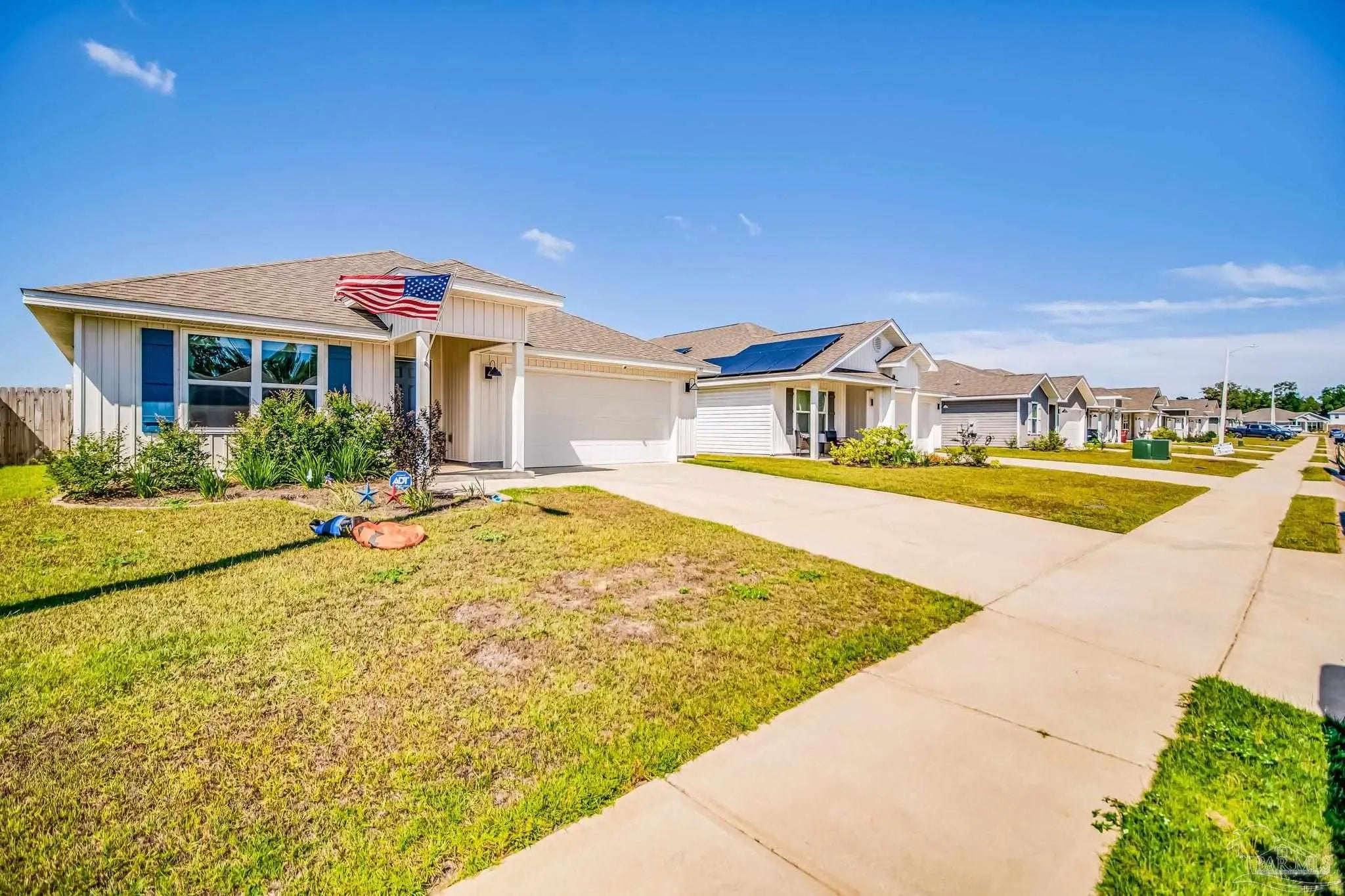 Ideally located in a charming Santa Rosa County neighborhood, this community offers sidewalks, a community park with an interactive splash pad and open green space with covered seating areas. The home features 4 bedrooms, 2 baths, a covered patio, and a 2-car garage. A lovely front entry welcomes you into the foyer and leads down the hall into the light and bright living area. The open kitchen is designed with stainless steel appliances, a spacious island with bar seating, a generously sized pantry and ample counter space. The living area is open to the kitchen and dining space, allowing you to easily interact with guests or relax after a nice meal. The combination living space opens directly to the rear, covered patio, making gatherings that span indoors and outdoors a snap. The primary bedroom, located apart from the 3 additional bedrooms, includes an adjoining bath with a double vanity, large shower, and walk-in closet. The home’s additional bedrooms share a full bath and are oriented at the front of the home, assuring privacy for homeowners, generational living, and guests. The Smart Home features include keyless entry, video doorbell, automated front porch lighting, touch panel to control lighting, thermostat, entry, and more. The neighborhood has an active HOA with monthly activities, weekly food trucks and the opportunity to be involved as much or as little as you would like. At The Woodlands, you’re just a short drive from the Highway 90 corridor with shopping, dining, medical and everyday conveniences AND a short drive to I-10, which is an easy commute East towards Eglin AFB or West to Pensacola. Experience the lifestyle this community has to offer!