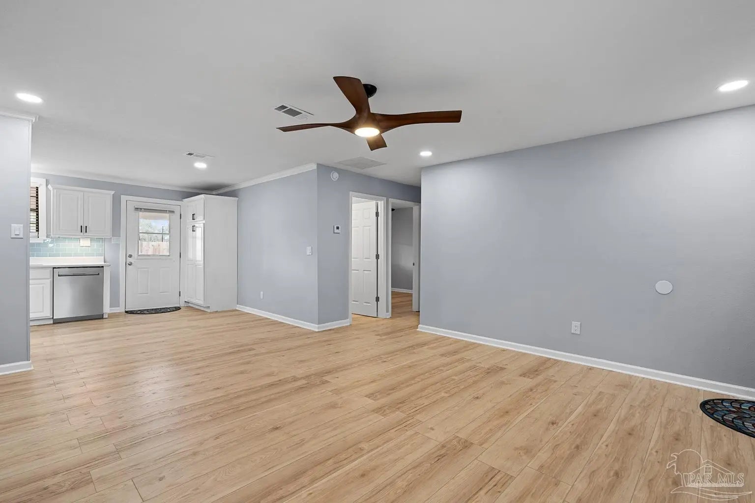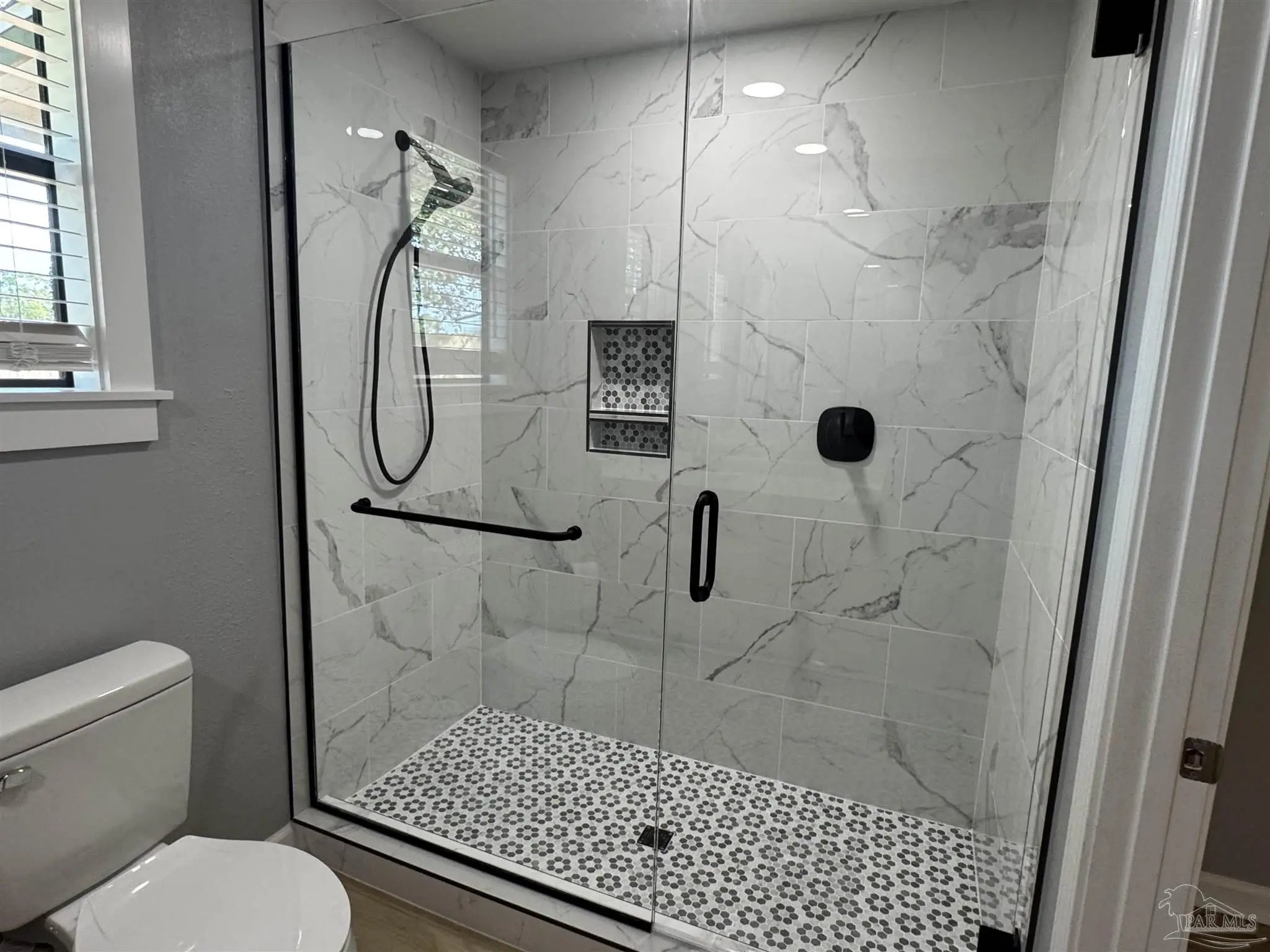 Welcome to the most updated 4 bed/3 full bath in Gulf Breeze under $300k! This home has been over updated, so the buyer will be the beneficiary. All new, same high-end, 8" wide, light, wood-look, Luxury Vinyl Plank flooring throughout entire home. The living room has a high-end fan and dimmable recessed, adjustable, LED lights. Completely remodeled kitchen, with quartz, glass subway tile backsplash, dimmable undercabinet lighting, new appliances, painted cabinets with new hardware. All bathrooms have new vanities, showers, baths, & toilets. The new remodeled primary suite features a walk-in closet with organizer, & the new ensuite bathroom features an AMAZING large tiled shower, 72" wide double vanity, new toilet, recessed lighting, and fan. Outside you will see all fresh paint & new shutters. You will LOVE the porches on this house. There is a freshly updated 50'x6' front porch and 31'x8' back porch. The recessed lights on the back porch are dimmable for nice quite evenings. Transferable termite protection plan in place with Rocky's. The smart storage in this home includes, the 7.5x 8' storage room, 7x8' storage shed, linen closet, walk-in closet in the primary, and the super efficient pantry piece in the kitchen. The layout of this home makes it very functional for a family of 5 easily. There is a new 8 foot privacy fence around the back yard supported with all 6x6 posts for extra sturdiness. There is a 10ft wide double gate on the east and a 4ft wide gate on the west sides of the home. You will love how quite yet convenient location. 1 minute from the new Soundside High School and just across Hwy 98 from the Zoo. 15 minutes to Navarre Beach and 20 minutes to Pensacola Beach. If you have champagne taste on a beer budget this home is for you! Seller Financing available.