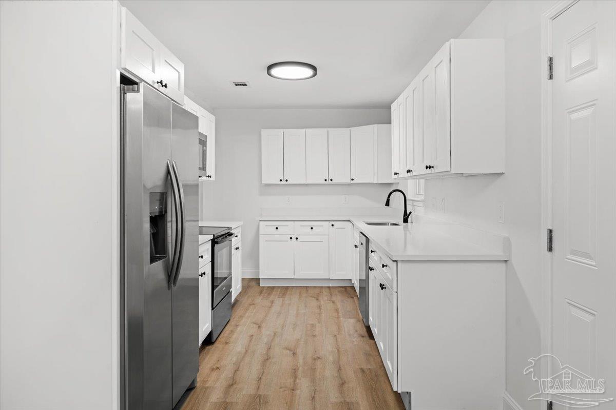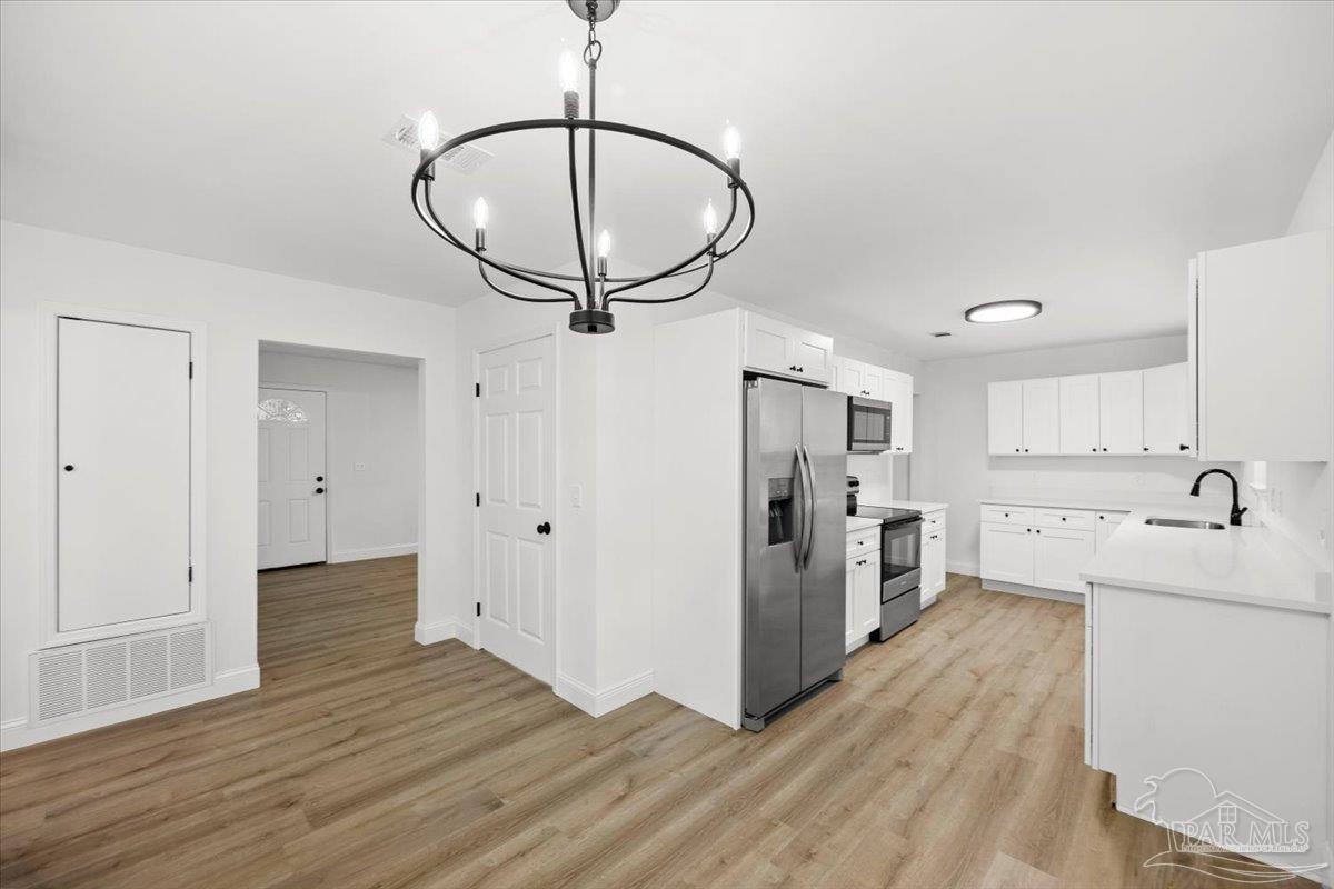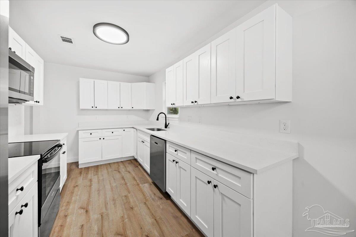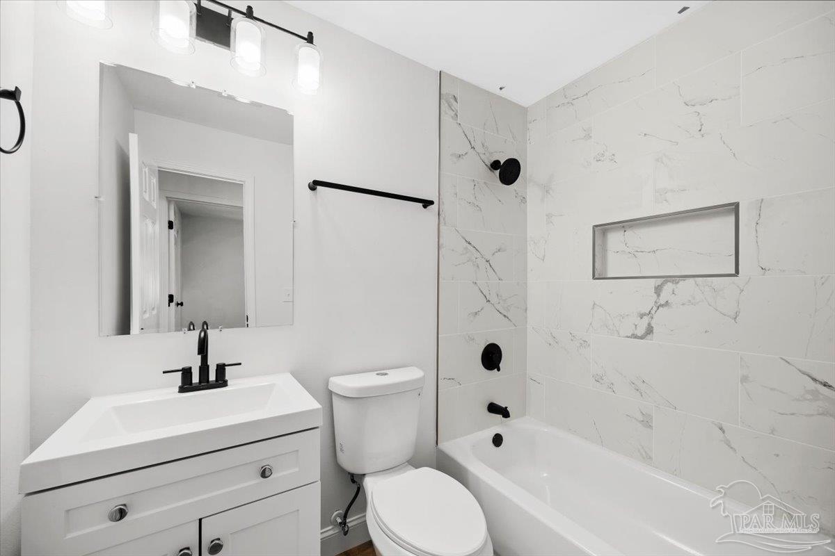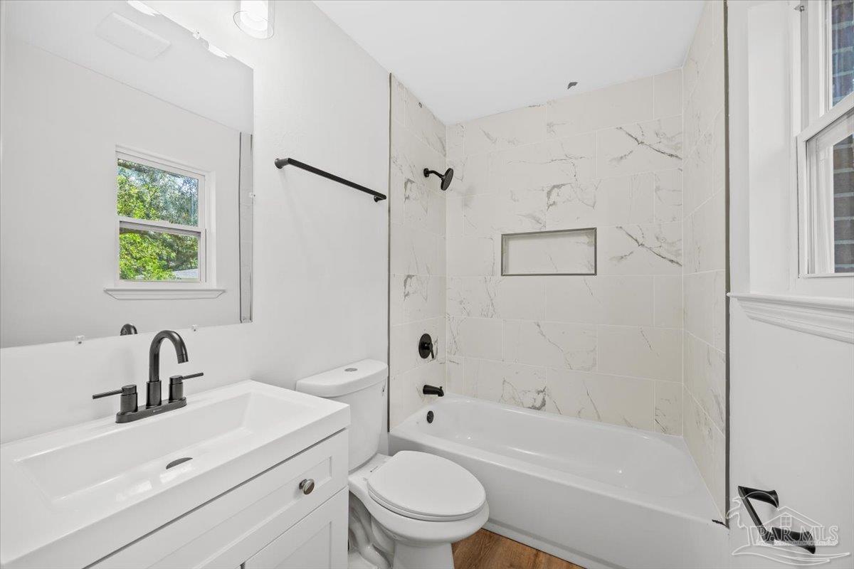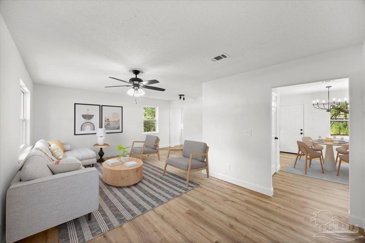 Thoughtfully redesigned 3 bedroom, 2 bathroom home offering 1,215 sq. ft. of comfortable living space. This move-in ready property features modern upgrades, a bright open layout, and plenty of natural light. Perfect for first-time buyers or investors, this home delivers both style and convenience in a desirable Pensacola location. HVAC 2025, Rewired 2025, Re-piped 2025, New tankless hot water tank 2025, replaced back left footer 2025 including surround exterior brick, New Windows 2025, Roof 2025.