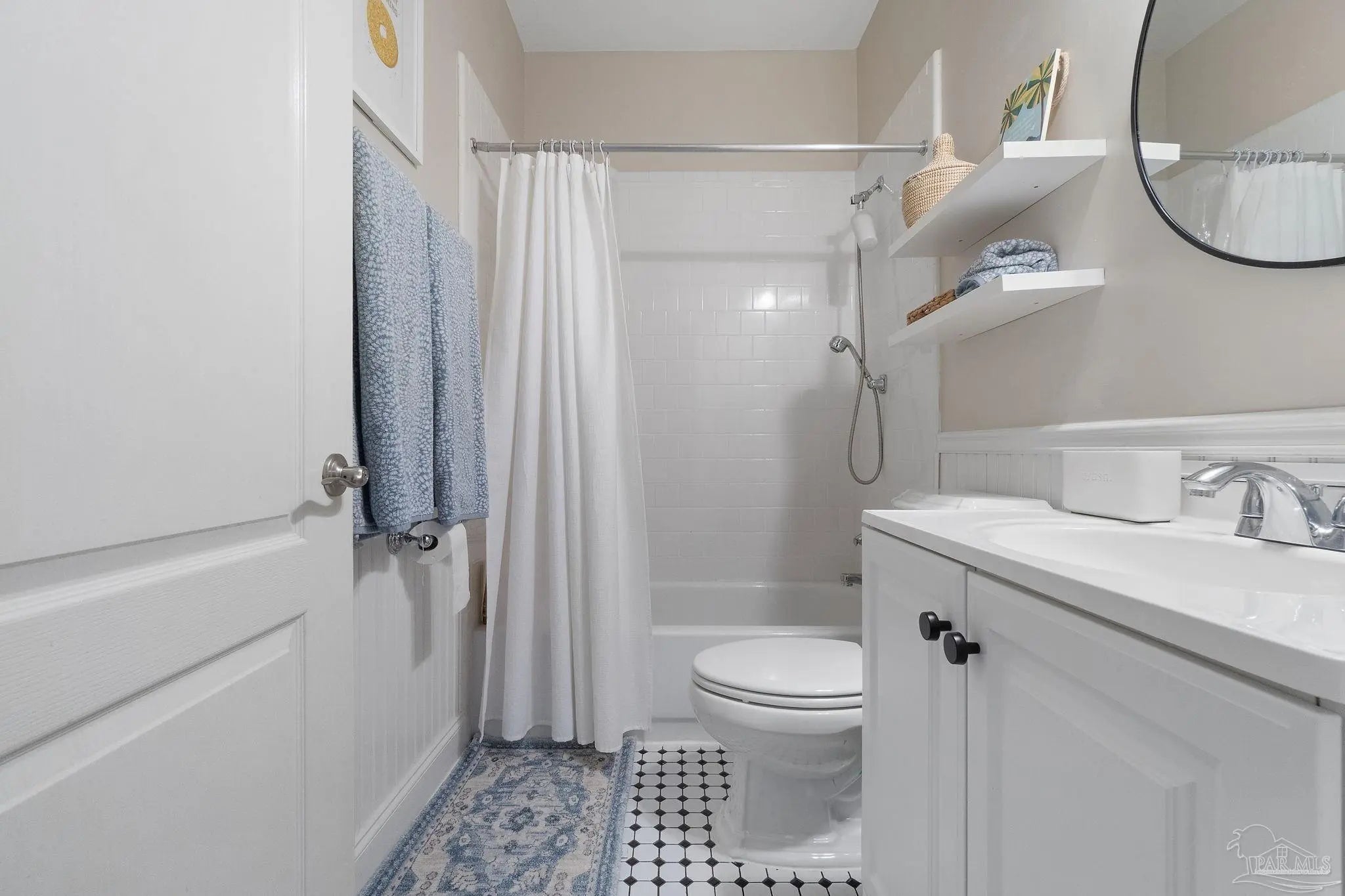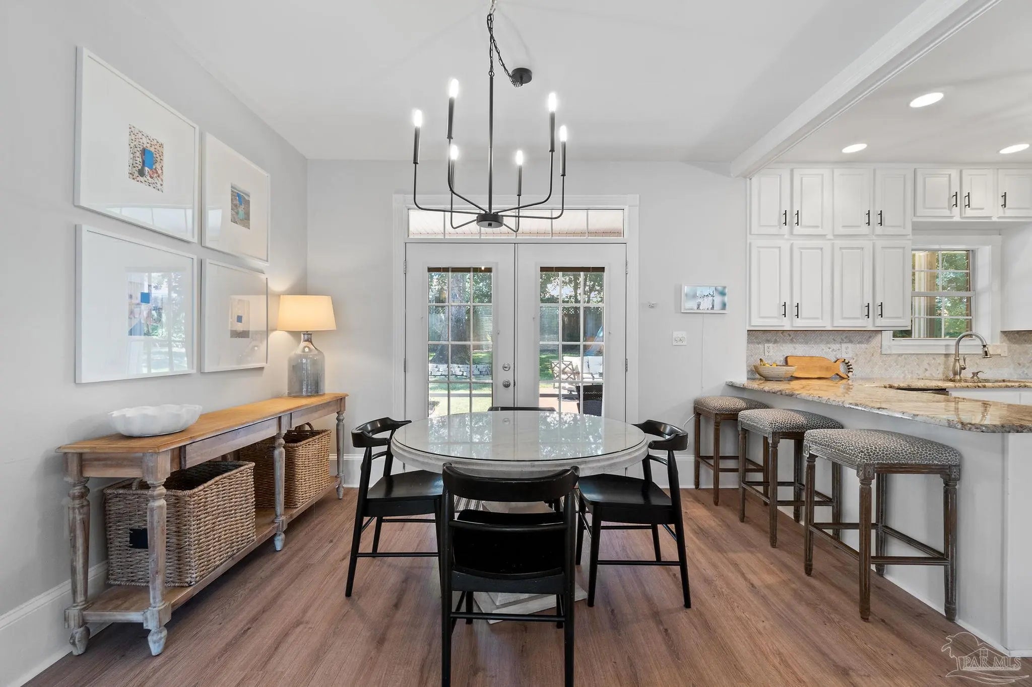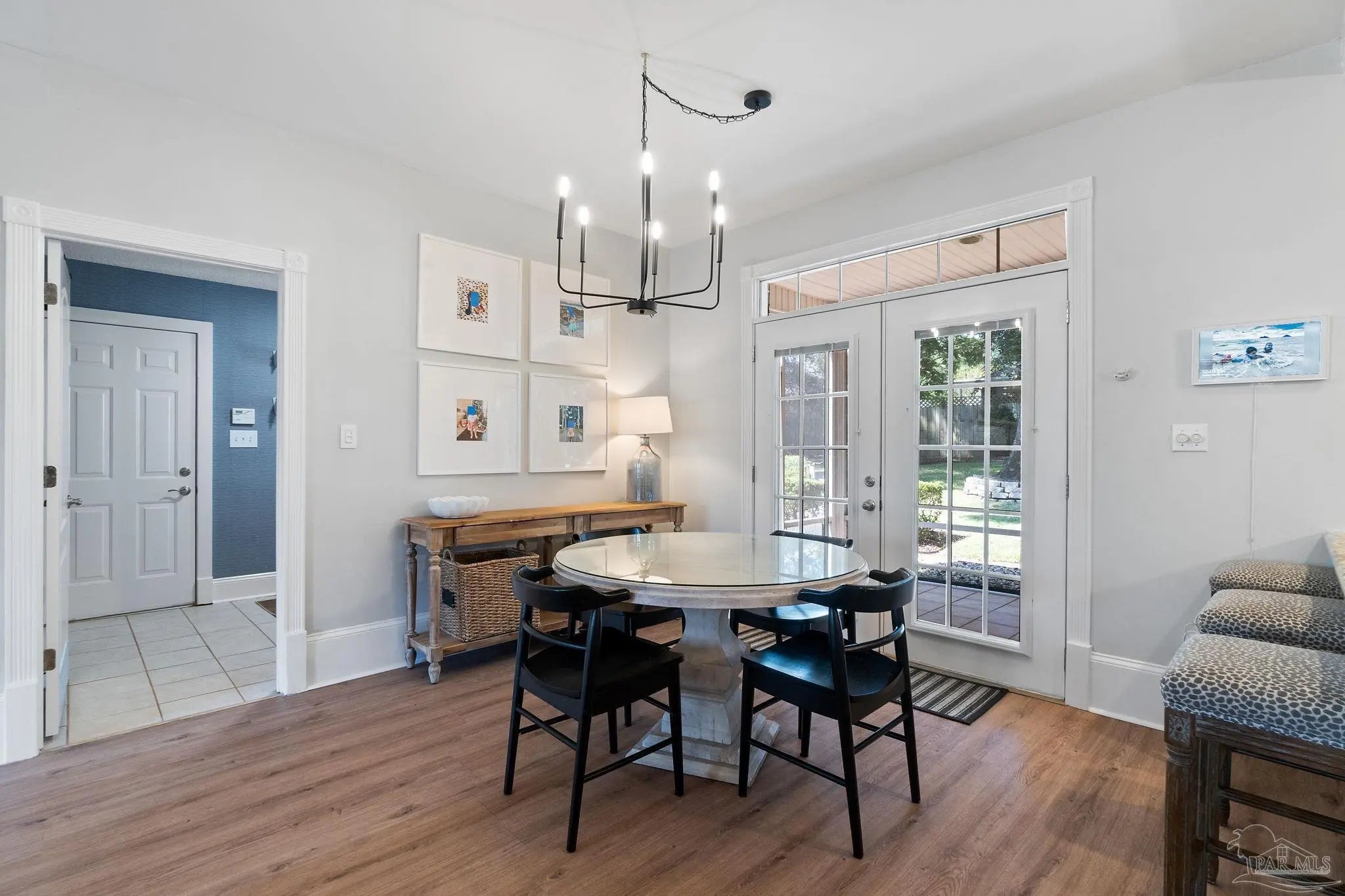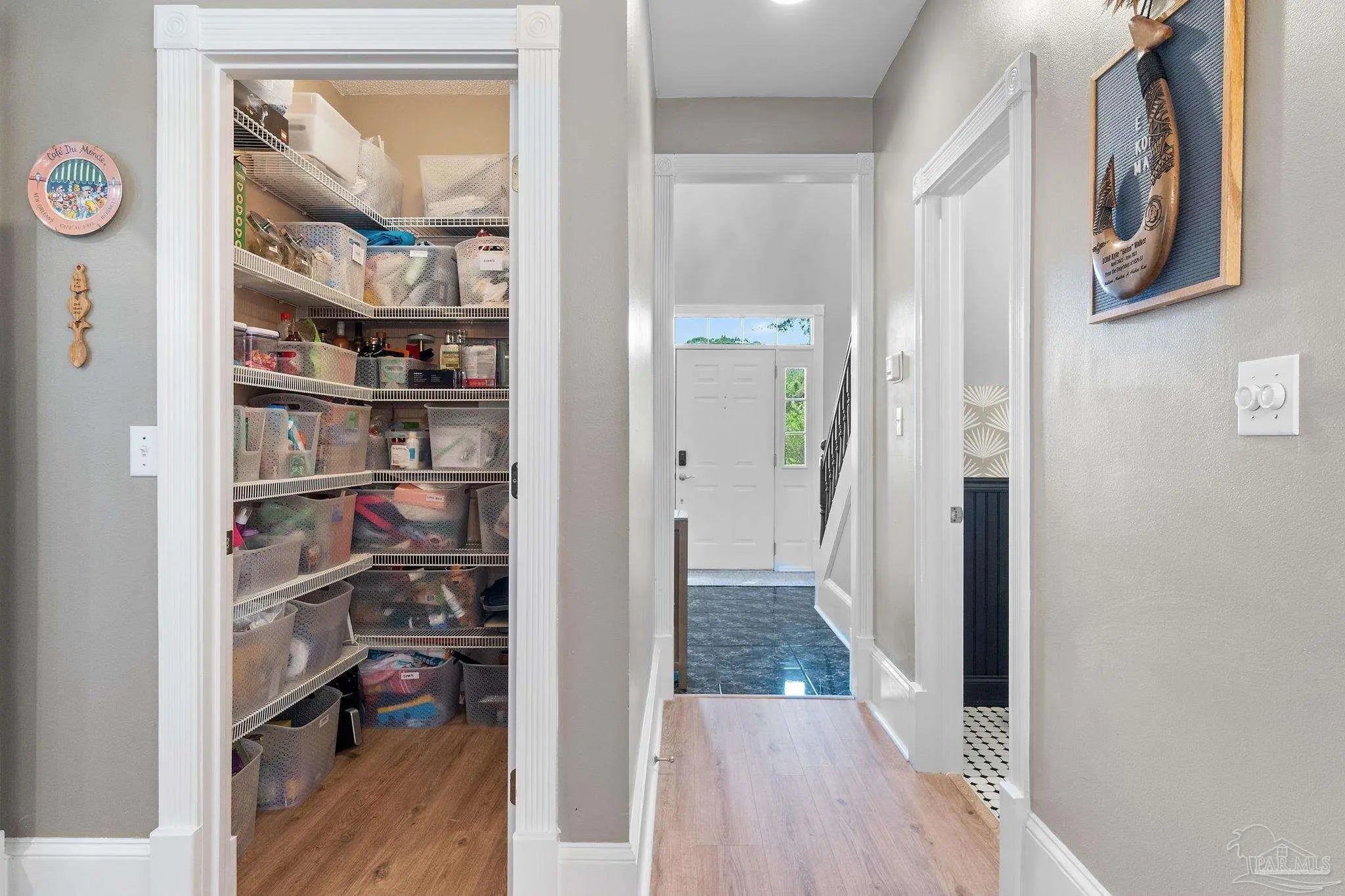 Timeless elegance in this distinguished Colonial residence, gracefully situated in the desirable Marcus Pointe Golf Community. This unique 3-bedroom, 2.5-bath home offers refined living spaces including a formal living, den, office or formal dining room could be used and a guest bedroom, and breakfast area, enhanced by exquisite crown molding, rose motifs, 12-inch baseboards, and two fireplaces for comfort. (1 insert, 1 wood) The grand foyer, accented with marble tile flooring and a sweeping oak staircase, creates a truly impressive entry. A convenient half bath is located just off the foyer for guests. The kitchen is a chef’s delight with solid oak custom cabinetry, granite countertops, a breakfast bar, island with storage, walk-in pantry, and a window overlooking the backyard. Laminate, wood-look flooring and updated finishes add to the sophistication, while double French doors open to a screened porch, seamlessly blending indoor and outdoor living. Upstairs, the spacious primary suite offers a private retreat with a luxurious bath featuring a clawfoot tub, separate shower, double vanity, linen storage, tile flooring, and an expansive walk-in closet. The landing area provides space for a reading nook overlooking the grand entry, while two additional bedrooms share a full hall bath. Outdoors, enjoy the tranquil backyard with a screened porch, paver patio, firepit with seating, and a charming wooden bridge surrounded by mature landscaping and an irrigation system. A two-car garage with a rear roll-up door provides additional convenience for storage or lawn equipment. Residents of Marcus Pointe enjoy golf cart access to the clubhouse for dining and recreation, as well as a lifestyle defined by leisure and community. Ideally located just off I-10, this property offers both elegance and convenience, placing you within easy reach of all that Pensacola has to offer. Roof 2023, HVAC 2023/2024, Carpet replaced 2024.