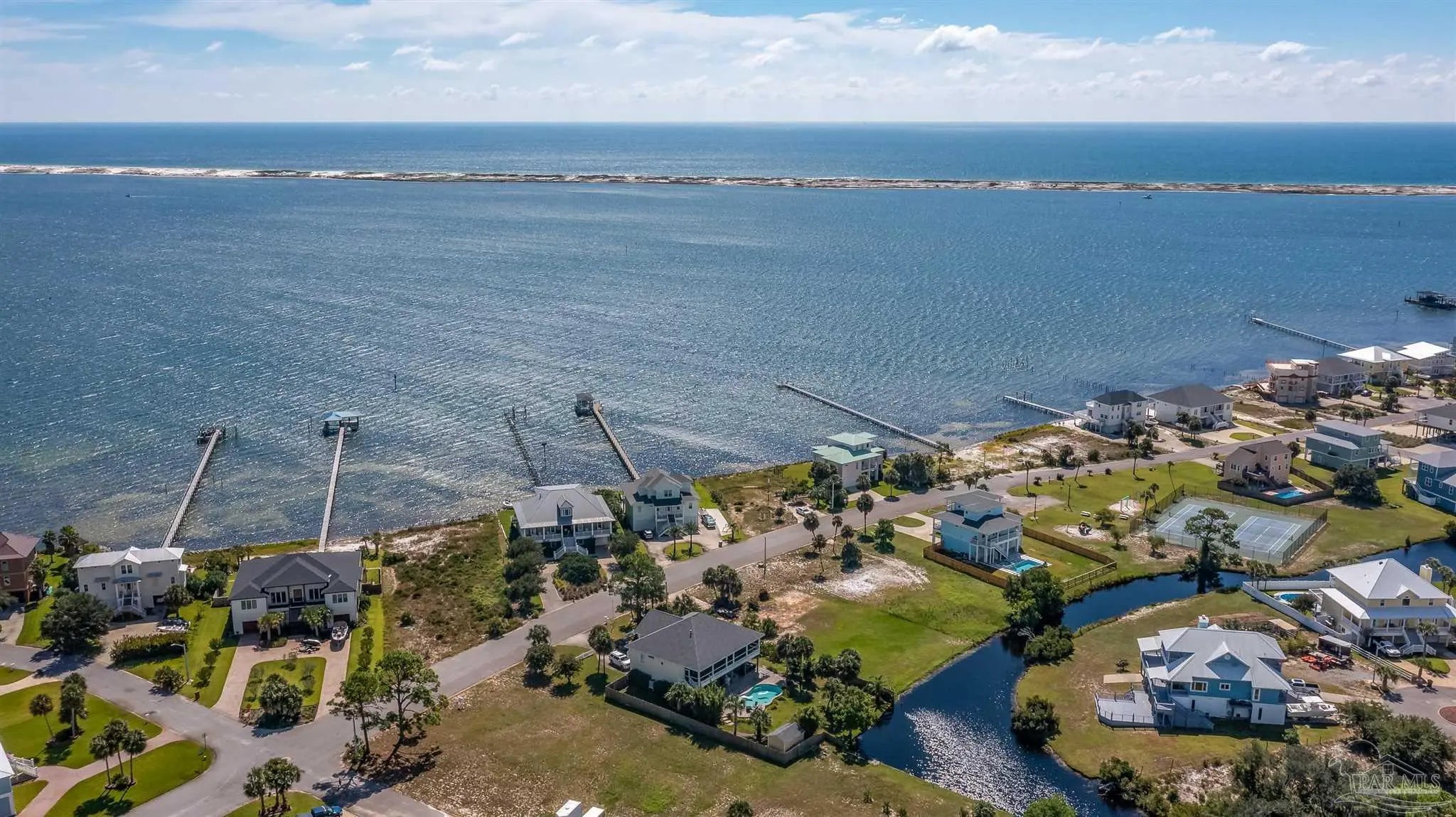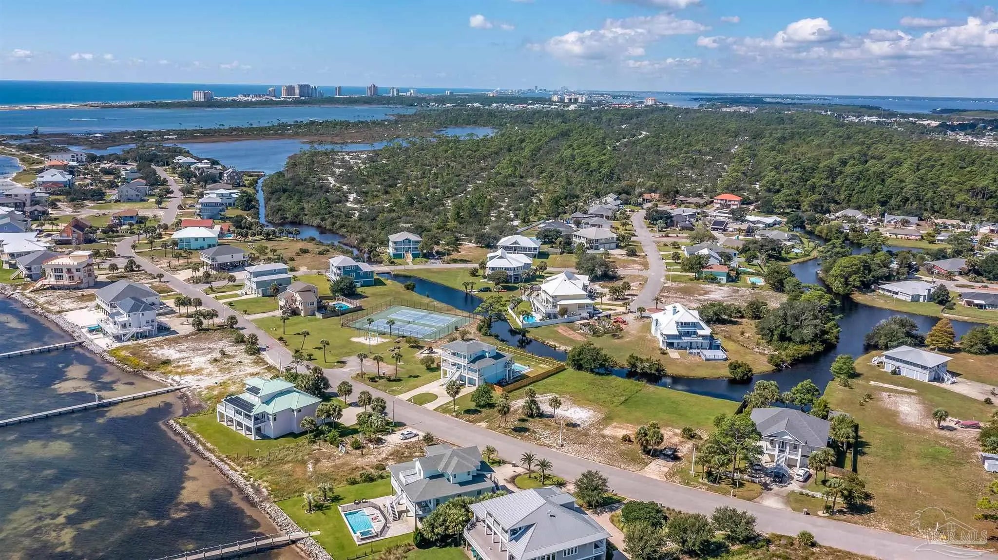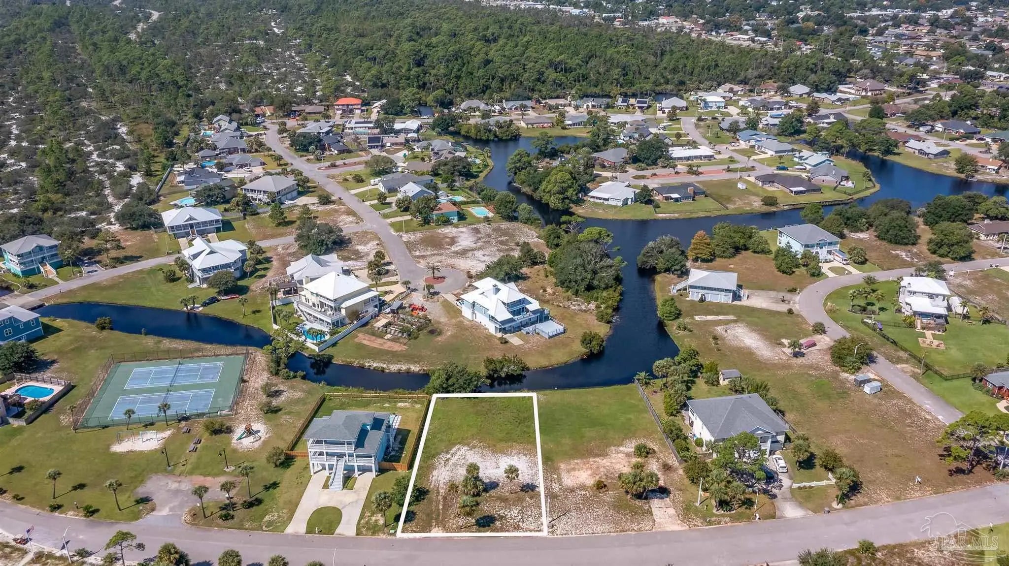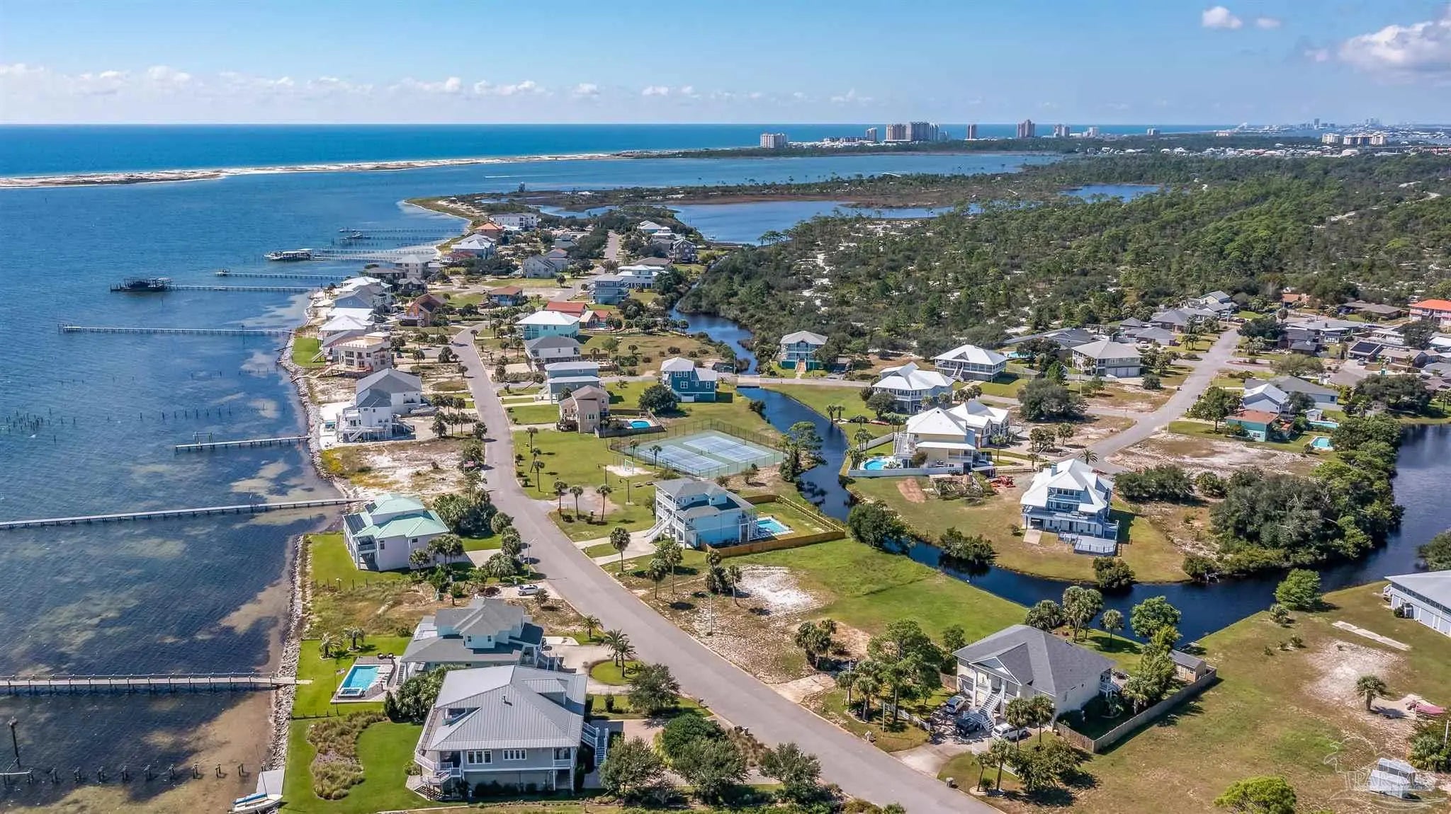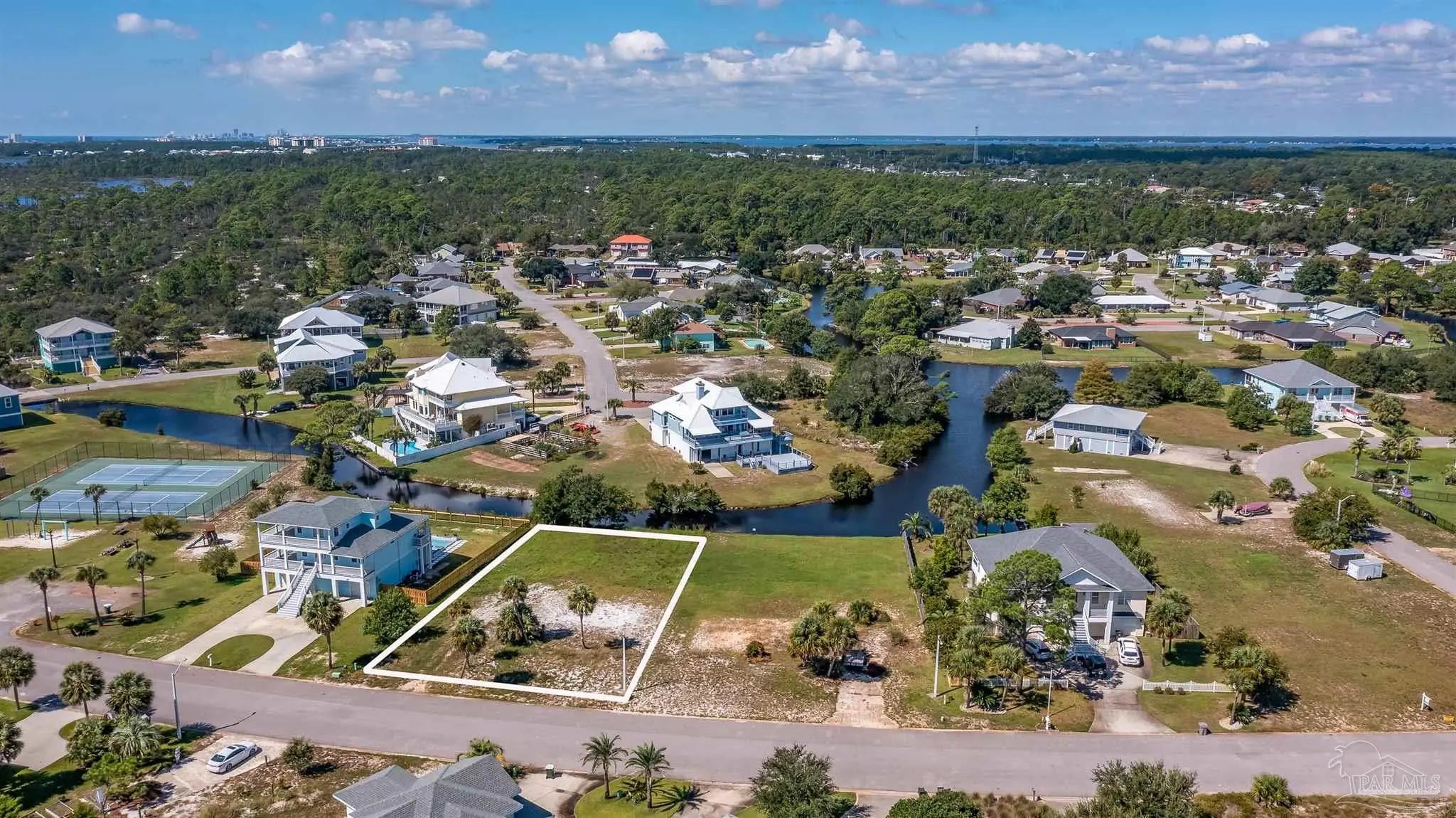 Build Your Dream Home with Water Views in the Sought-After Grande Lagoon Community! This cleared lot is perfectly positioned and ready for your custom build! Located in the highly desirable Grande Lagoon neighborhood, you'll enjoy breathtaking views of the Intracoastal Waterway from the front, while the rear of the property backs up to the peaceful Grande Lagoon lake. Enjoy the best of both waterfront worlds with your own private deeded beach access just across the street, plus a community tennis court and playground only two lots away. Whether you love kayaking, paddleboarding, fishing, or simply soaking in sunset views, this lot delivers on lifestyle. Conveniently located near NAS Pensacola, Johnson’s Beach and offering easy access to Downtown Pensacola, this is a rare opportunity to own in one of the area's most welcoming and amenity rich neighborhoods. Don't miss your chance to create the coastal home you've always dreamed of.