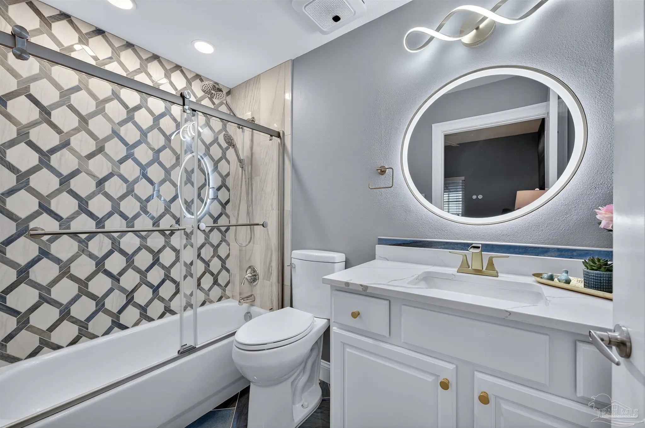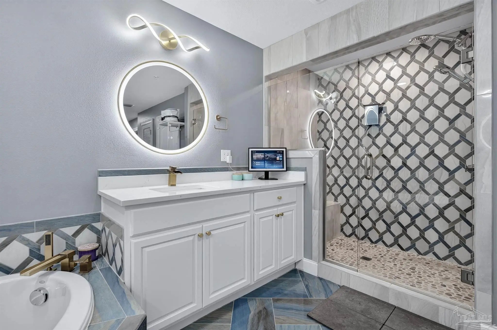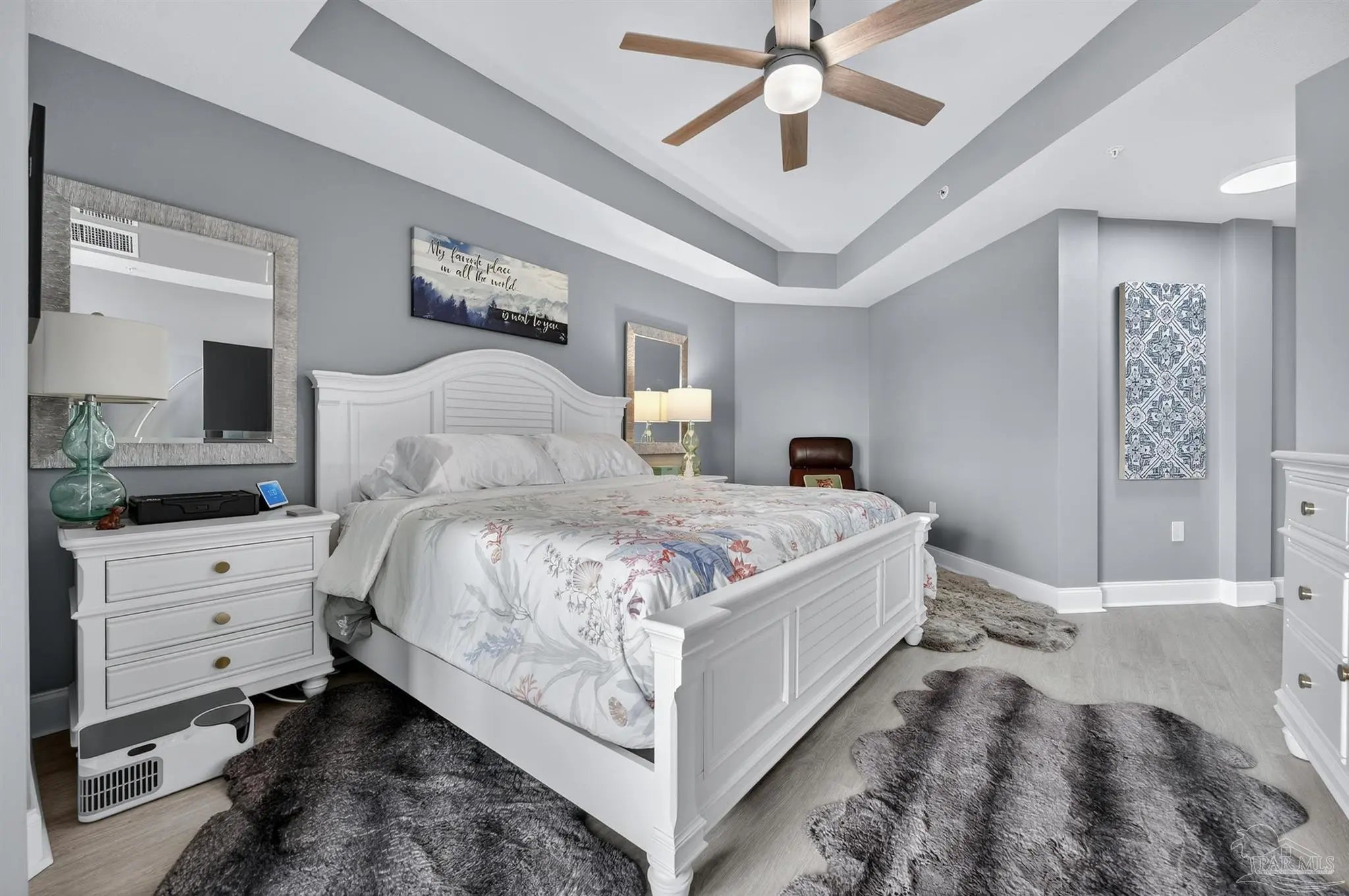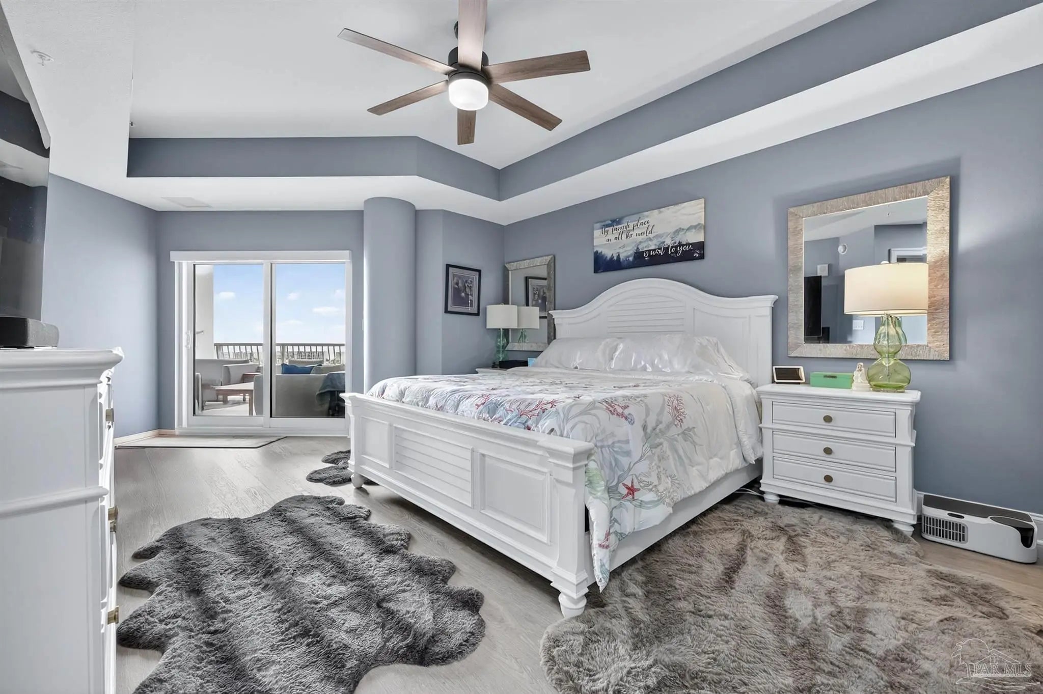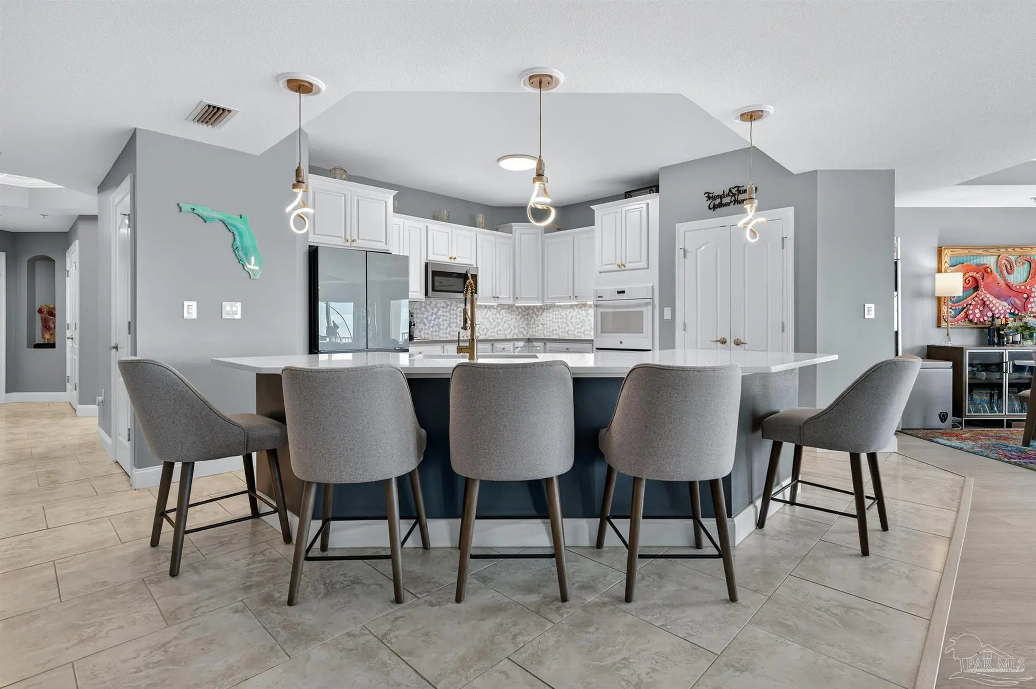 Come experience luxury living at Presidio Yacht Club, one of Fort Walton Beach’s most prestigious waterfront communities! Presidio offers high-end amenities including a pool and hot tub, marina, dock for fishing, theater room, owners’ community lounge, fitness center overlooking the water, and a guest quarters for visitors. This beautifully updated condo offers fresh paint, new flooring, a renovated bathroom and updated kitchen, creating a home that truly shines. Step onto the expansive balcony and take in breathtaking 180-degree views of the Santa Rosa Sound, Gulf, and Choctawhatchee bay. A rare feature of this unit is two deeded parking spaces located in the gated, covered garage and a storage closet just across the hall from the front door! Inside, the open living area boasts elegant tray ceilings and crown molding, with a wall of windows framing the gorgeous water views. The spacious kitchen is designed for both function and style, featuring abundant cabinetry, a large island with breakfast bar, pantry, updated appliances, and stylish lighting. Just off the kitchen, a dining area provides the perfect spot for everyday meals or entertaining. The split primary suite offers ample space for a sitting area and direct balcony access. Its spa-like en suite includes a jetted tub, separate walk-in shower, dual vanities, a private water closet, and a generous walk-in closet with custom wood shelving. Each guest bedroom enjoys its own en suite bathroom, both recently updated with new tile, vanities, mirrors, and lighting. One features a brand new tiled standing shower. The two guest bedrooms are thoughtfully placed at the front of the unit, each offering privacy and comfort. From sunrise to sunset, this residence delivers the perfect balance of luxury and waterfront serenity!