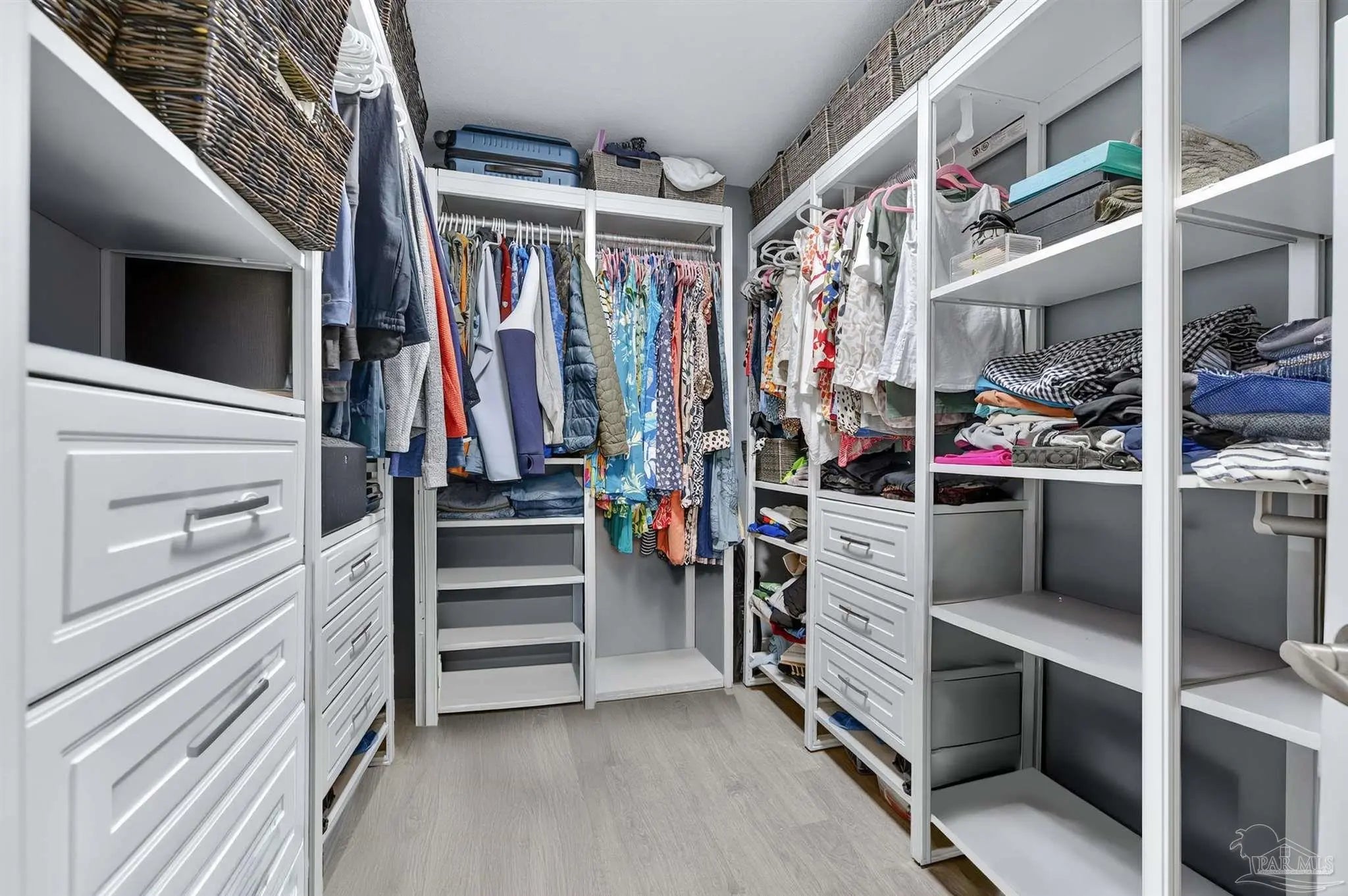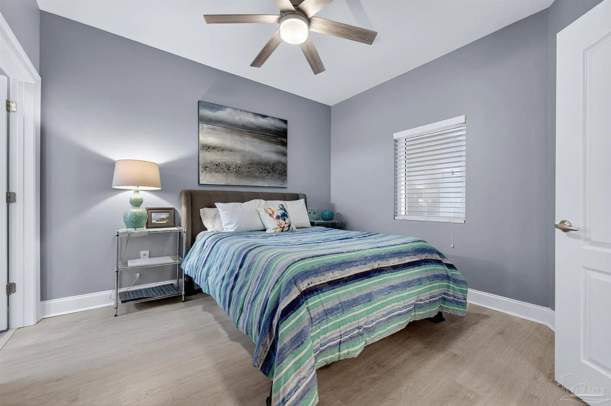 - Storage, Baseboards, Ceiling Fan(s), Crown Molding, High Ceilings