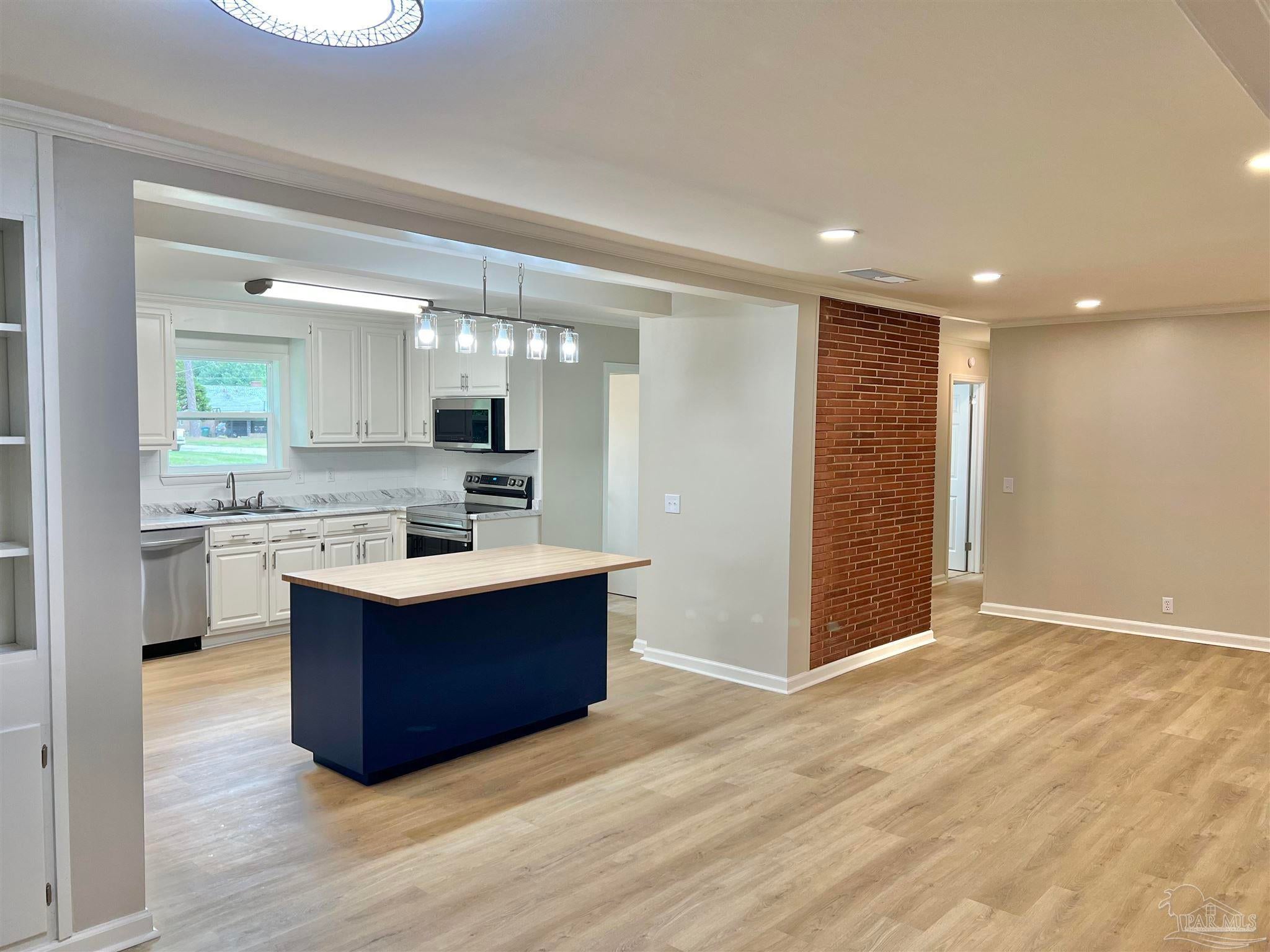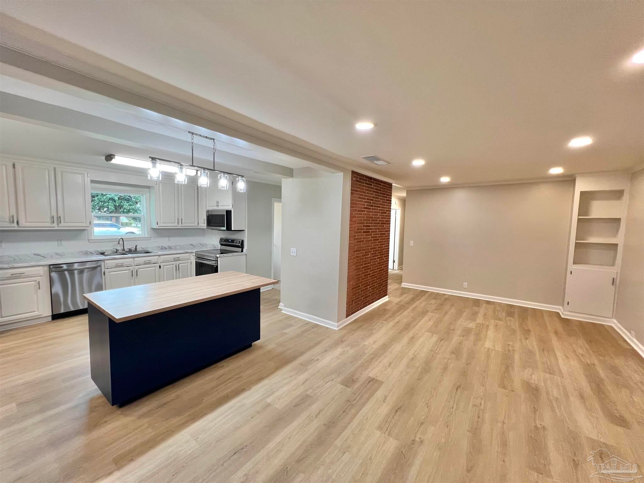 Come See this beautifully renovated and fully updated home situated on a generous corner lot, offering both space and privacy. The bright, sunny kitchen features a large island bar perfect for gatherings, flowing seamlessly to an oversized dining area and screened back porch that overlooks a landscaped, privacy-fenced lawn—ideal for relaxing or entertaining. With four bedrooms— plus a dedicated office—and 2.5 bathrooms, this spacious layout can accommodate everyone's needs comfortably. Enjoy cozy evenings in the ample sized living room by the fireplace. Recent upgrades include a new roof, HVAC system, windows, plumbing, appliances, lighting, ceiling fans, flooring, updated electrical work, added storage, and built-in shelving. Competitively priced and move-in ready, this home combines modern comfort with thoughtful design throughout. Make Your Personal Showing Appointment Today!! ALL DIMENSIONS & SQUARE FOOTAGE ARE APPROXIMATE AND IS THE BUYER'S RESPONSIBILITY TO VERIFY DURING DUE DILIGENCE PERIOD.