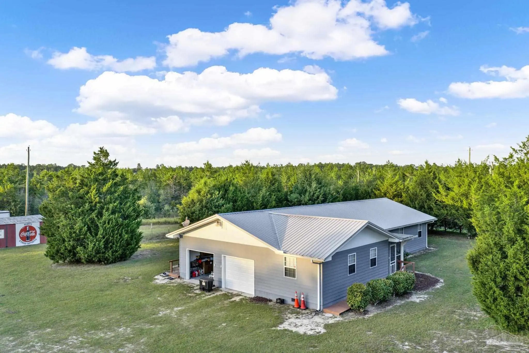 Welcome to your personal HOMESTEAD!! This 5 ACRE property is perfect for your quiet retreat or your farming and animal paradise! The property is FULLY FENCED with areas dedicated to PASTURES and GARDENS. The house is tucked neatly within mature CEDAR TREES and has a nice ramp to guide you to the SCREENED FRONT PORCH. As you enter the front door, you have a spacious FAMILY ROOM/DEN that gives access to the main LIVING AREA/DINING AREA full of natural light from the large windows. The KITCHEN is just off this area and has plenty of counter space including an enormous MOBILE ISLAND perfect for prepping food or entertaining. The hallway gives access to the INDOOR LAUNDRY ROOM, HALL BATH, AND ALL BEDROOMS. The MASTER BEDROOM AND BATH are tucked away in the very back of the hall and the bathroom has a large TILED WALK IN SHOWER. This house has multiple items needed for Handicapped individuals including a RAMP out front, consistent WOOD LAMINATE FLOORING throughout, GRAB BARS in the Master Bath Shower, and a working CHAIR LIFT in the garage. The SCREENED BACK PORCH allows you to sit and watch the garden grow and the animals graze. Along with a rabbit proof garden, there is a larger garden area with BUILT IN IRRIGATION off the side of the house. There is a TEE PAD with a NET for practicing your golf swing (because you know you need it). MULTIPLE OUTBUILDINGS make life easy with farm equipment and has a GARAGE DOOR OPENER for the tractor shed. Pastures have a HINGED GATE to allow movement from one pasture to the other with ease. The CHICKEN COOP HOUSE is one that any chicken would envy. Schedule your showing now and see all that this perfect property has to offer.