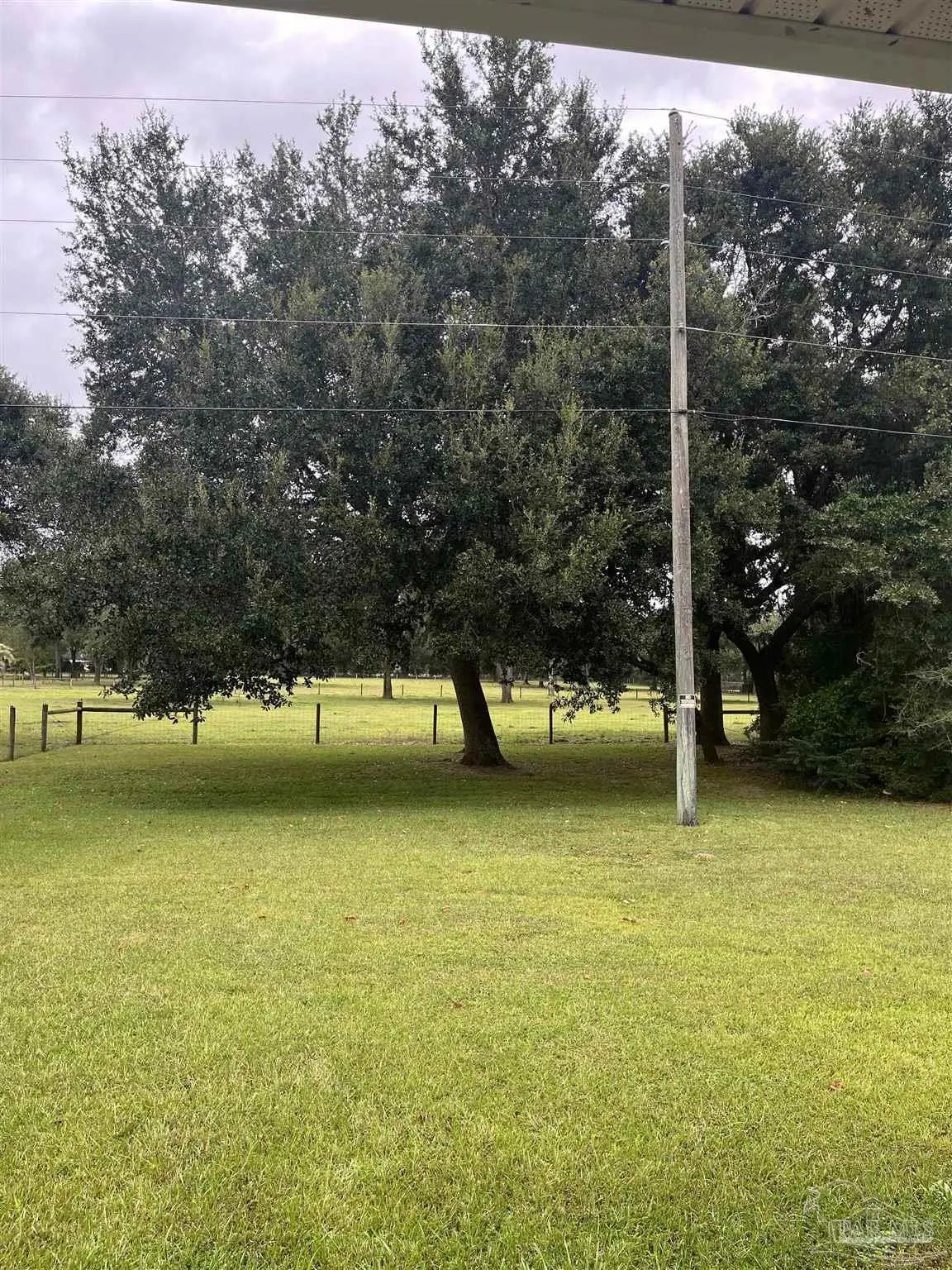 Welcome home to a well loved home in a quiet neighborhood. The seller purchased .113 acres at the rear boundary of the property, increasing the lot size for the house. It borders acreage that is home to farm animals. You can sit at your dining room table and watch the cows. It is so peaceful. The vaulted ceiling in the living area opens up the space to make it seem roomier. The main bedroom has a large walk-in closet. The kitchen has a breakfast bar to give more entertaining space. A new roof was installed in 2021. The HVAC was replaced in 2024. The home is situated near the Five Points area of Pace. It is close to all the amenities you need. The furniture left in the house goes with the house.
