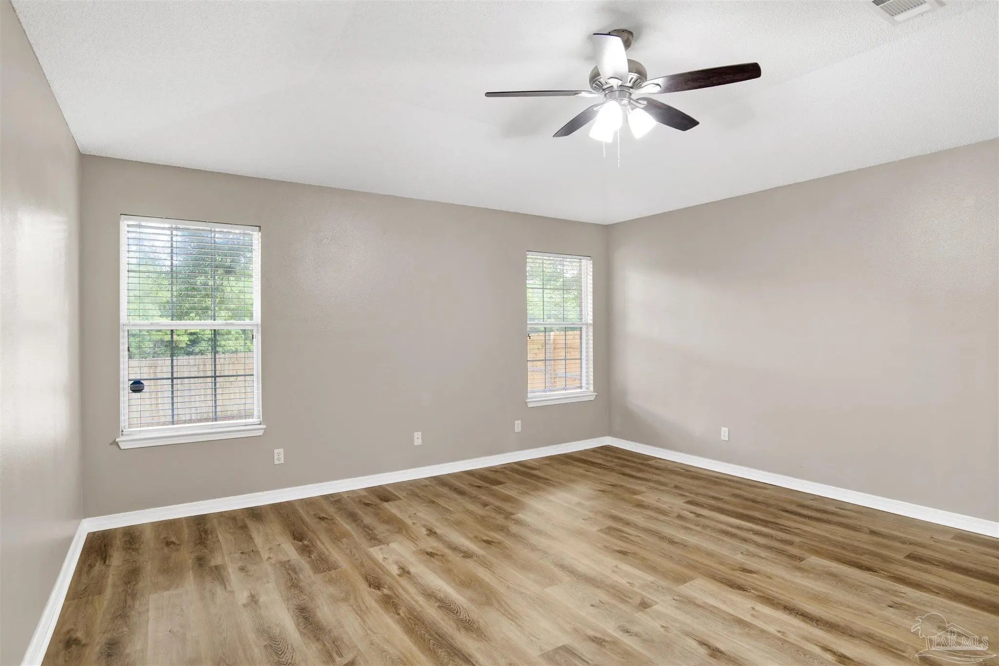 Move-in ready 4 bedroom, 3 bath home in the popular Crystal Creek subdivision! Freshly updated with new interior paint and beautiful luxury vinyl plank flooring throughout (tile in wet areas), this home offers a great floor plan with space for the whole family. The large great room welcomes you with arched entryways, plant ledges, a cozy gas fireplace, and a sliding glass door leading to the screened porch. The dining area is ideal for family meals or dinner parties and is complemented by an adjacent flex space that’s perfect for a home office. For casual dining, enjoy the charming breakfast nook that flows into the well-equipped kitchen featuring oak cabinetry, pantry, and white appliances—including a gas range with double oven. The split-bedroom layout provides privacy for the primary suite, which boasts a spacious bedroom with a trey ceiling, and an ensuite bath complete with a garden tub, separate shower, double vanities, walk-in closet, and private water closet. The additional bedrooms are generously sized with ample closet space. A second full bath offers convenience with access to the screened porch, while a third full bath includes a tub/shower combo and single vanity. Additional highlights include a laundry room off the kitchen, a double car garage, and a privacy-fenced backyard with mature trees for shade, an open deck, and plenty of space for BBQs and outdoor entertaining. Great location, great floor plan, great home—don’t miss this Crystal Creek gem!