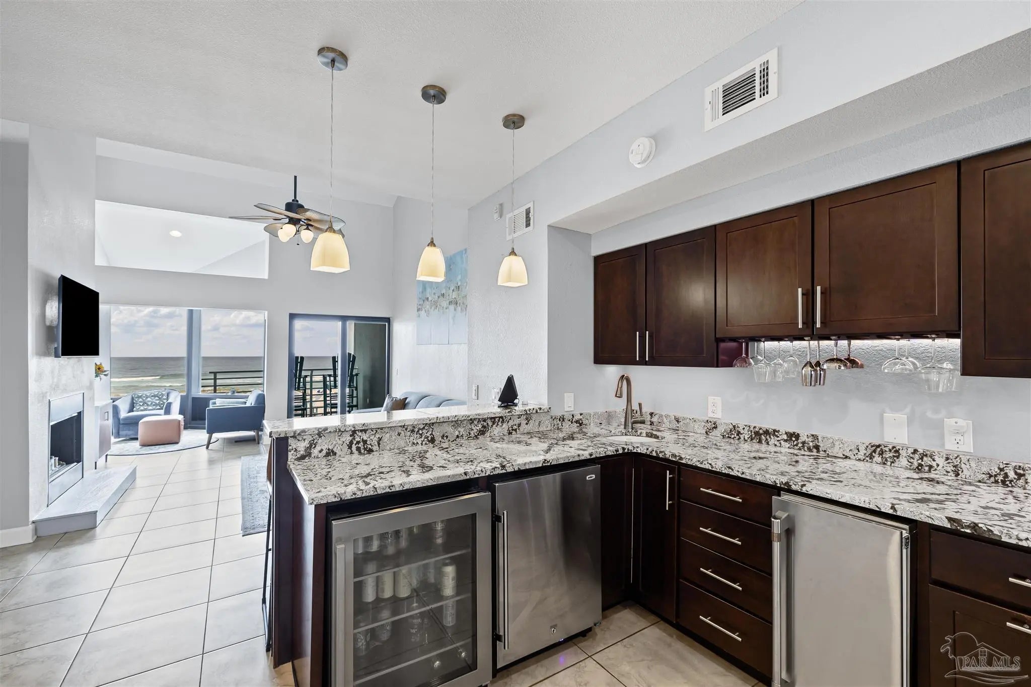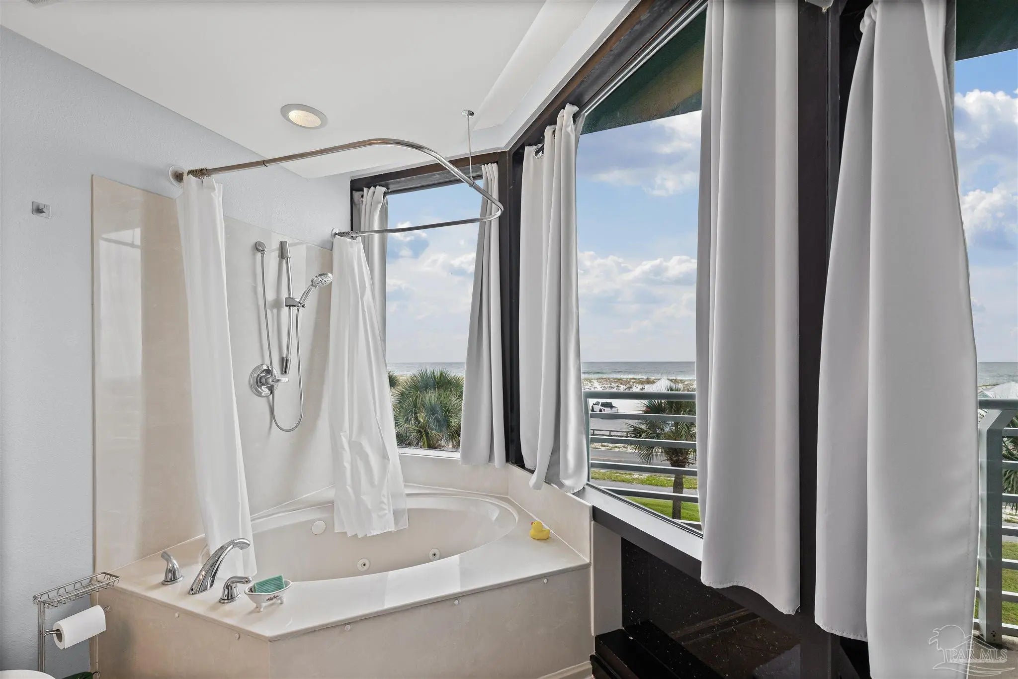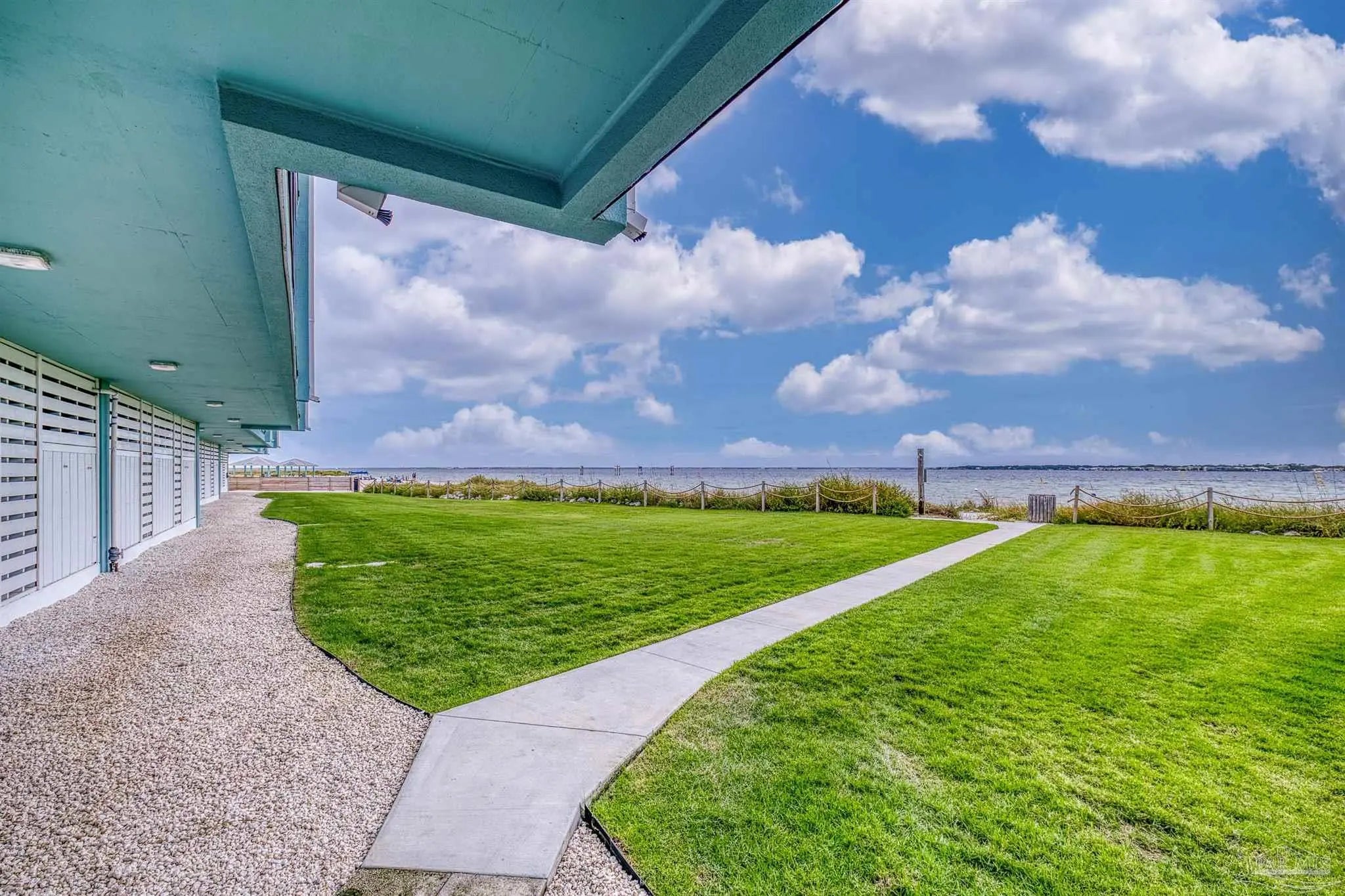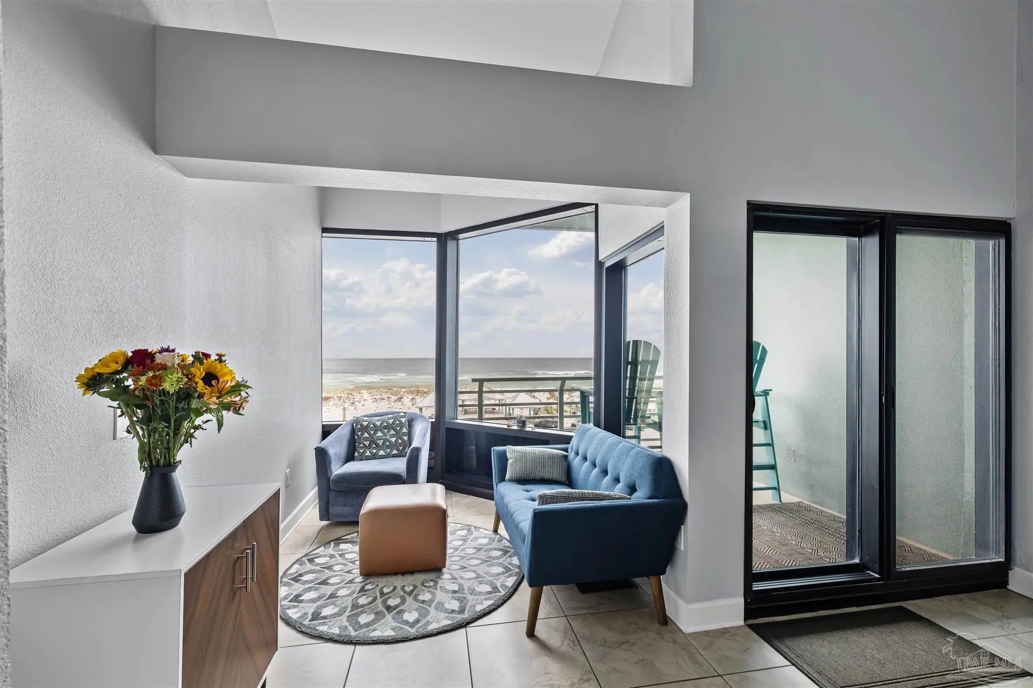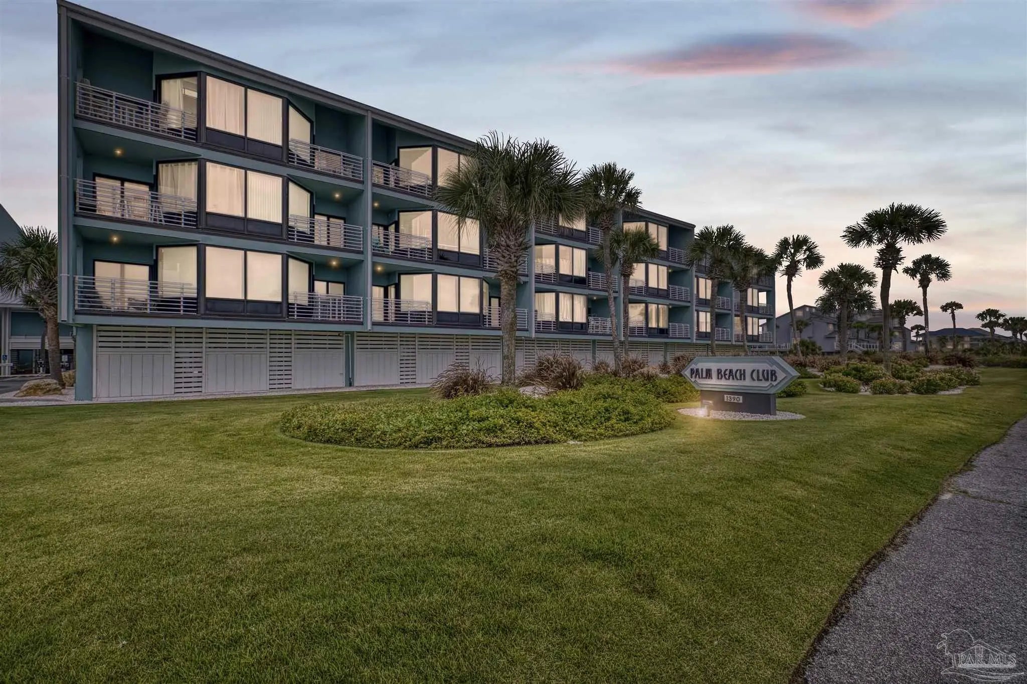 Wake up to sweeping Gulf views and the sound of waves in this stunning 3 bedroom/3 bath fully-furnished beachfront condo at Palm Beach Club. See the Blue Angels fly home during show season from one of your private balconies or the floor-to-ceiling windows of the open-concept main living area. All bedrooms have en-suite bathrooms, and the primary suite boasts a private balcony and spa-inspired bath with a view of the Gulf. Amenities include a recently-updated pool deck, private beach, kayak storage, gated entry, and two covered parking spaces with storage. Launch your kayak directly from the property, install your own mooring ball, or dock your boat at nearby Lafitte Cove Marina. Seasonal trolley/daily commuter bus stop across the street, and a multi-use path connects to downtown. Palm Beach Club recently completed a full renovation and the Milestone Inspection and Structural Integrity Study are complete. This unit is perfect as a investment, vacation retreat, or full-time home.