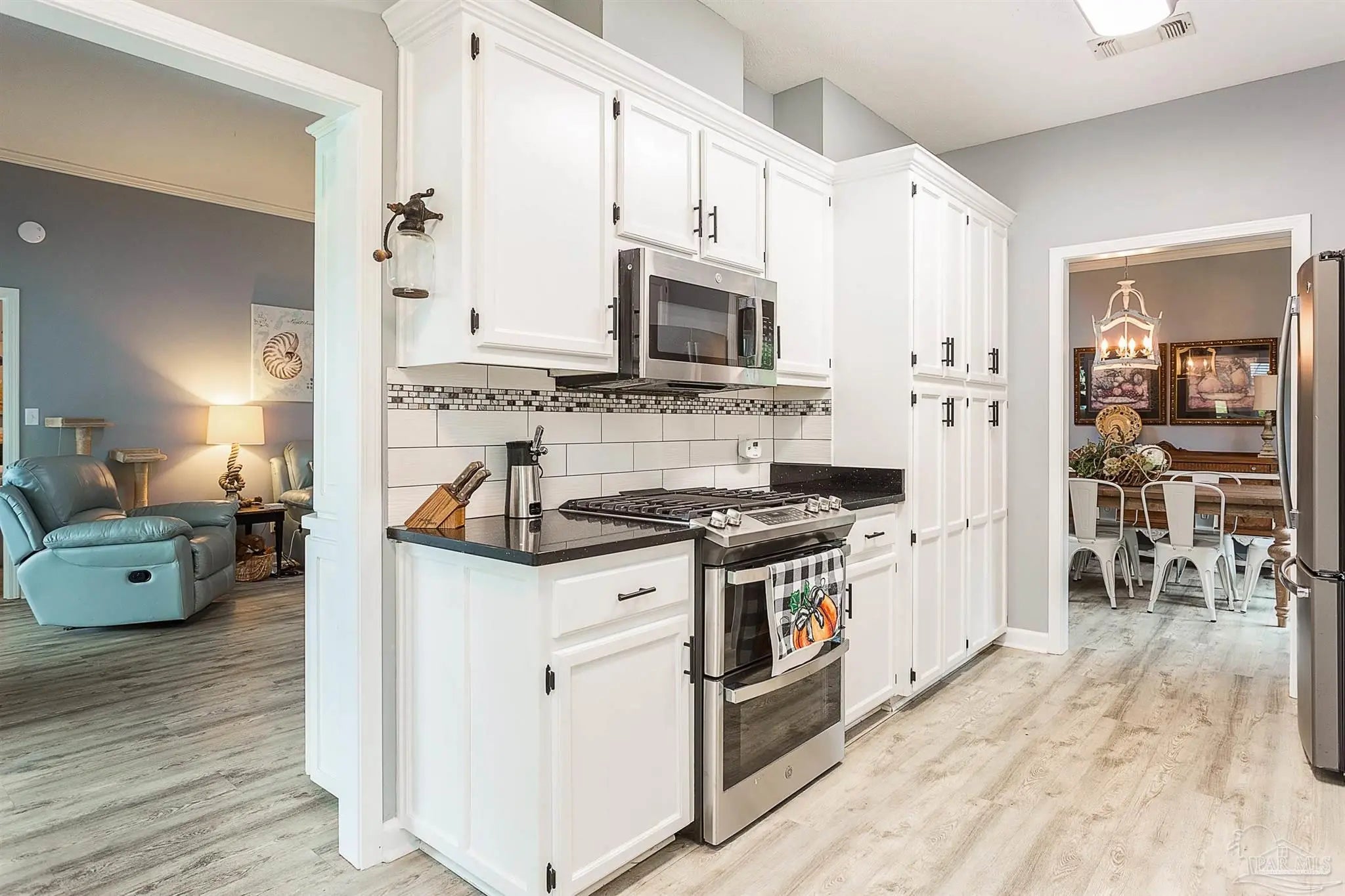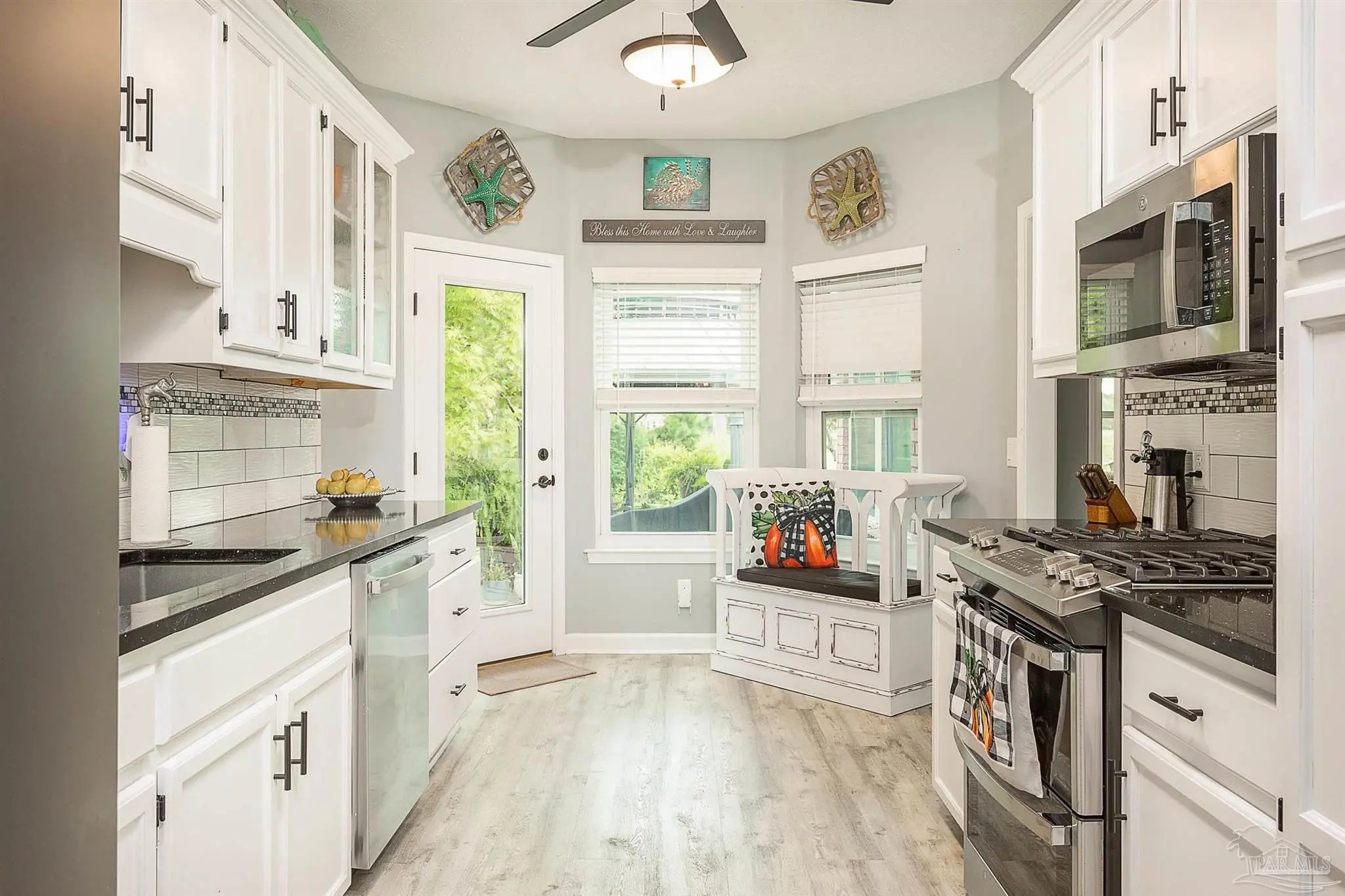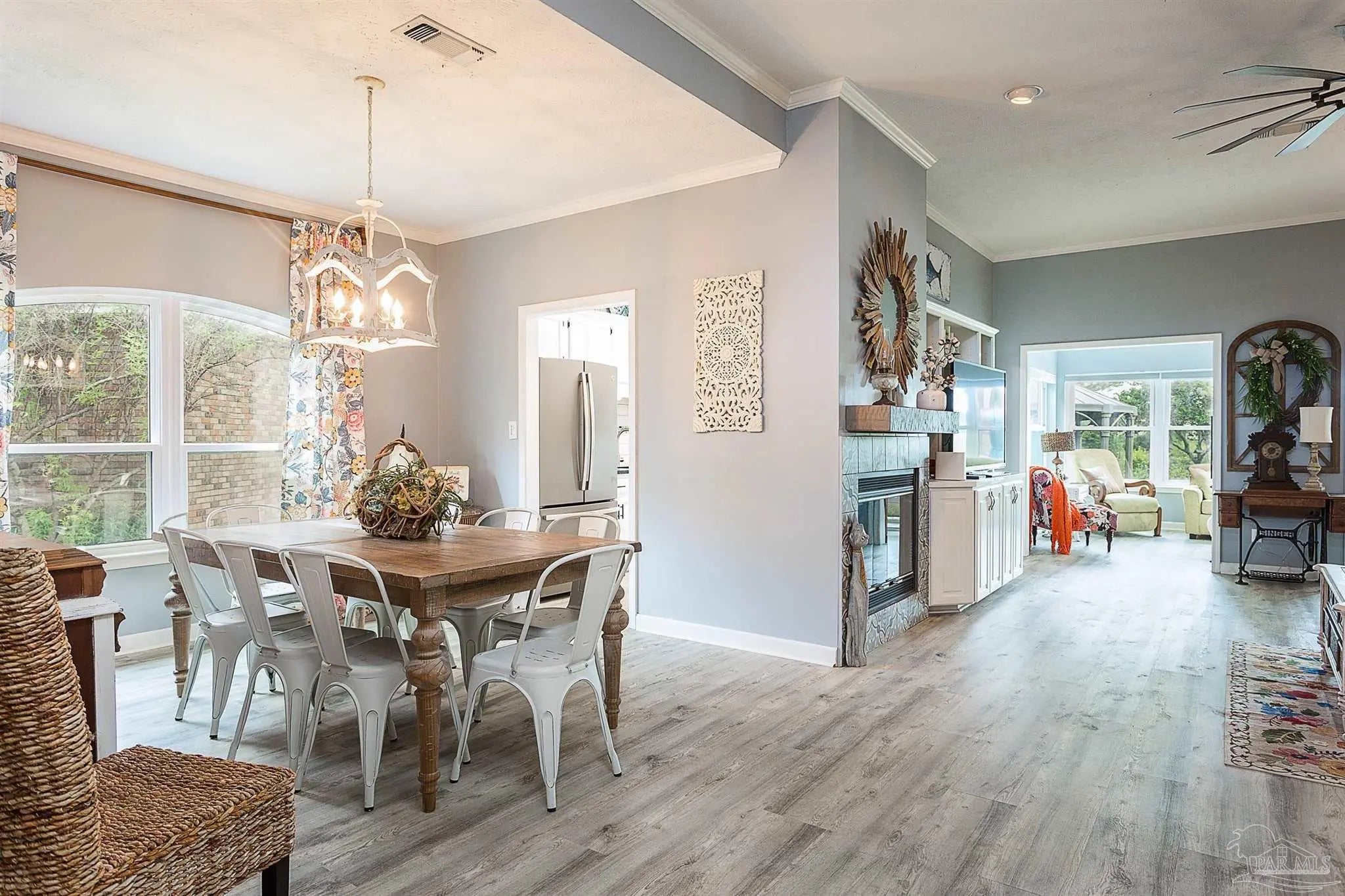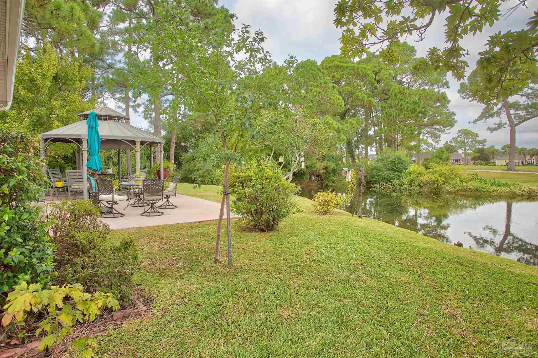 Welcome to the Fairways of Tiger Point East. This beautiful patio home overlooking the 13th green of Tiger Point golf course has been creatively updated providing a relaxing coastal retreat in the heart of Gulf Breeze, Florida. This 3 bedroom, 2 bath home features impact windows and doors, gas range, fireplace, water heater and outdoor grill. The expansive Florida room expands 28x11 and is a perfect multi-purpose room for a home office, exercise equipment, card room, reading and beyond. The nature and wild life scenes from the rear lake will make anyone an enthusiast. Additional updated features include lvp flooring through out the home, customized bath remodels, expanded patio space, modernized fixtures and kitchen expansion. This property is situated on golf cart friendly back roads-giving patrons a convenient and easy lifestyle of shopping, dining, beauty care, world class health facilities, parks, nature trails and more. Grade A schools, top rated private schools and Pensacola State College Gulf Breeze campus are minutes away. Take time to relax on Pensacola or Navarre Beach- both minutes away by car. This golf course community of 70+ homes are sought after and are perfect for the golfer or spectator. Schedule your tour today!
