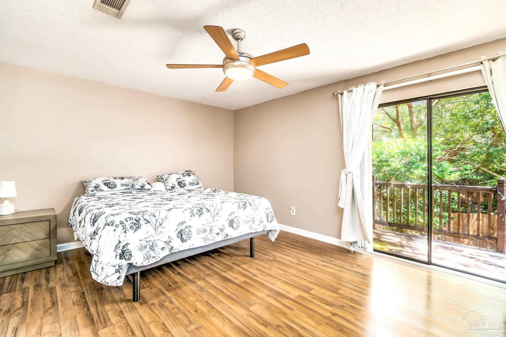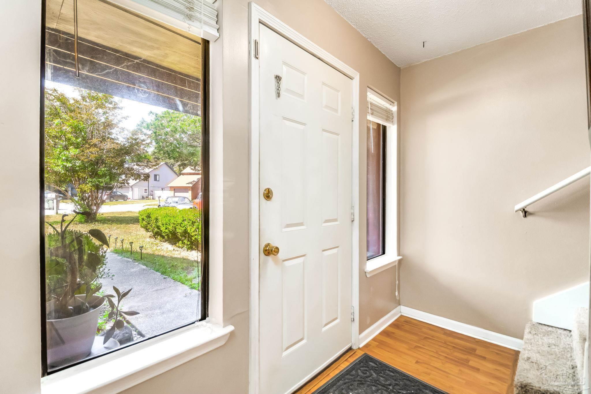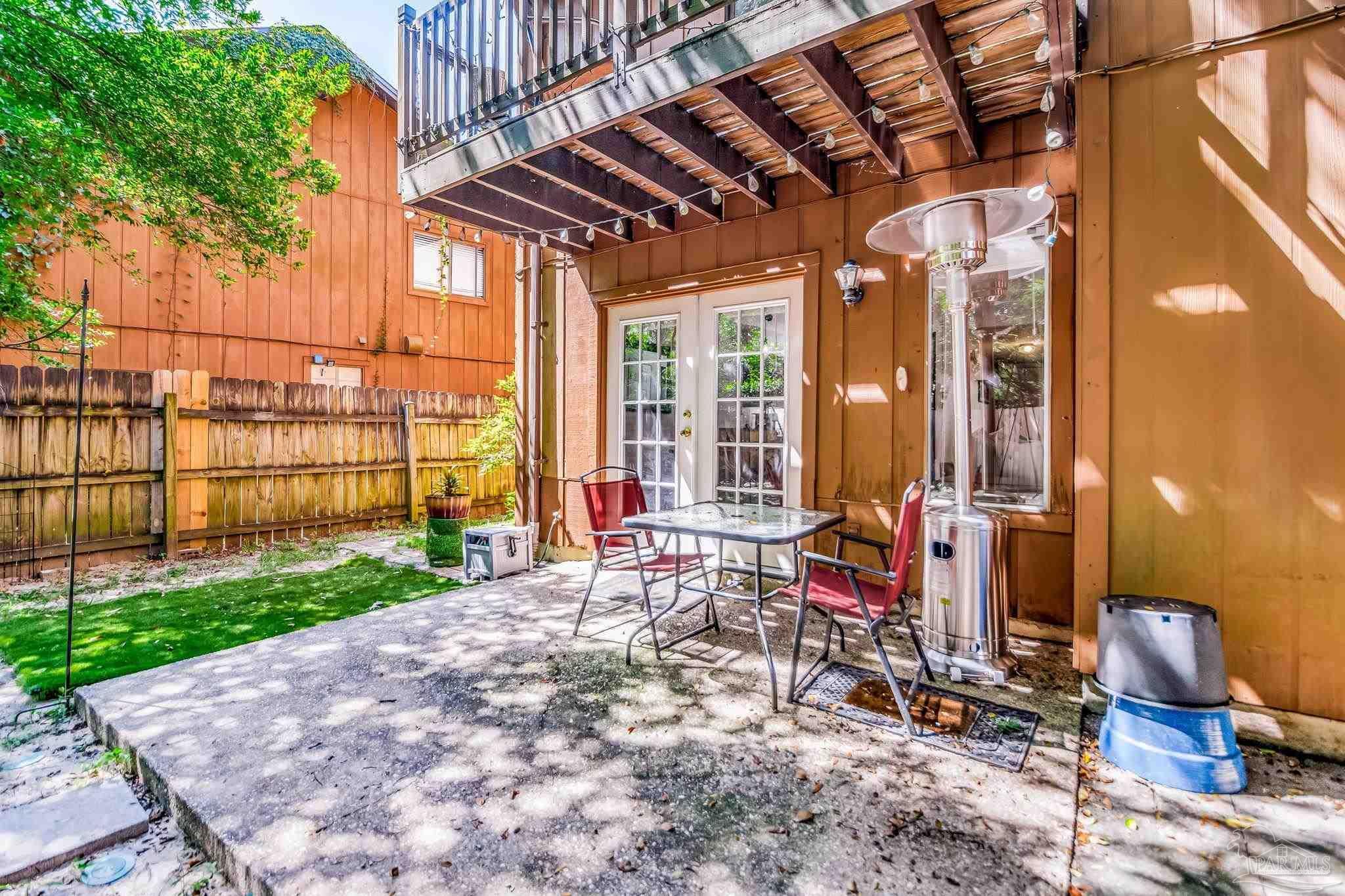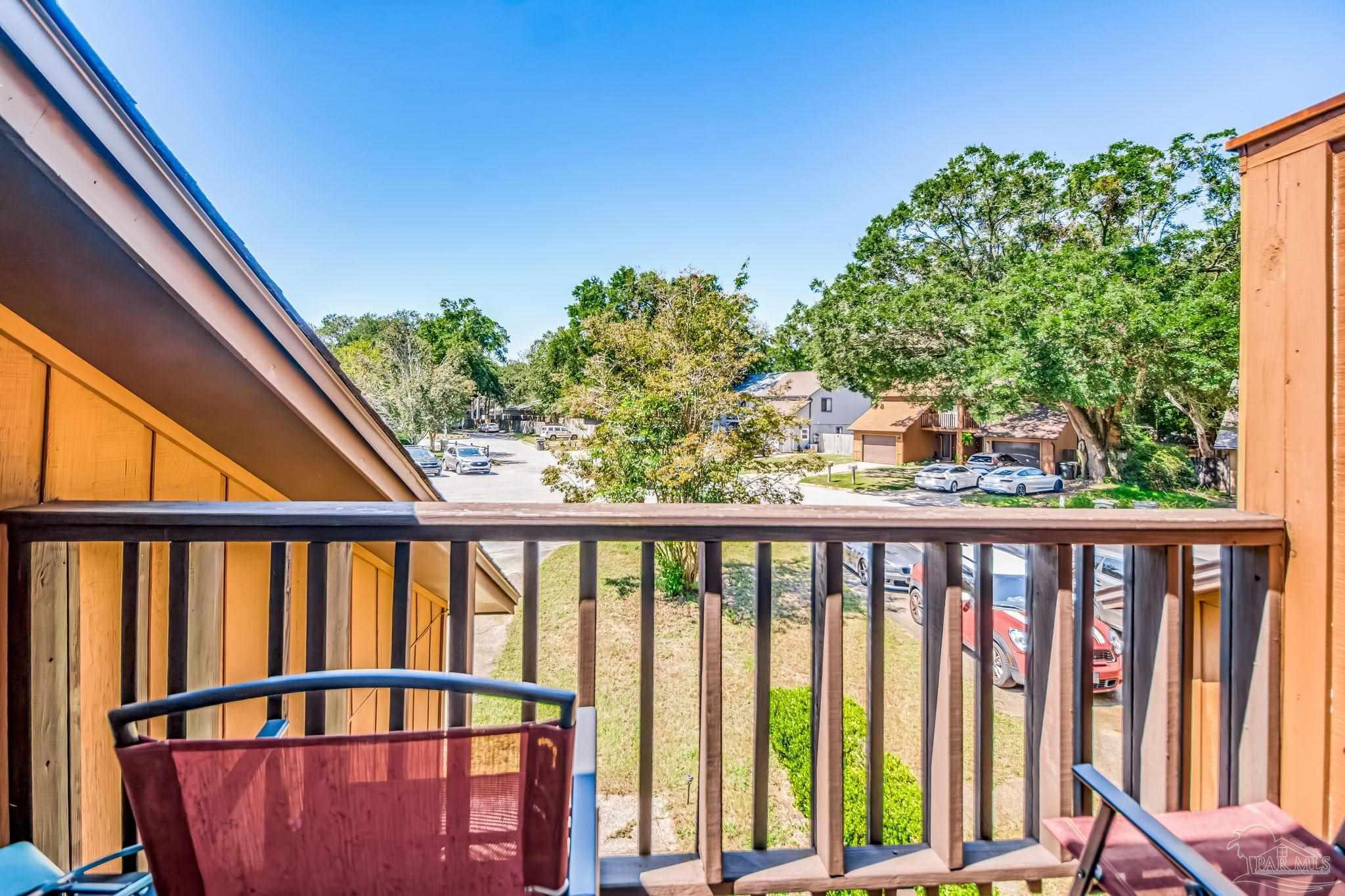 Adorable 3 bedroom 1 & 1/2 Bath Townhome in the heart of Northeast Pensacola! 1/2 bath downstairs. Wood burning fireplace in Great Room . Cherry cabinetry and corian countertops in the kitchen ~Laminate wood flooring downstairs~ Carpet in bedrooms and on stairs. Primary suite bedroom has a walk-in closet. Front and rear balconies for outside lounging. Single car garage. Full roof replacement in 2020. Very nice size backyard has privacy fenced and a storage building.