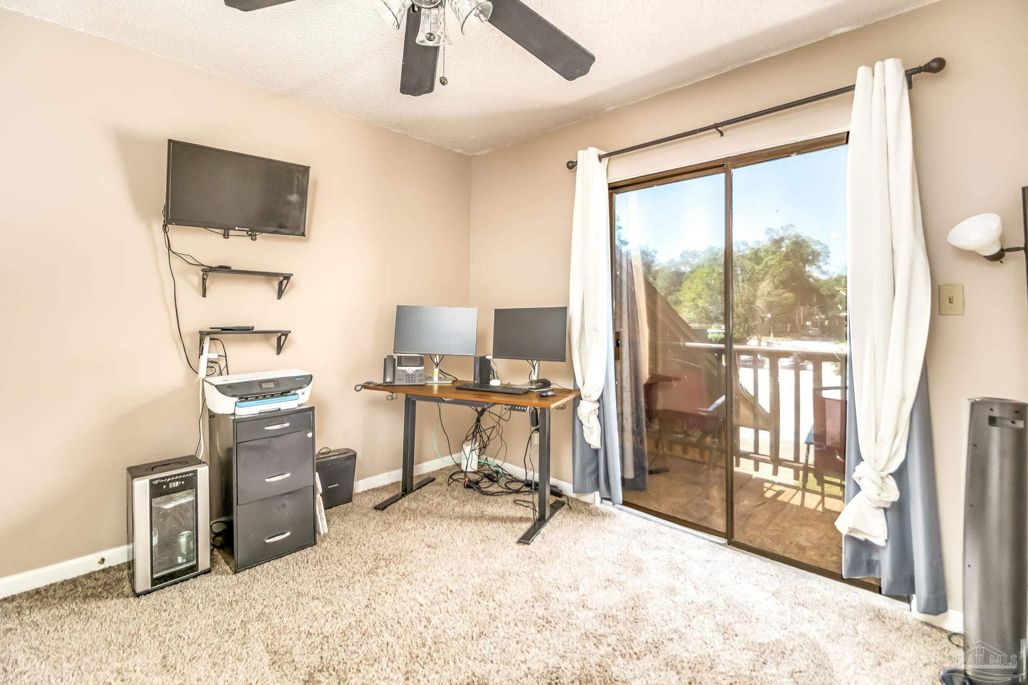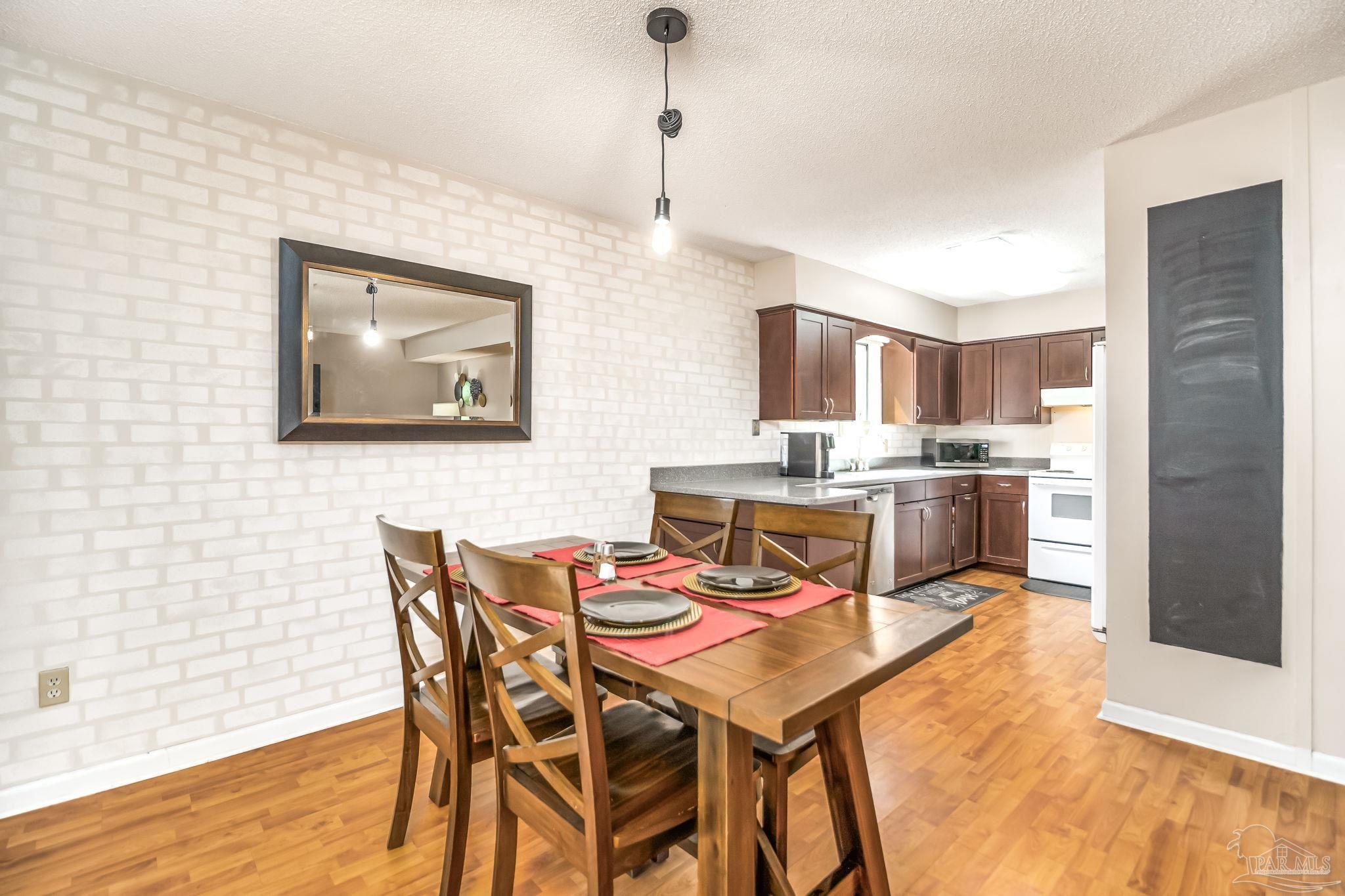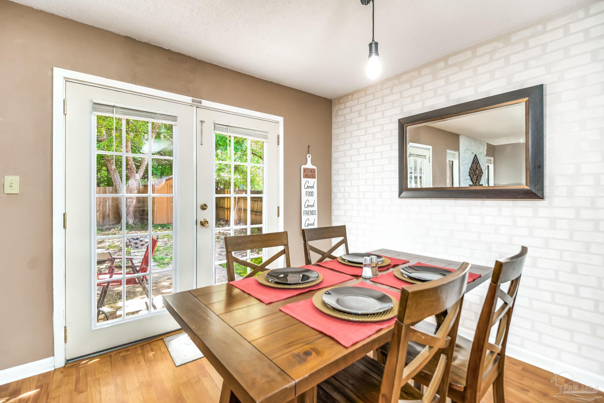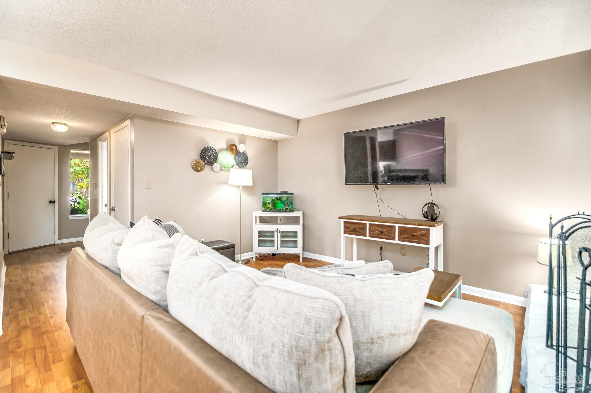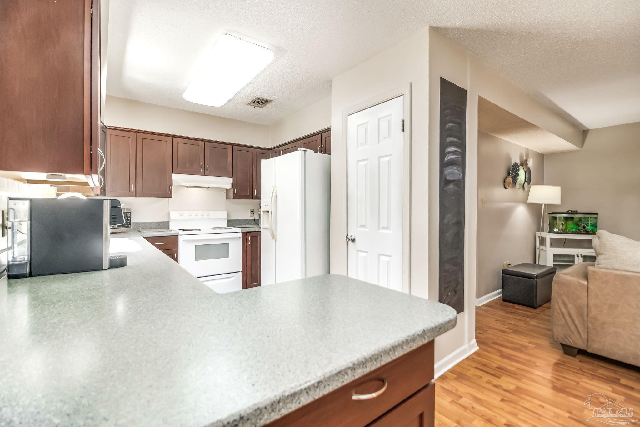 Adorable 3 bedroom 1 & 1/2 Bath Townhome in the heart of Northeast Pensacola! 1/2 bath downstairs. Wood burning fireplace in Great Room . Cherry cabinetry and corian countertops in the kitchen ~Laminate wood flooring downstairs~ Carpet in bedrooms and on stairs. Primary suite bedroom has a walk-in closet. Front and rear balconies for outside lounging. Single car garage. Full roof replacement in 2020. Very nice size backyard has privacy fenced and a storage building.