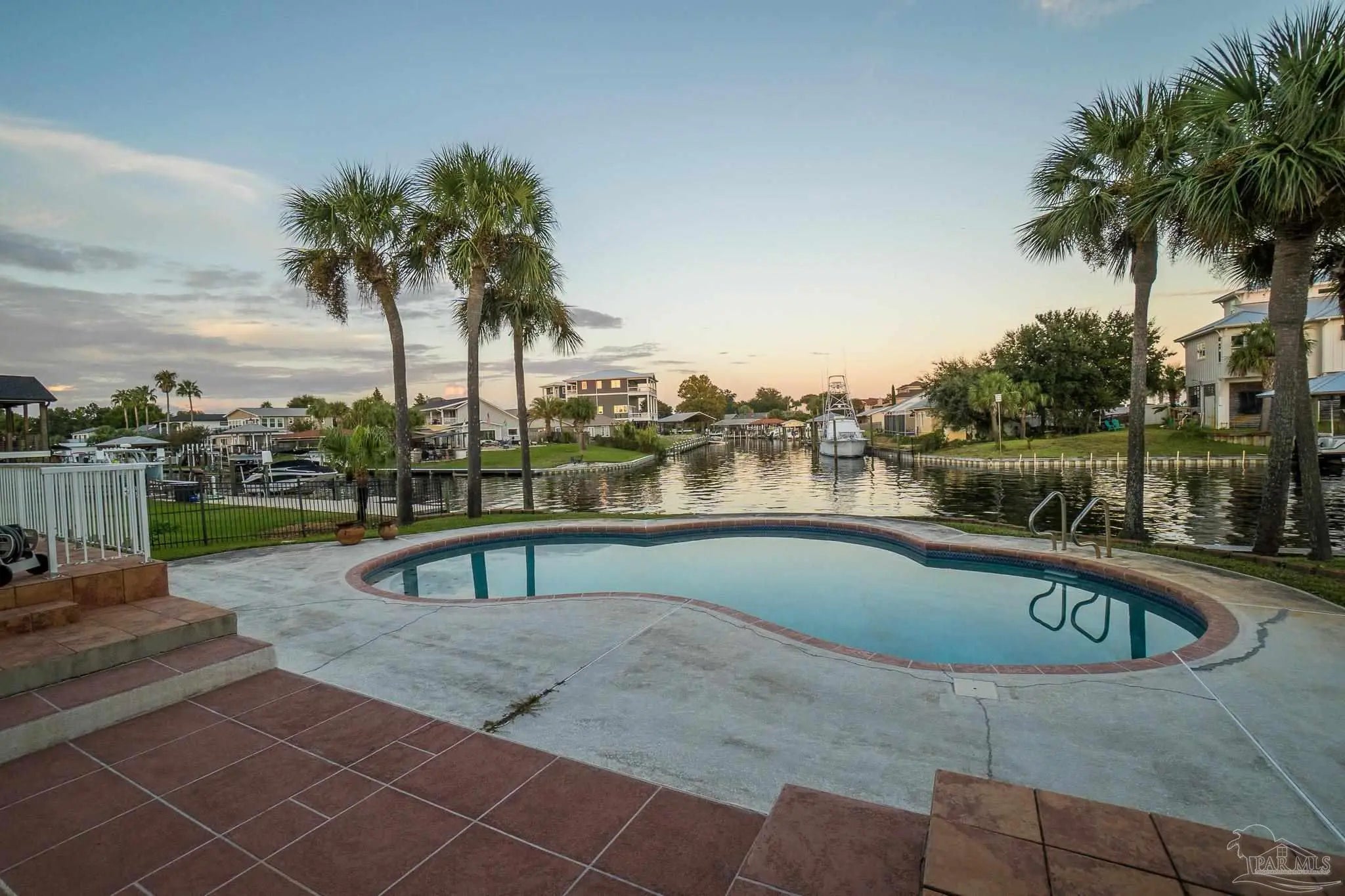 BACK ON THE MARKET!!! NO FAULT OF THE SELLER... Closing was contingent on Buyer's Home closing...Buyer's contract fell though...Have you dreamed of Intracoastal Waterway access leading to the Gulf? Or Traveling throughout Florida to the Atlantic? This is waterfront living at it's Finest! This 3 bedroom, 3.5- bath home combines elegant design with the perfect canal-front setting. Built with stucco over brick and featuring a paver driveway, the property welcomes you with a soaring floor to ceiling "great room" complete with a wood burning fireplace and expansive views of the canal. French doors open to porches and balconies that overlook the gunite pool and the wooden deck-lined bulkhead, offering a seamless connection to the water...Located at the bend where two canals meet, this home offers a front-row seat to the early morning boats heading out for a day of fun on the water. The private master suite enjoys its own balcony, while the kitchen/dining area showcases breathtaking views of the canal's mouth. Granite countertops, stainless steel appliances, and a built-in desk area elevate the space, complemented by an extra large laundry room with utility sink and cabinetry....Upstairs, a hardwood staircase leads to a versatile bonus room with pristine water views...ideal as a teen retreat, home office, or entertainment space. The second story also features the 3rd bedroom ,full bath and two large closets for storage... Whether it's relaxing by the pool, enjoying the balconies or watching the boats pass, this property offers the dream of Florida canal-front living. Come see for yourself and make waterfront lifestyle your"Reality" !!!