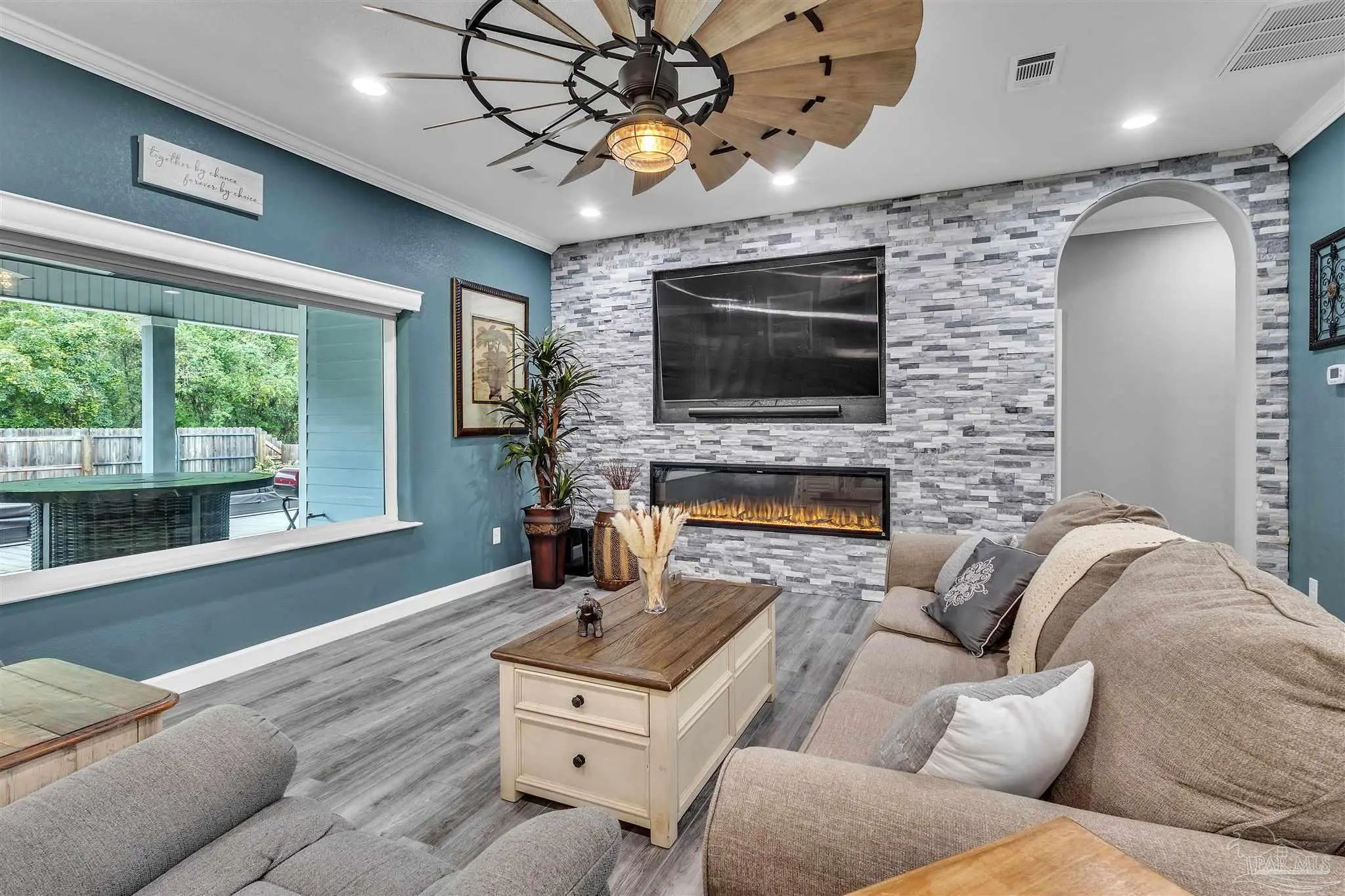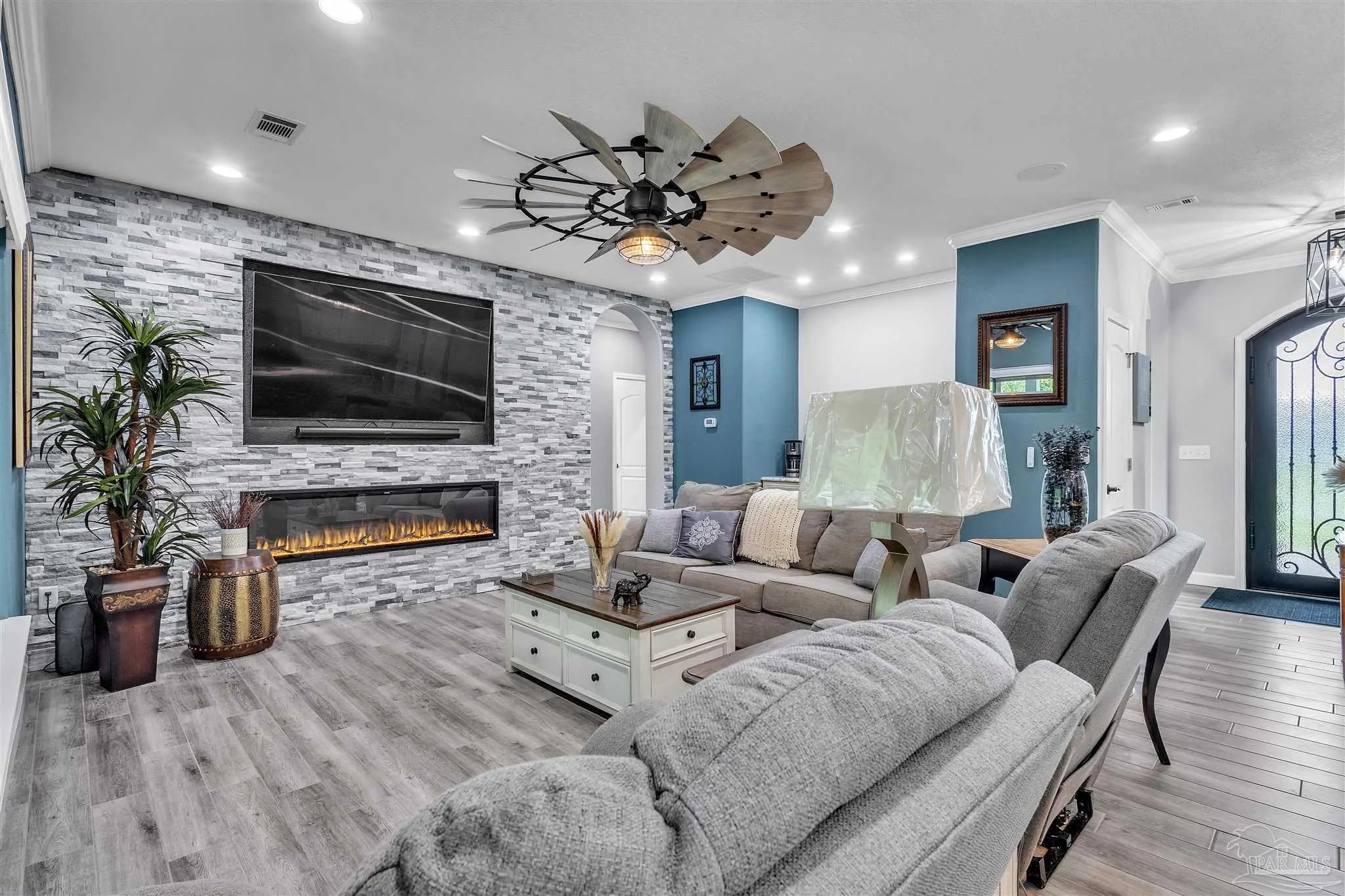 Check out this custom built luxury home! This home was built to be a forever home, with several high end finishes and features that you won't find in the cookie cutter homes. The spacious living area combines the kitchen, dining, and living room areas into one massive space, while still being distinct areas of the home. The master bedroom suite, located off the kitchen area, features a large walk-in closet, walk-in shower, soak tub, and double vanity. 2 additional bedrooms are available, along with a fourth bedroom/bonus room that is perfect for a home office, bedroom, or kid's play room. Interior features include durable hard plank flooring throughout the home, a chef's kitchen with granite counter tops, custom cabinetry in the kitchens and bathrooms, a dry bar/coffee bar area in the living room, electric fireplace, and a dog washing station in the laundry room sink area. Additional features include electric blinds with remote, Sonos surround sound speakers throughout the inside and outdoor porch area, an imported German light fixture, a high-end Midtown Mint Green Shaker 36" Farmhouse Vented Hood with remote control, and a 36” ZLINE 6-burner gas range. Outdoor features include gas and water hookups for a custom outdoor grill/sink combo, ceiling fans, Sonos surround sound, a 55" TV, a Riverpace Dual Zone Spa and Pool for relaxation and outdoor enjoyment, Durable Trex Sun Comfort Decking that will never get hot in the sun, a very wide driveway that allows for parking a boat or trailer, and a 10' privacy fence with double wide doors - perfect for those who like to work on their cars. Furniture is not included, but can be purchased outside of closing. This house blends luxury, functionality, and a sense of home that is too perfect to pass up. This one-of-a-kind house is waiting for you to make it your home. Don’t miss your chance to own this dream property!