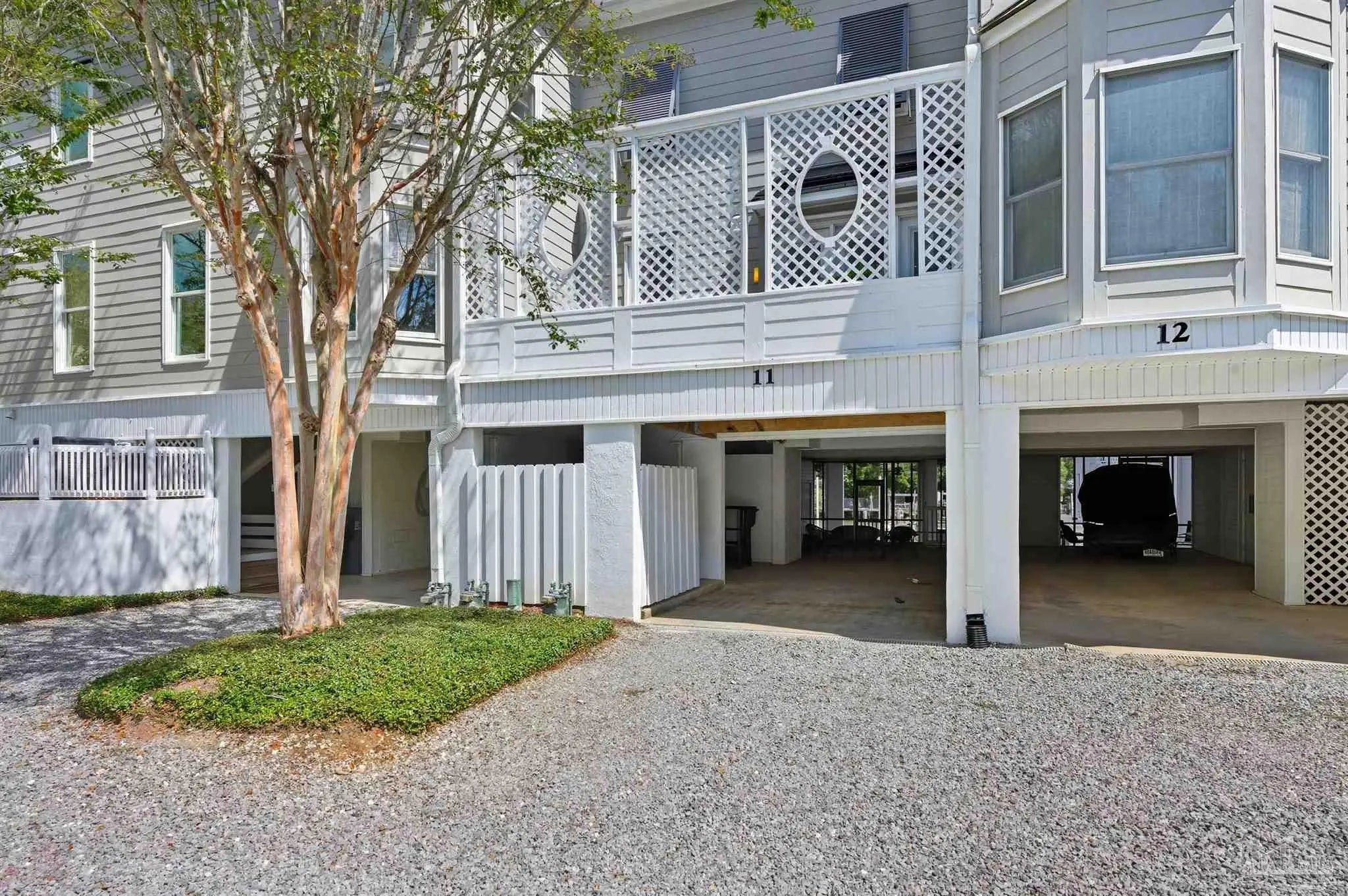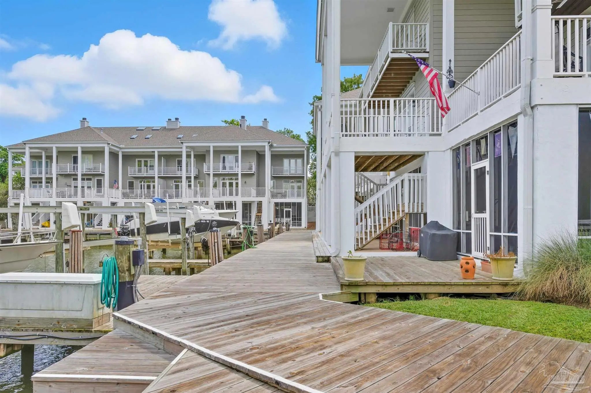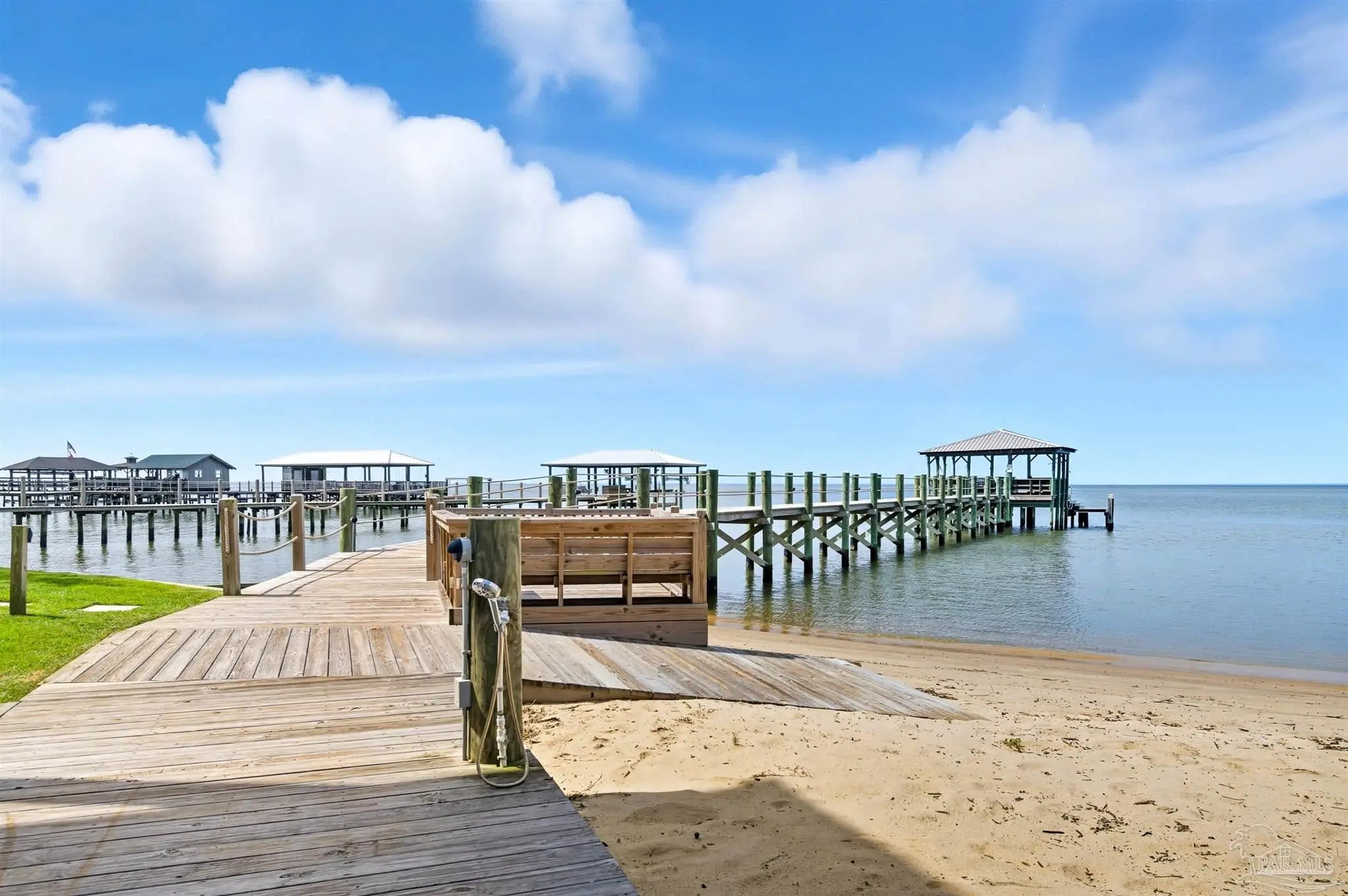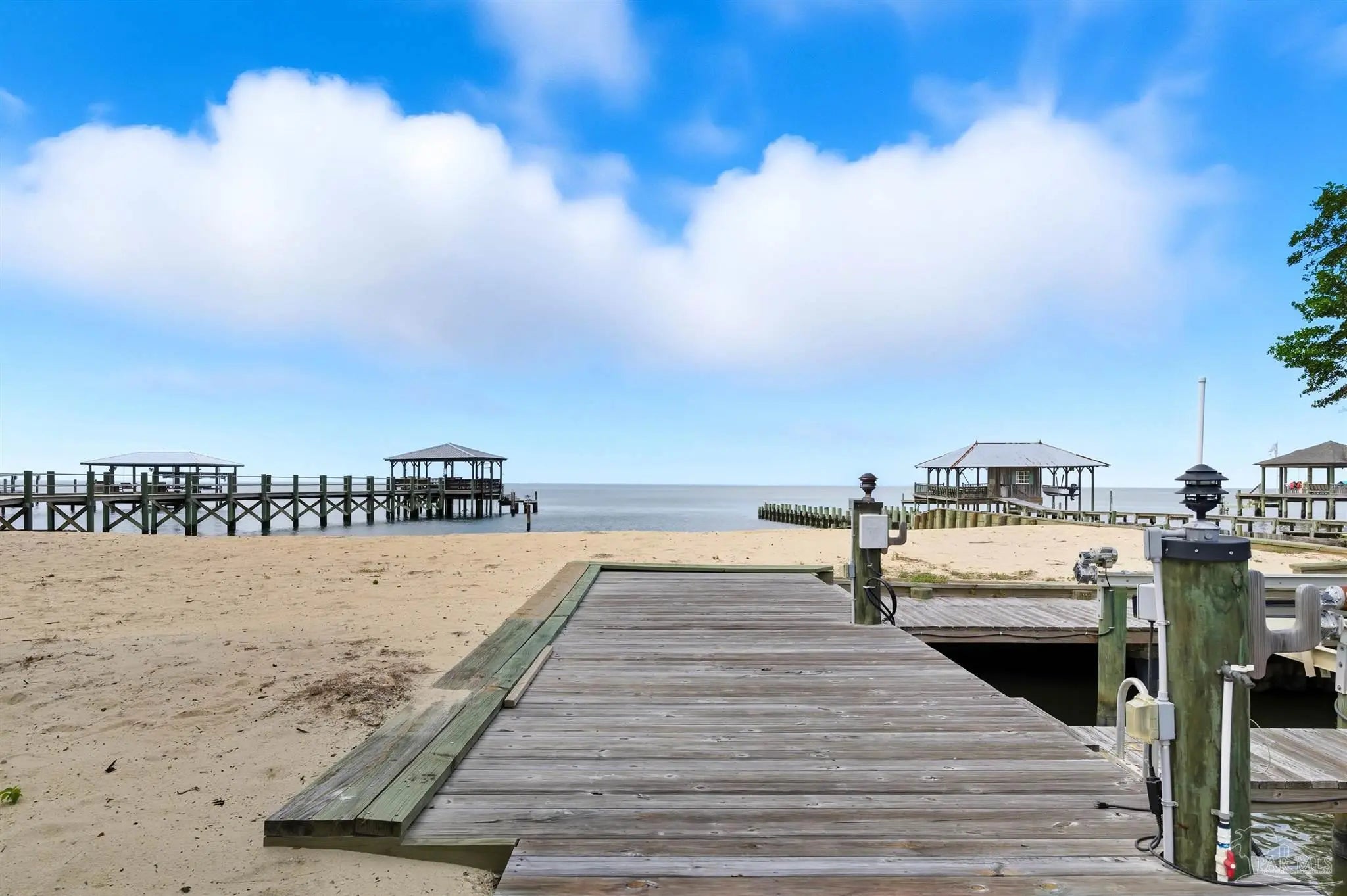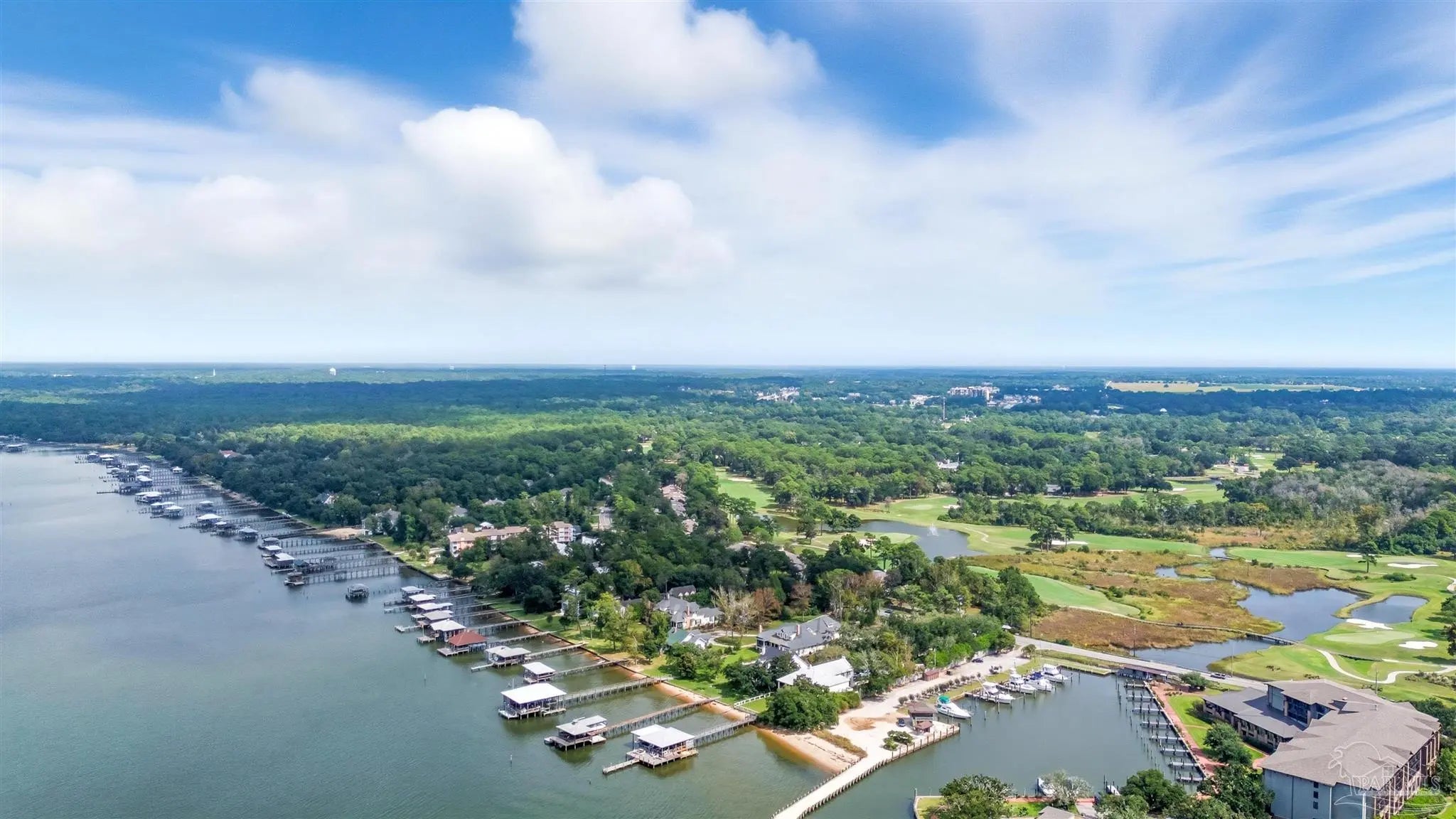 This is the place where dreams become reality and where precious memories grow! Come to POINT CLEAR LANDING, and enjoy first class waterfront living at one of the most cherished spots in southern Alabama. This serene community of private townhomes is just a short walk away from the famous Marriot Grand Hotel at Point Clear. Each townhome has its own (newly rebuilt) private boat dock, and this one has a coveted boat lift! A unique property in a hidden jewel of a location, Unit 11 offers covered parking for multiple vehicles and/or boat trailers. The unit elevator serves all four levels, so you never have to unload groceries in the rain or struggle with heavy loads. The main (2nd) level consists of a living room with a fireplace, full sized dining room, and a galley style kitchen, which flow together gracefully. A half bath is thoughtfully located near the stairs. The 3rd level contains two spacious bedrooms, and the primary suite opens out onto its own private balcony. On the top floor, a spacious loft bedroom -large enough to convert to a playroom or office space, contains beds to accommodate four. Skylights add to the magic - imagine lying in bed and looking up at the stars! For those who love the outdoors, the home features 4 different outdoor spaces: a screened porch at the ground level, two decks, one opening from the living room and the other from the kitchen on the main level, and a private balcony just off the primary suite at the 3rd level. The common areas will draw you in: The main pier on Mobile Bay offers a gazebo with a large dining table, plenty of deck chairs, and a hammock for those perfect, lazy afternoons. For the anglers, there is a fish cleaning station at bayside, and another closer to the private docks. Picture yourself living at Point Clear, enjoying gorgeous views of Mobile Bay from the complex pier and gazebo, living out your dreams, and making memories to last a lifetime. Buyer to verify all information during due diligence.