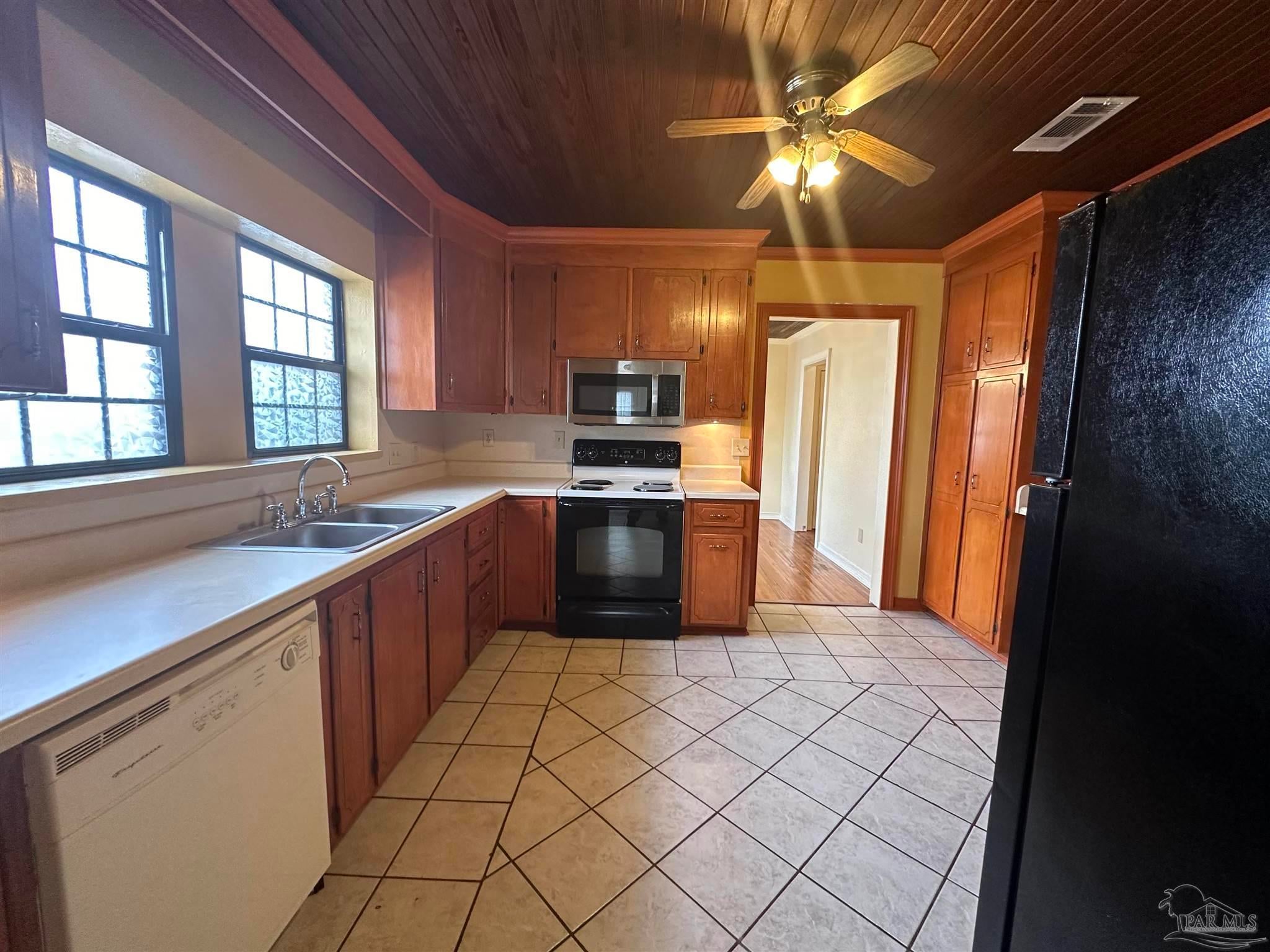 Great home with LOTS of character! No pets considered for this home, but lawn care included in the rent *** INTERIOR FEATURES include: Living Room beautiful wood ceilings, ceiling fan, original hardwood floors ~ Kitchen features tile floors and includes a Refrigerator, Dishwasher, Stove, Built in Microwave ~ Master Bedroom with adjoining Master Bath ~ Updated Master Bath has tile floors, double vanities, foot bath, shower/tub combo~ 2 Guest Bedrooms~ The Updated Guest Bath is located in the hall and has tile floors as well ~ Security System *** EXTERIOR FEATURES include: Fully Fenced Yard ~ Minutes from NAS, Corry Station and Perdido Key **** Please verify all features and dimensions prior to applying or placing a deposit on the home if there are specific items that are important to you *** All of our homes are in very good condition and clean – please give us an opportunity to show you excellent customer service!