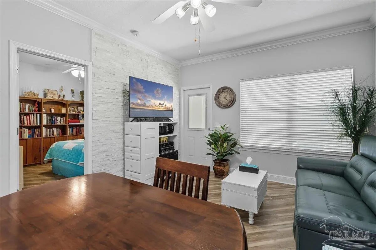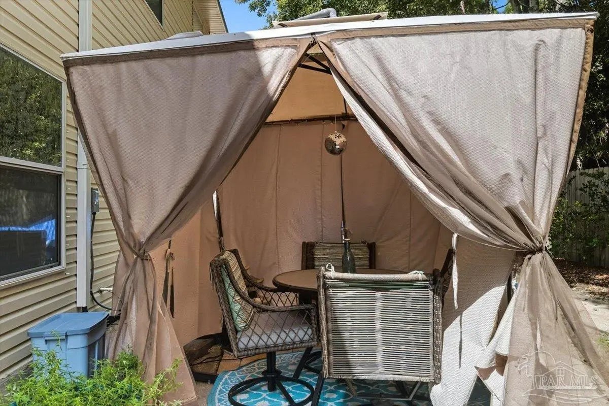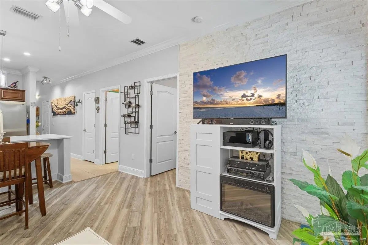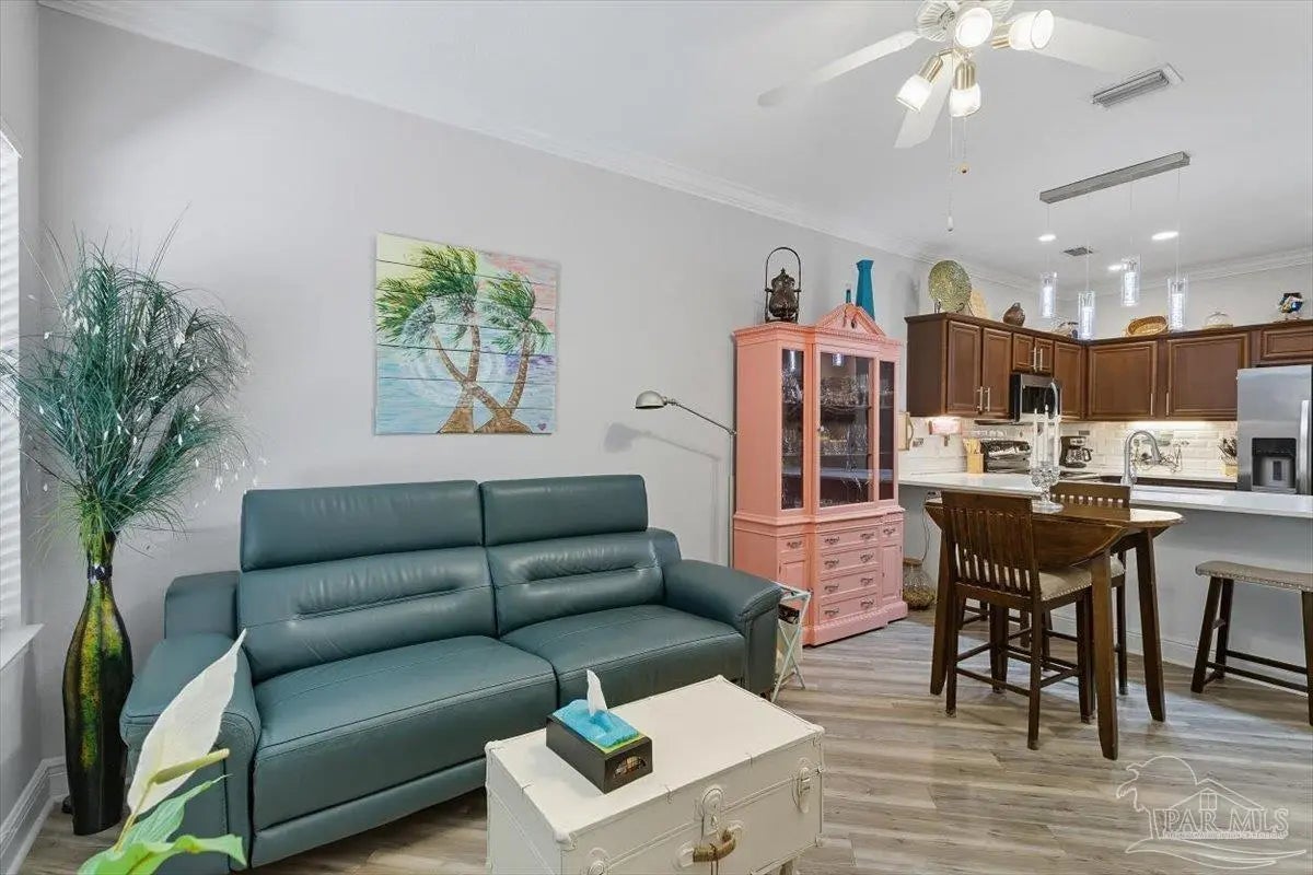 New Roof to be installed! Exceptional updates to this recently renovated 3 bedroom 3 bath townhome. Outstanding design and décor includes a wall of quartz tile, high 9-ft ceiling, crown molding, recessed lighting, and luxury vinyl plank on the diagonal in the living area. The kitchen is open concept with quartz counter tops, breakfast bar, soft close cabinets with under and over lighting, stainless appliances, and custom pendant lights. The first level bedroom is ensuite with walk in closet and bath has access from living area. The steps to second level have vinyl plank treads and beneath the steps is a storage area. The ensuite primary bedroom has two closets and cultured marble vanity. The third bedroom has access to guest bath. Outside is an enlarged patio and walking path. Other updates include new shower heads, additional shelving to provide more storage, 2025 Roof to be installed, 2025 Microwave and Dishwasher, 2022 HVAC and 2022 Water Heater. Move in ready and updated in every respect. East Navarre location is convenient to bases, shopping schools and beaches.