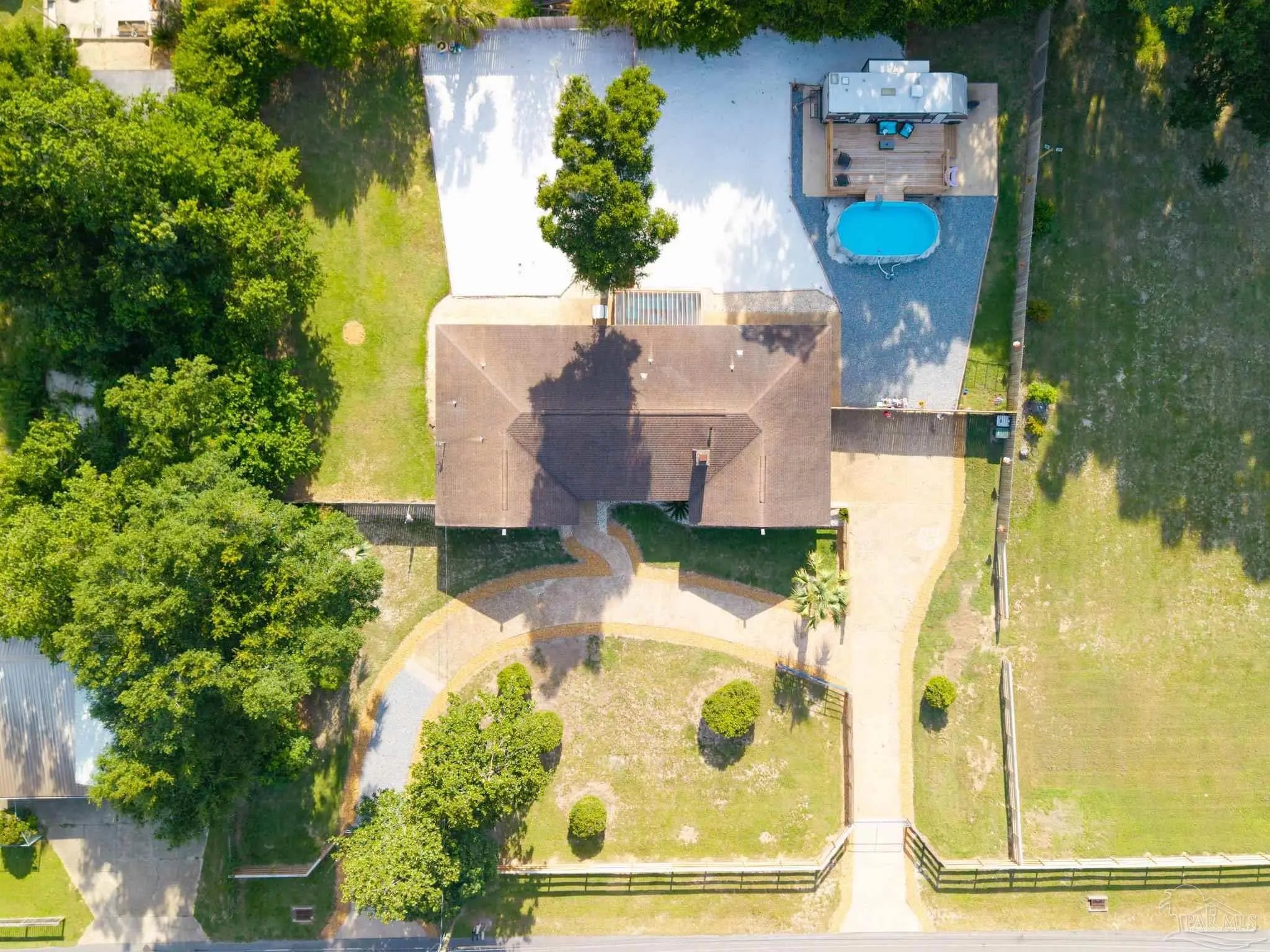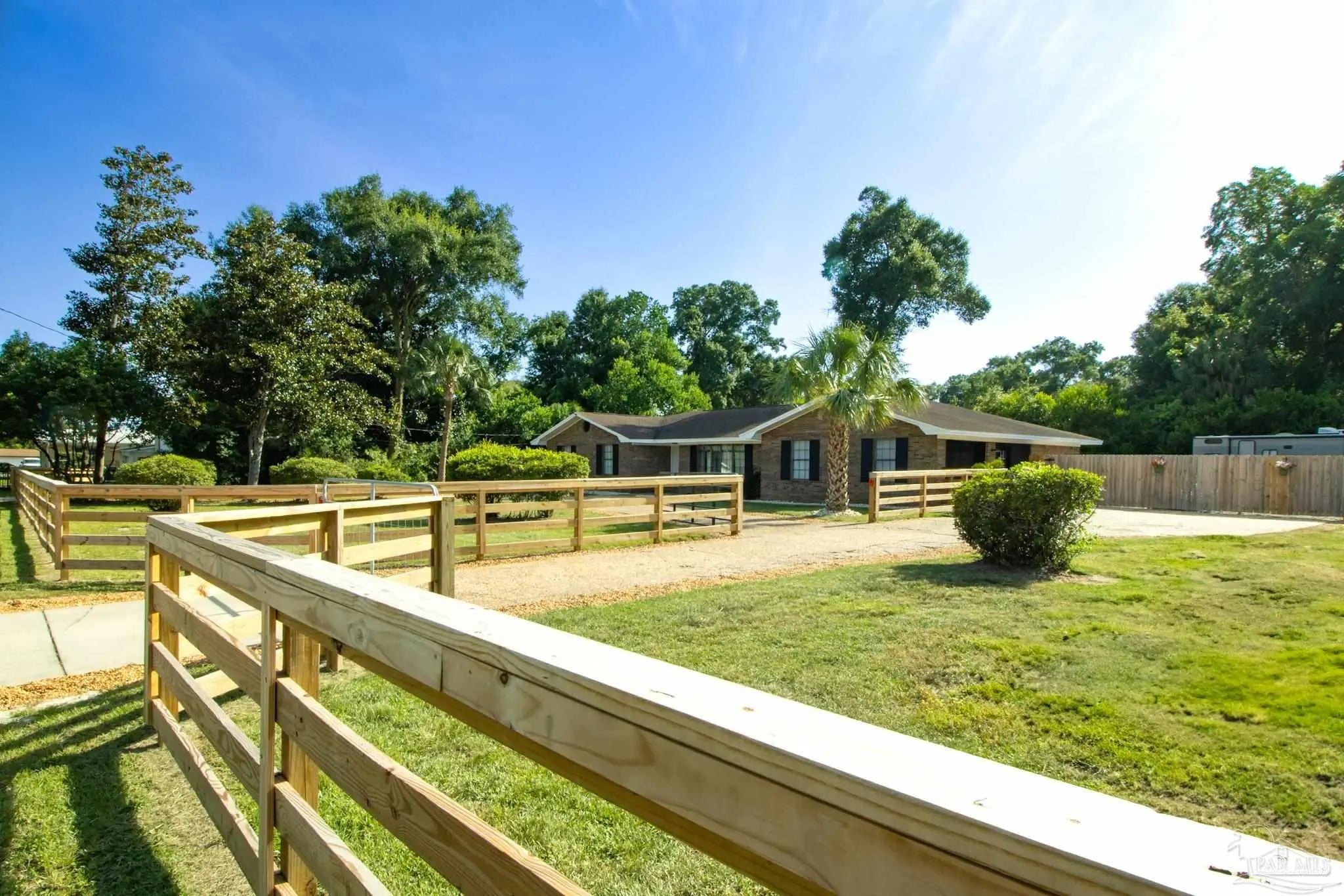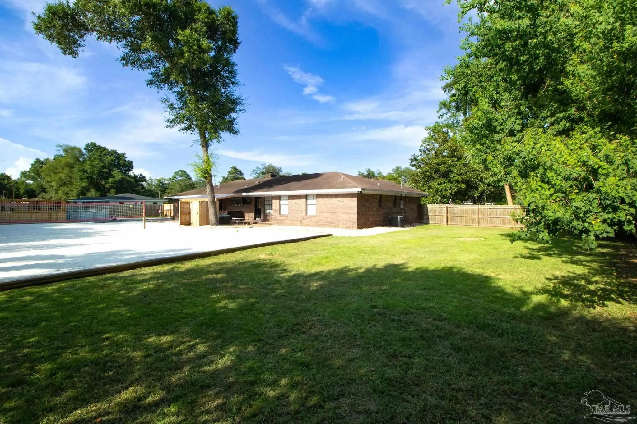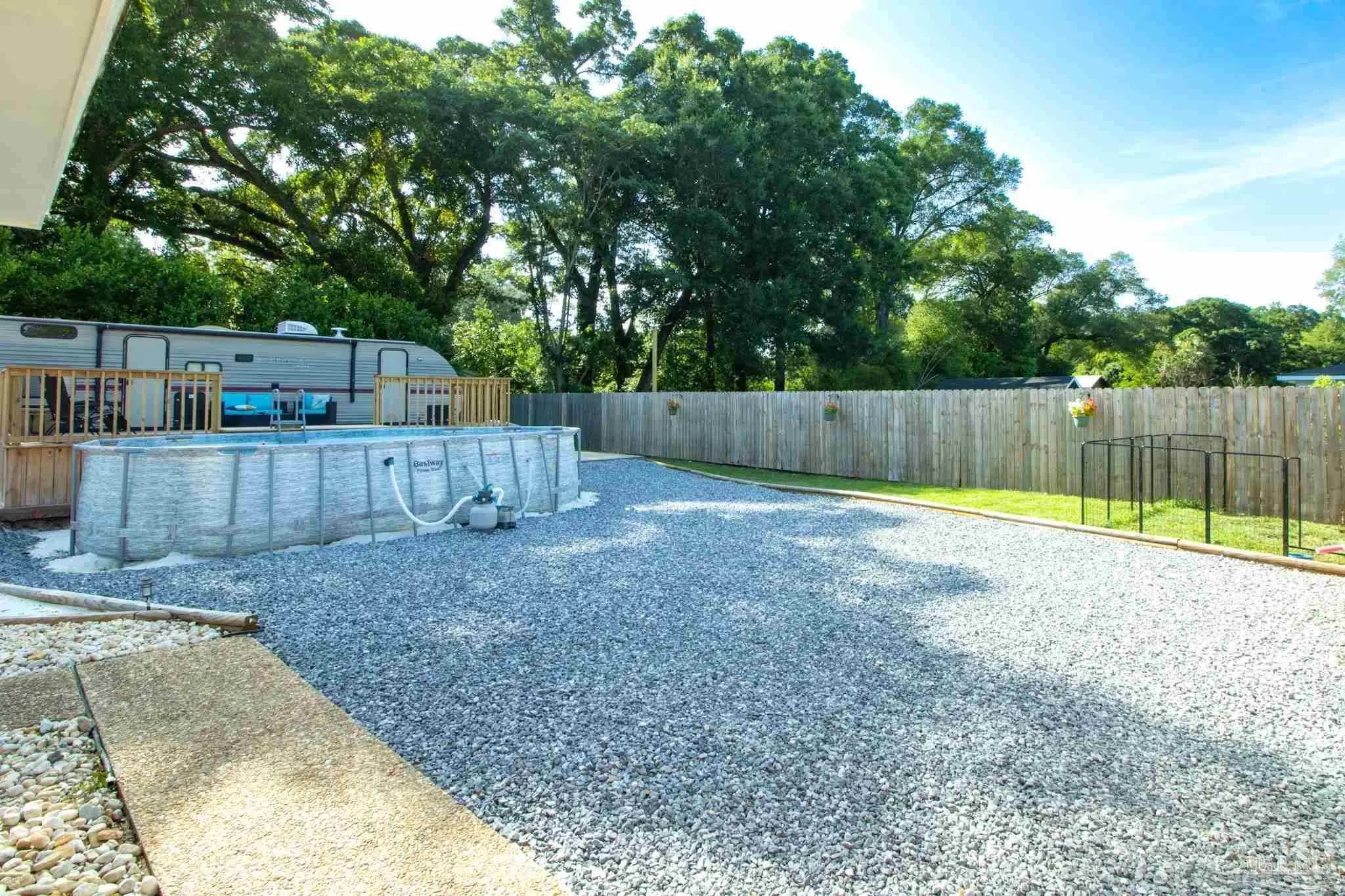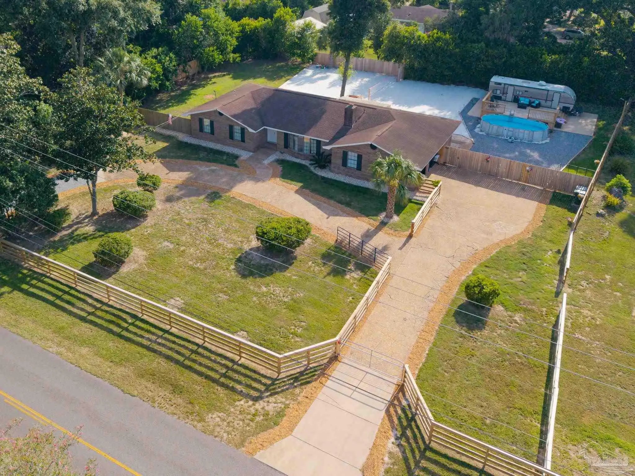 Charming Brick Ranch on .7 Acres! four generously sized bedrooms, three full bathrooms, fresh paint throughout, new kitchen counter tops/sink, new ceiling fans throughout, 2 car attached garage that has been converted into an extra living area/playroom. The entire property is fenced, offering peace of mind for pet owners or children to play freely. For the little ones, a giant sand pit awaits! Beat that Florida heat in your Intex above-ground pool! The covered back patio has tons of room to set up your outdoor dining or lounge seating! Providing the perfect blend of family living and exciting coastal adventures, significant recent improvements and ample outdoor space, it's truly a gem. Also, Location, location, location! 25 minutes to Pensacola Beach or 40 minutes to Orange Beach, Alabama!