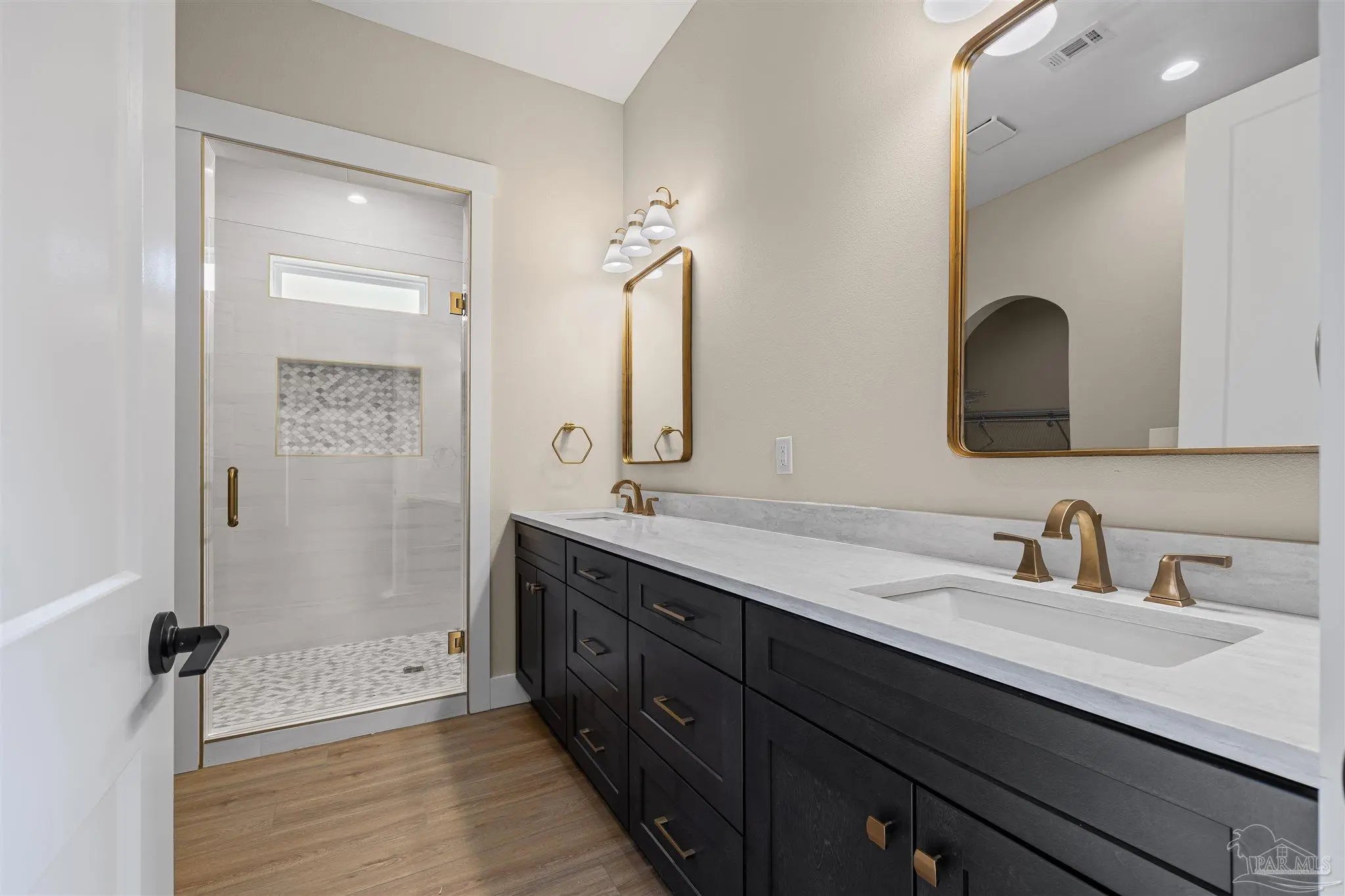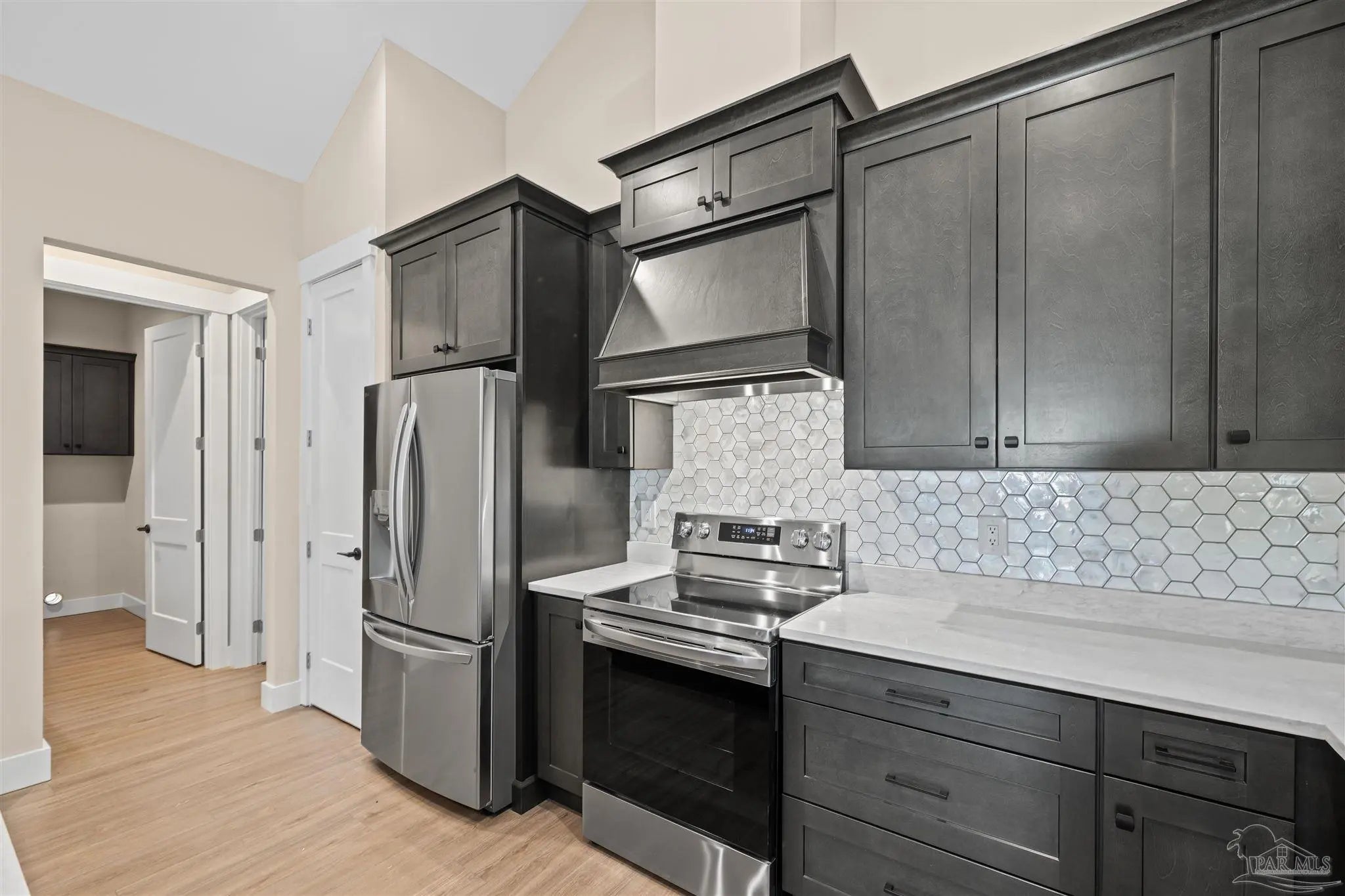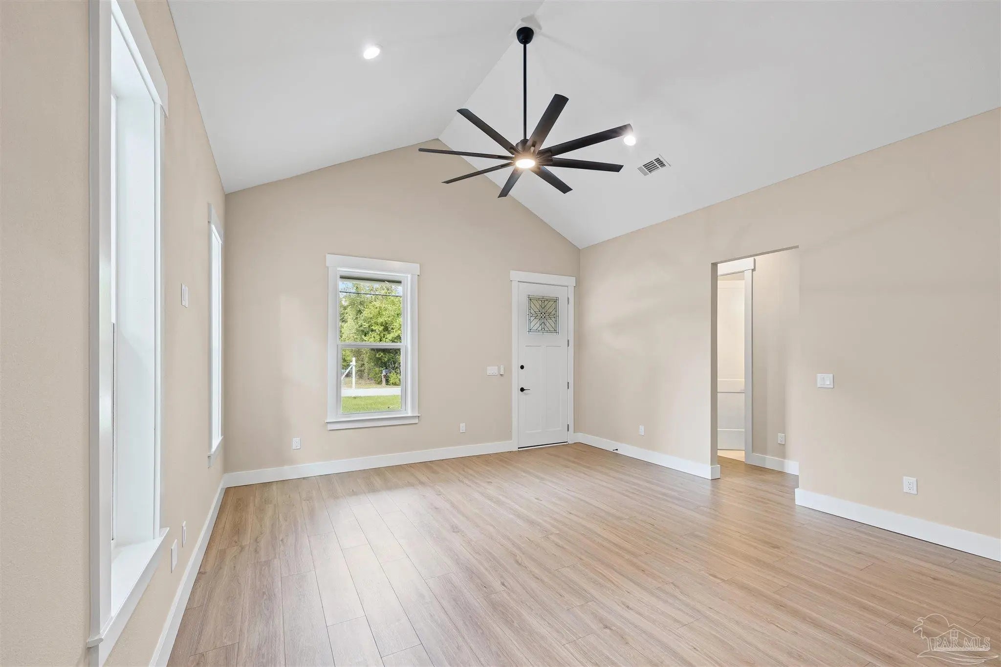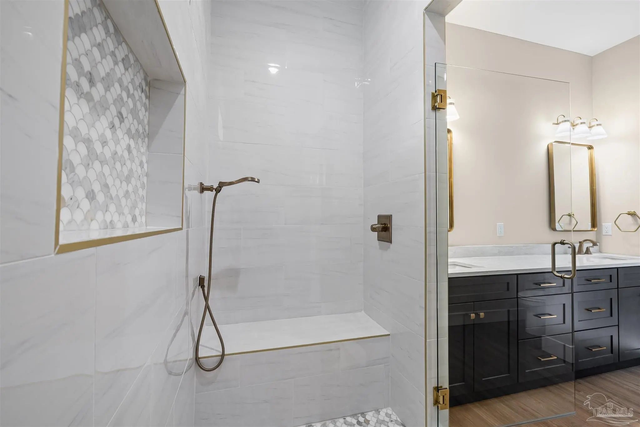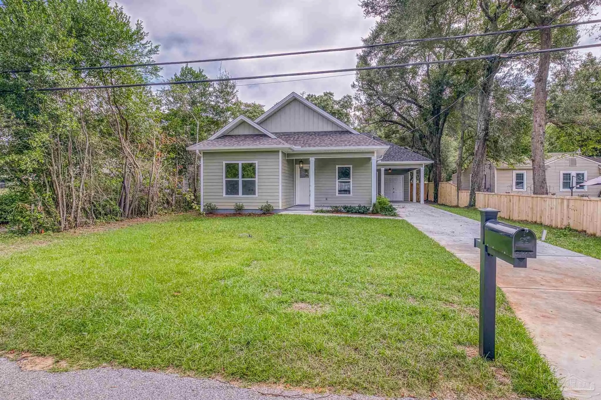 2025 Custom New Construction on just under a quarter acre Minutes from Downtown and multiple water accesses in the neighborhood! Drop your Kayak in the Bayou Chico. Less than 1 Block from Lakewood Park and use the Public Launch at the Mahogany Mill public Boat Ramp for your larger vessels less than 5 minutes away, putting you minutes to the Pensacola Pass into Gulf Waters! The homes Luxury Finishes begin with 10ft base Ceiling Plate throughout with vaults peaking 14 ft. Kitchen features premium granite, LG advanced appliance package with custom vent hood, dedicated pantry, Island for added prep space and service, tasteful tile backsplash, and all cabinets and drawers set with soft close. The master suite is spacious and can easily fit king furniture and a sitting space. Large walk in closet wraps around into the stunning ensuite bathroom, equipped with an oversized walk in shower with sitting area and dual shower heads, his and hers vanities with brushed gold accents all over. The guest bedrooms are 13' each and share a hall bath with tile work in the shower. LVP aqua shield scratch and water resistant flooring lines every inch of living space with no carpet, and custom high gloss tile in the guest bathroom. The carport has a built in enclosed storage and is big enough to store all of your lawn equipment and holiday decor. If you need more space, there are pull down stairs for attic access as well.