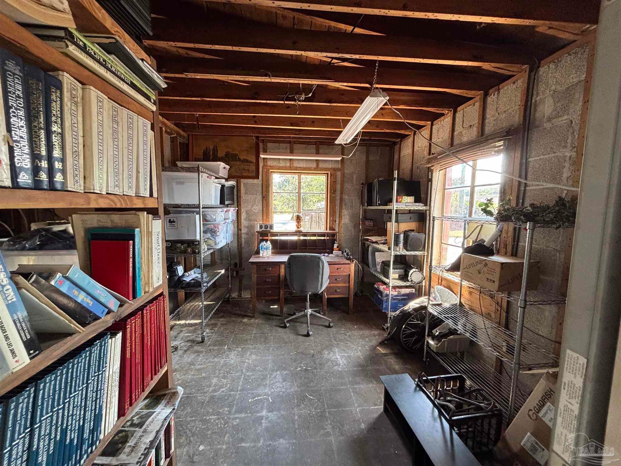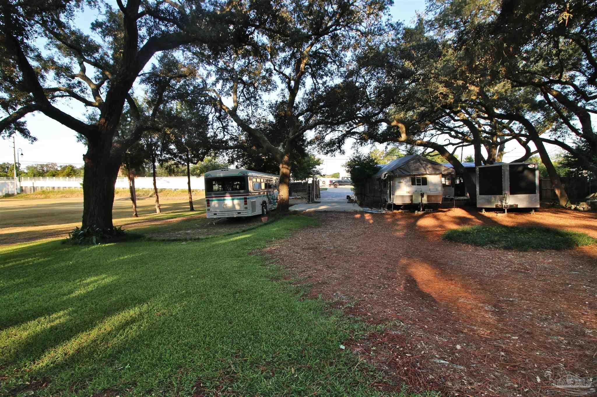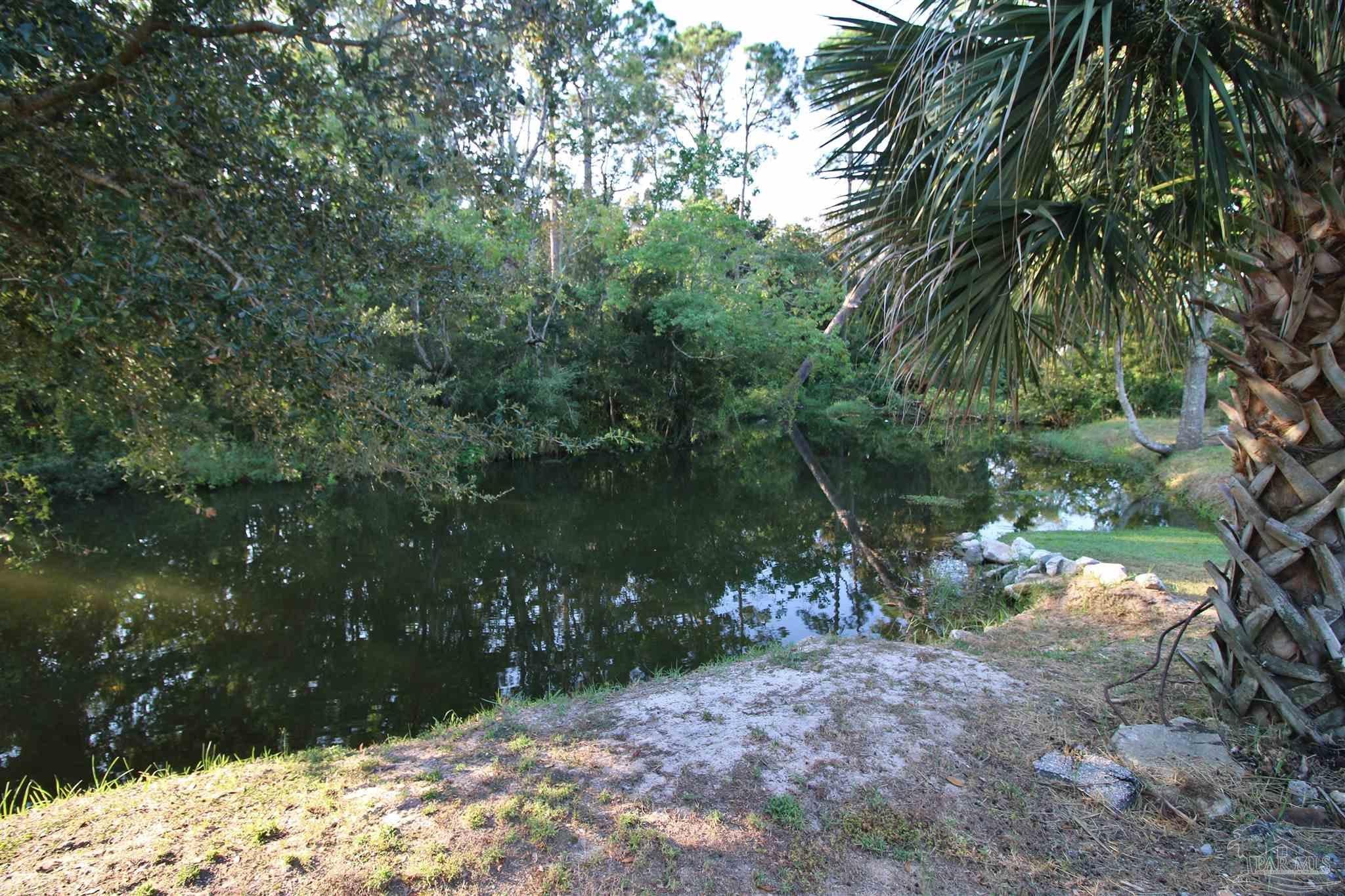 Wow Factor of natural beauty with unmatched waterfront - bring your fishing poles or boats! Amazing large waterfront property with spectacular water views conveniently accessible to all in downtown and west Pensacola! Current 45x27 cinder block house under wonderful Live Oaks has lots of potential and is currently used as a workshop. A builders delight with a 3/1 initial design and approximately 1000 sqft under current roof. Garage door in main building allowed 3 cars inside and was previously a specialty car shop. Old adjacent garage removed from the original 1459 sqft and can add back even more space over old garage floor as well as an additional large concrete pad behind. Interior walls are to the studs for remodel ease. Roof will need attention as it was planned to add a second story yet currently serves as a leak free shelter. Current septic system works perfectly and remote drains connectable for RV or additions. New pex water lines lead to the house as well as to an expansive addition area planned for waterview resturant usage. Zoned MDR with FLU being MU-U, that includes Commercial. Approximately 1 full acre with hundreds of feet of water frontage and spectacular water views, this prime lot has many palm trees as well as a variety of other beautiful oaks and blooming red maples. Creatively landscaped for functionality and aesthetics. Use your personal ramp to launch your boat into Jones Creek and Bayou Chico then Pensacola Bay to Gulf of America. The large Bermuda grass field is ideal for a soccer pitch or other sports and activities. Opportunities galore in a convenient, glorious park-like setting!