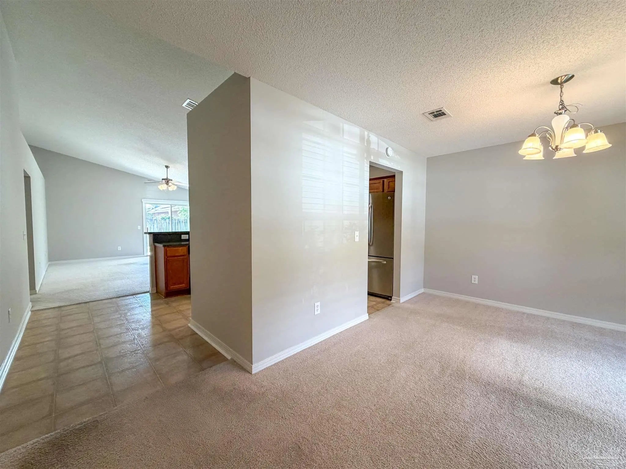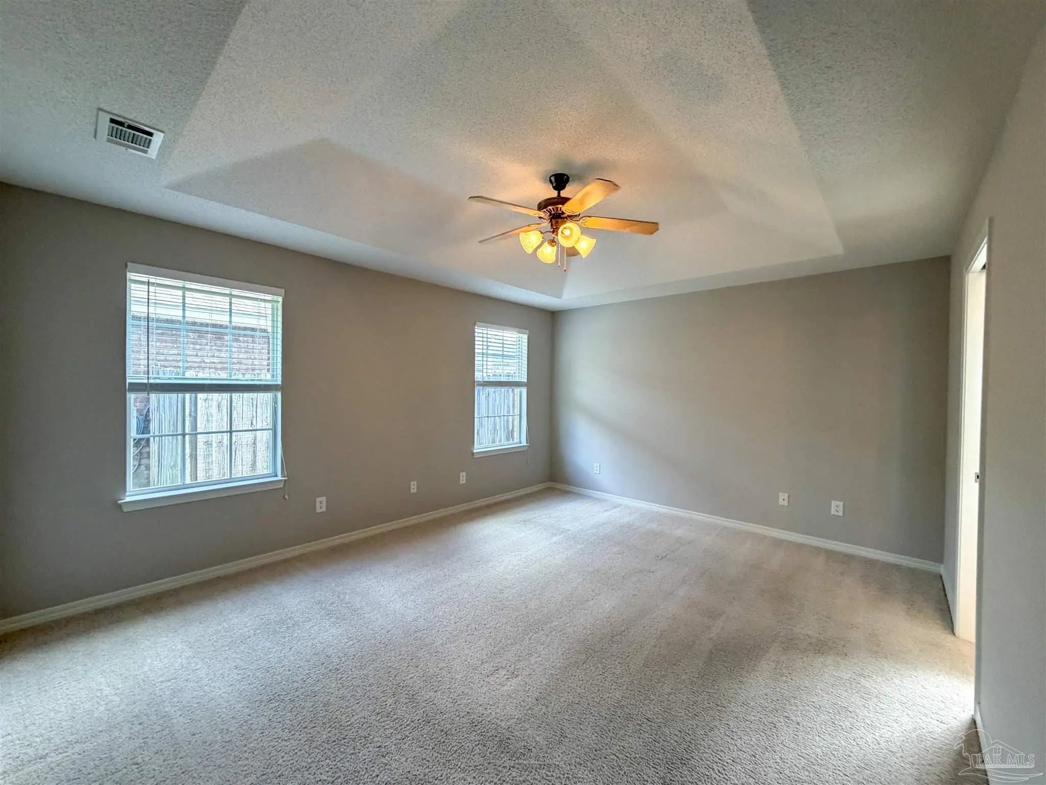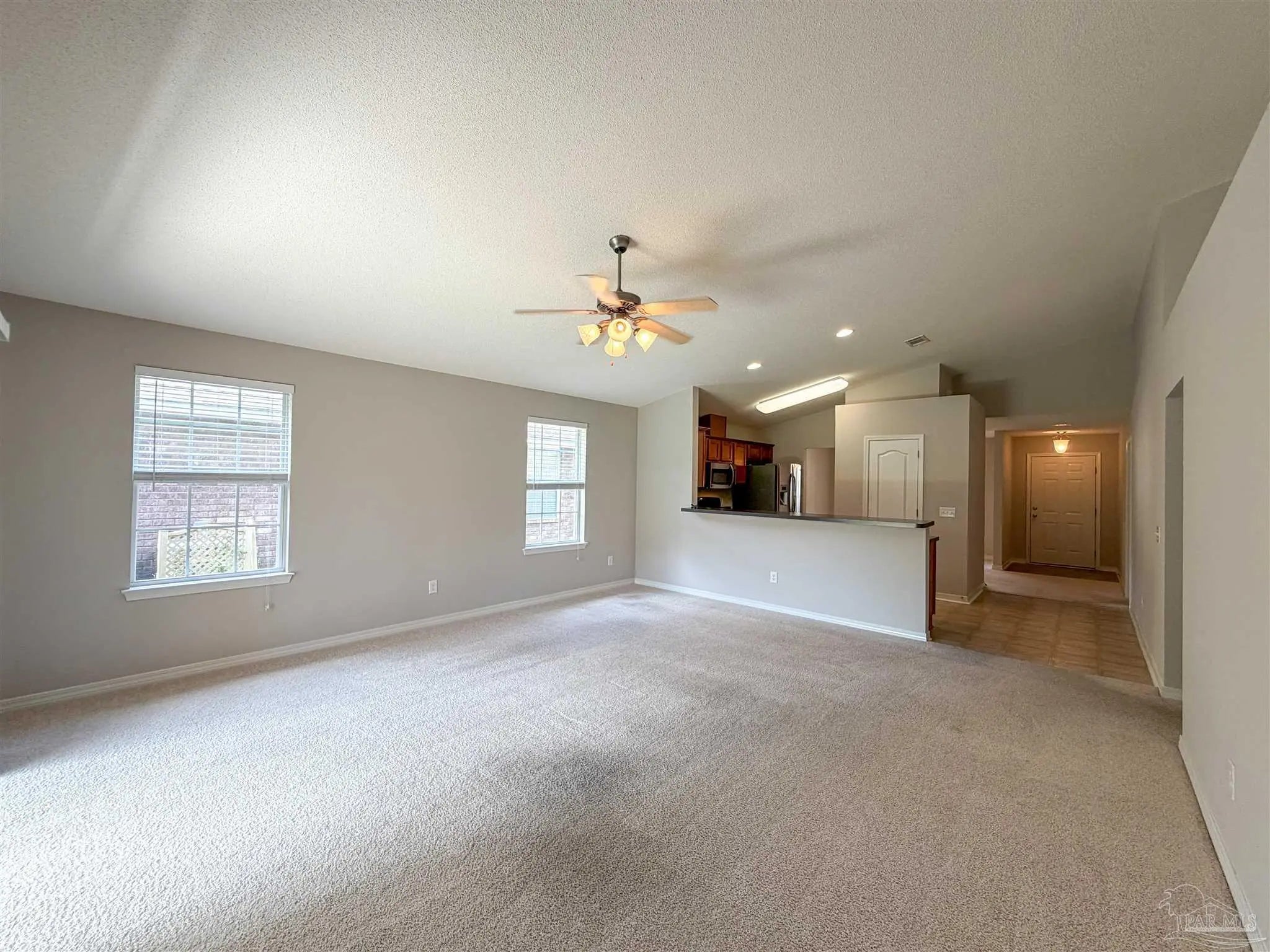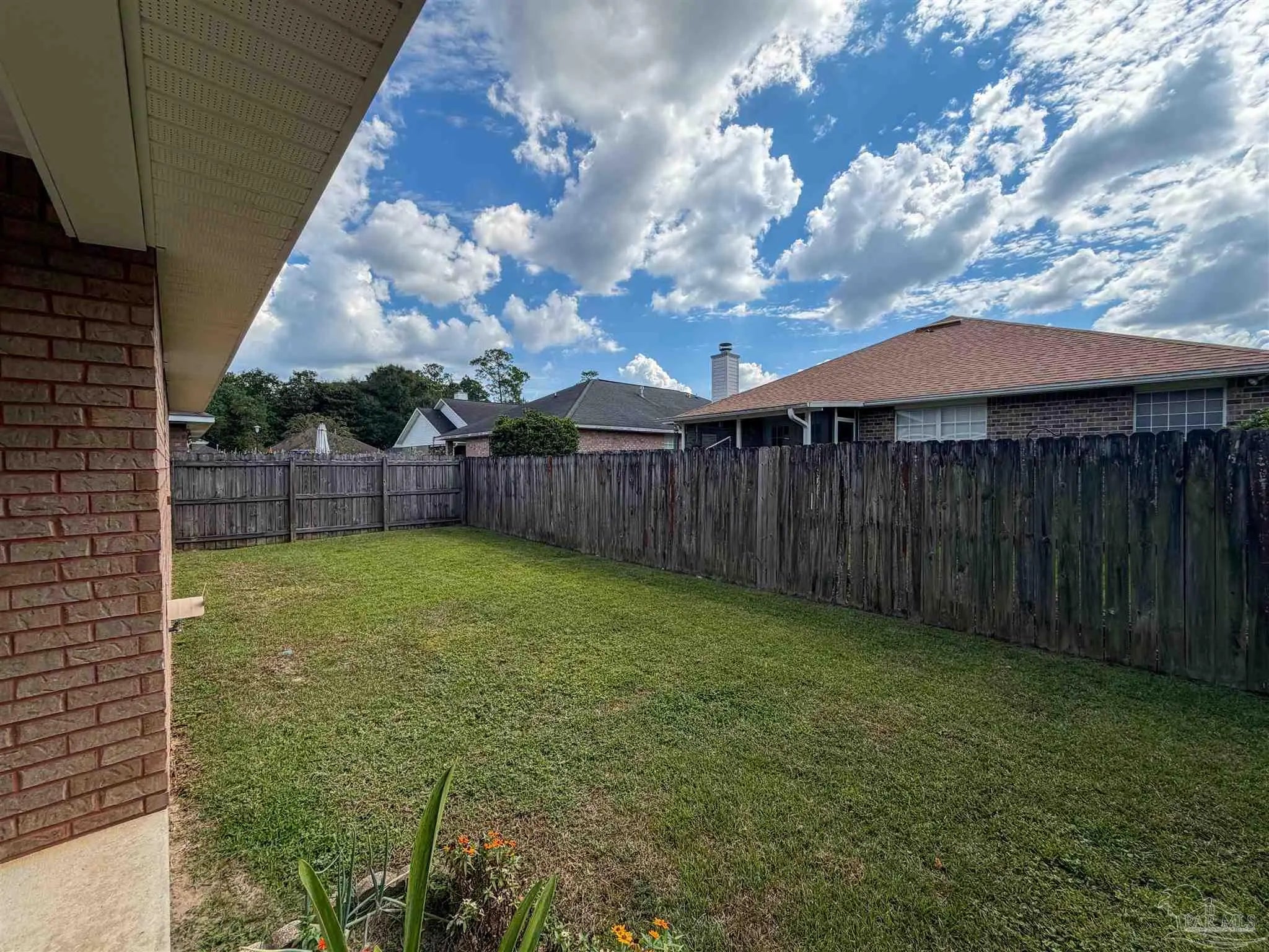 3 bedroom and 2 full bathroom long-term rental home. Vaulted ceilings in the living room with a ceiling fan, lighted plant ledge, and sliding glass doors leading to the covered back porch. Luxury vinyl plank and tile flooring in main areas with carpet in bedrooms. The kitchen features raised wood cabinets, stainless steel appliances including a three-door refrigerator, a large lighted pantry, a breakfast bar, and brushed nickel lighting. The primary bathroom includes a double vanity, garden tub, separate walk-in shower, and an acrylic block window for natural light. Large covered back porch with a privacy-fenced yard, plus an automatic two-car garage for convenience. All Hometown Properties of the Gulf Coast residents are enrolled in the Resident Benefits Package (RBP) for $50.00/month, which includes liability insurance, credit building to help boost the resident's credit score with timely rent payments, up to $1M Identity Theft Protection, HVAC air filter delivery (for applicable properties), our best-in-class resident rewards program, on-demand pest control, and much more! More details upon application.