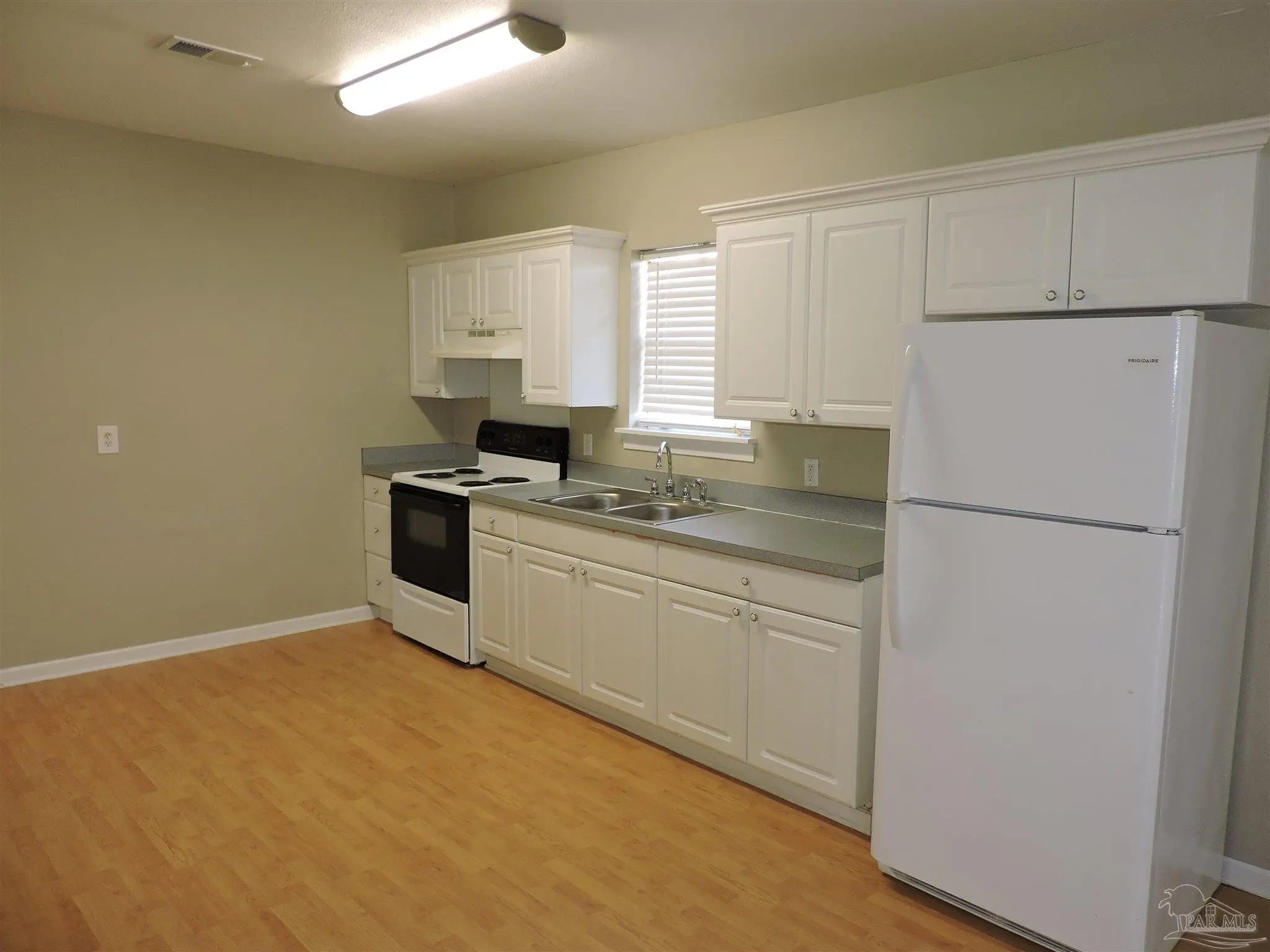 Convenient to downtown Pensacola & bases! Living room open to kitchen/dining area & has laminate flooring. New wood-look vinyl plank flooring in bedrooms. Inside laundry with washer & dryer (as is - no warranty). Gas heat & hot water. Ceiling fans in both bedrooms. Small dog considered with owner approval.