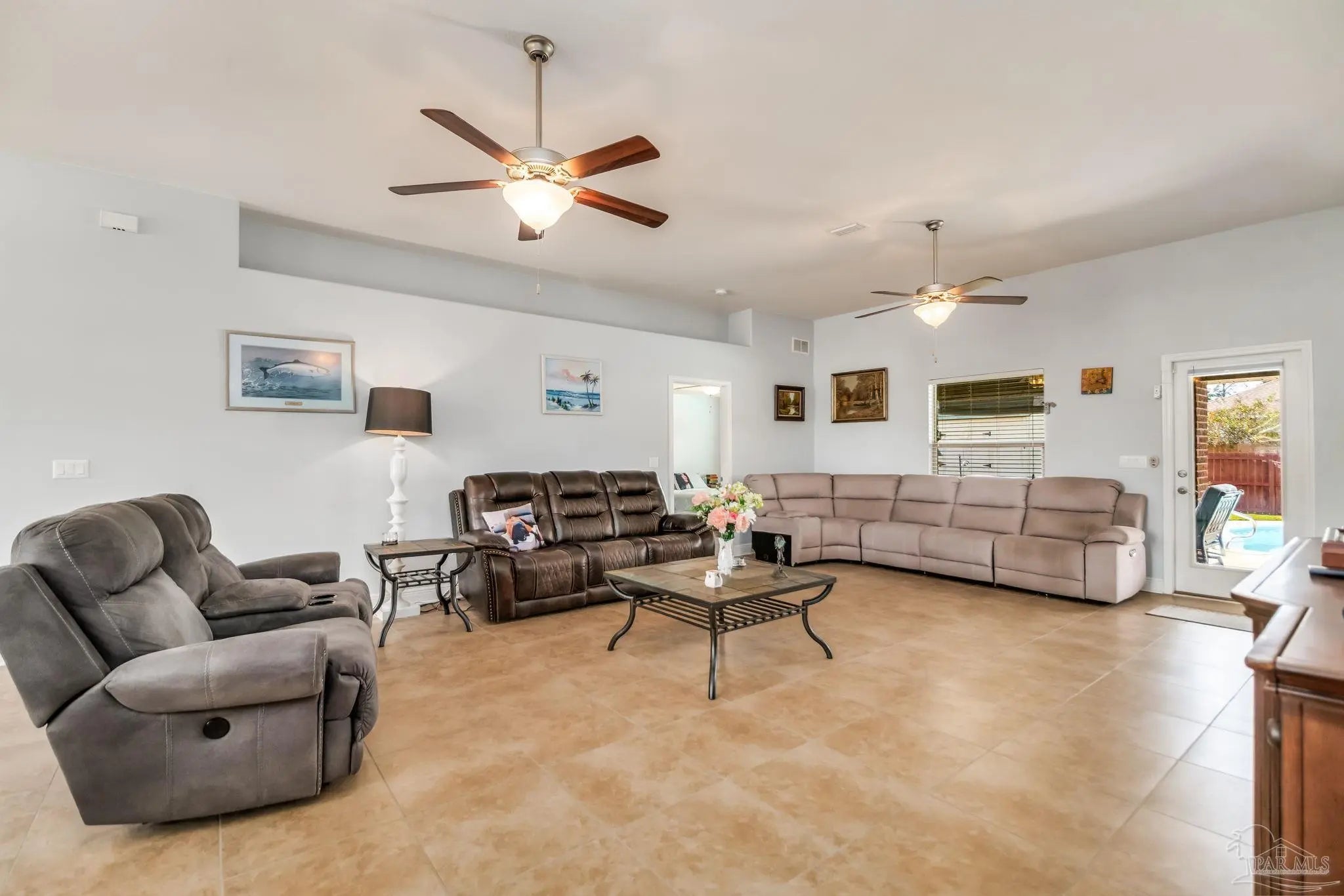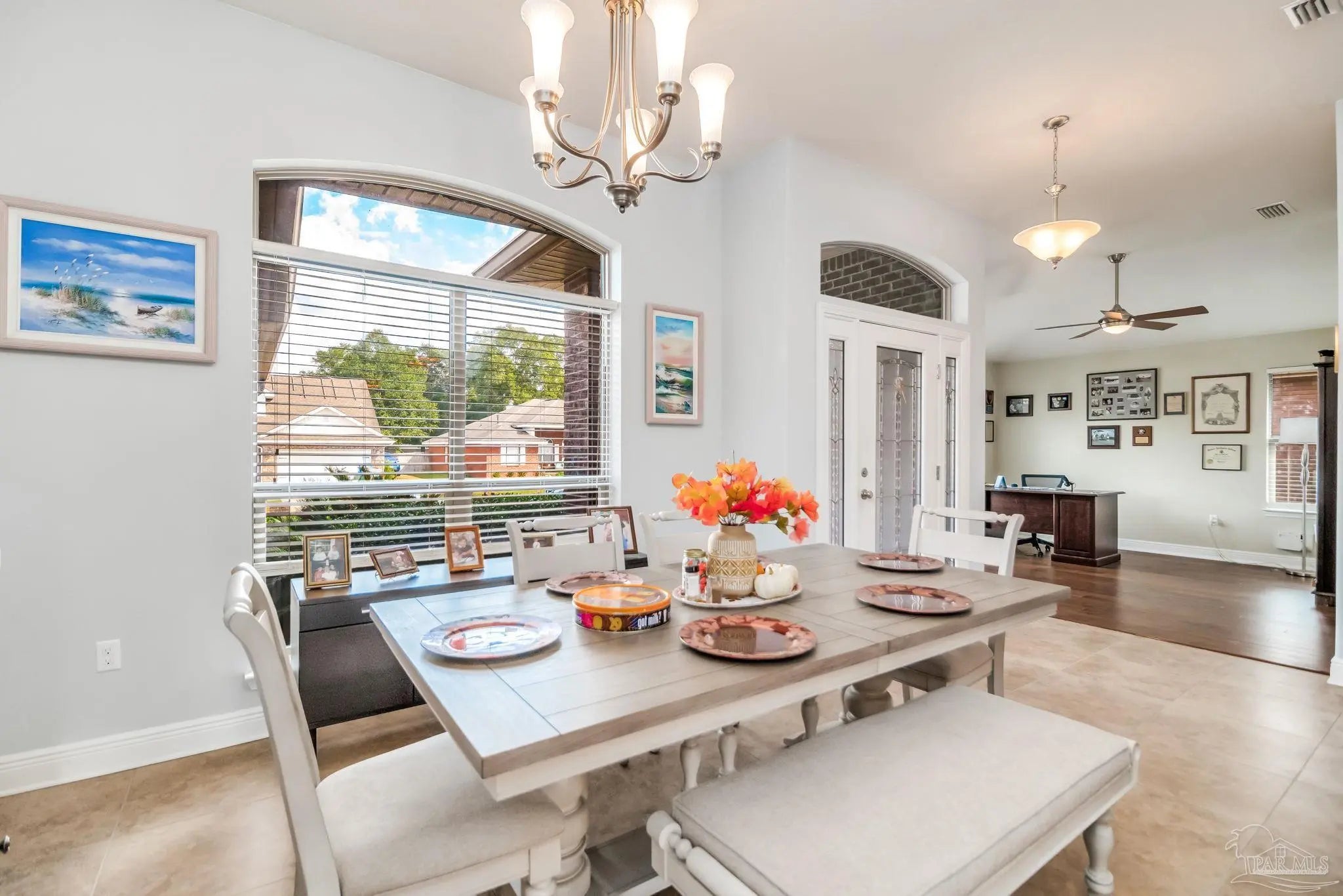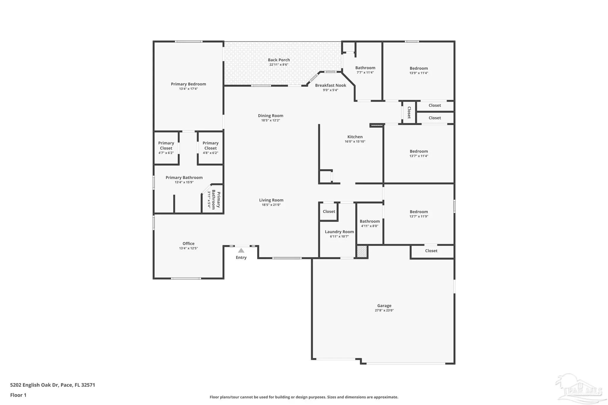 HEATED POOL • 3-CAR GARAGE • UPDATED THROUGHOUT • DUAL PRIMARY SUITES This beautifully updated four-sided brick ranch in the heart of Pace is the one you’ve been waiting for. Featuring 4 bedrooms, 3 full baths, a heated pool, and a 3-car garage, this home blends comfort, style, and function in one perfect package. Step inside to an open floor plan filled with natural light. To your left, a versatile flex space offers the ideal spot for a home office, playroom, or library—showcasing rich Hickory engineered hardwood flooring. The kitchen is a showstopper with light quartz countertops, an updated tile backsplash, gas range with double oven, and a spacious island perfect for meal prep or casual dining. Enjoy stainless-steel appliances, including a newer dishwasher. The guest bedrooms feature upgraded bamboo flooring, and one includes a private en-suite bath—perfect for extended family or growing teens. The primary suite impresses with tray ceilings and two oversized walk-in closets, providing abundant storage for both wardrobes. Step outside from the living room, primary suite, or guest bath onto the covered lanai overlooking the manicured, fenced backyard and sparkling heated pool. Swim nearly year-round with a pool heater that maintains water temperatures up to 10 degrees above ambient weather. Both front and back yards include an irrigation system for easy maintenance, and even the freshly painted fence adds a touch of curb appeal. Best of all, this home is energy-efficient—the paid-off solar panels keep power bills exceptionally low. Meticulously maintained and move-in ready, this home truly has it all. Schedule your private showing today!