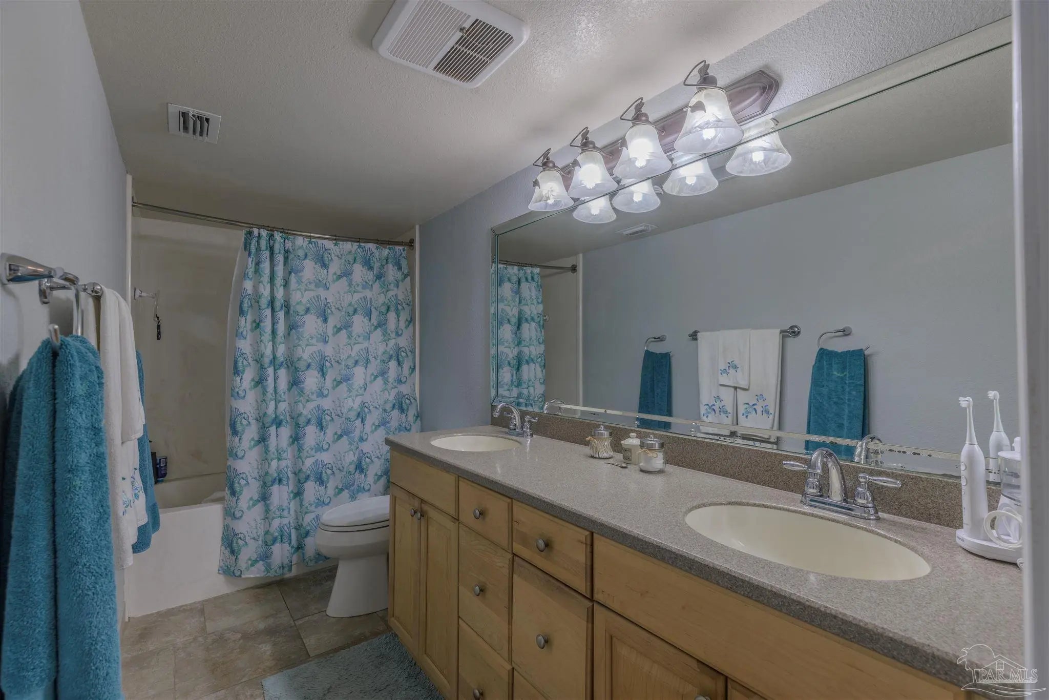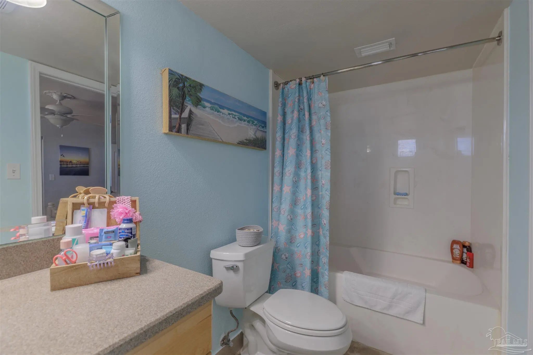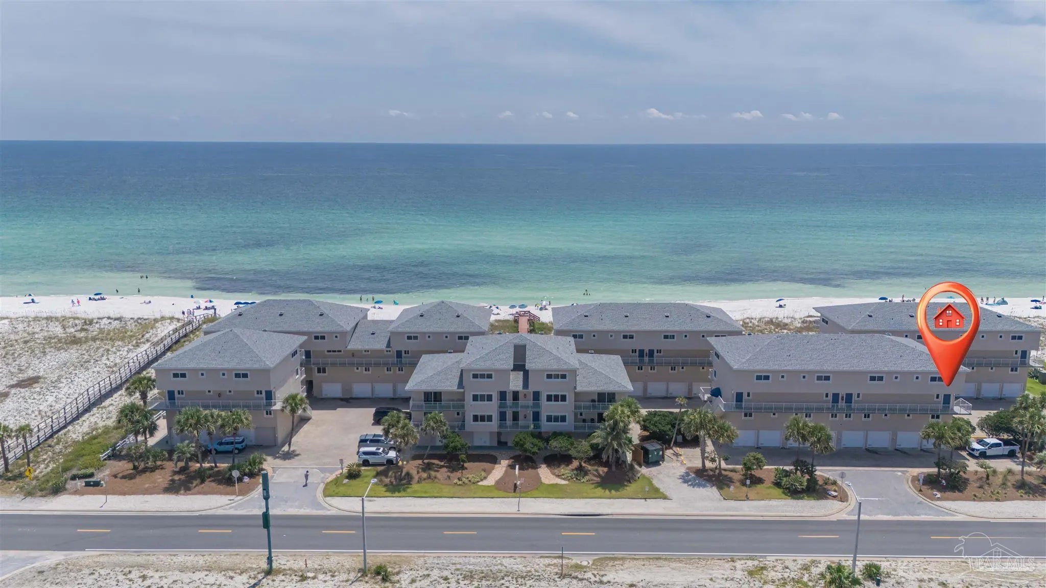 Top-floor, end-unit, two-story, beautiful beach condo with TWO one-car garages, side-by-side! This unit is close to the pool and dune crossover to the Gulf! There are Gulf views from the living room and views of Santa Rosa Sound from the guest bedroom! All floors are tile, making for easy clean-up on beach days! Rainy day? Enjoy the Gulf from the covered balcony! This unit features newer appliances, all which convey. Want to live here full time? There are TWO walk-in closets and a washer and dryer set just outside of the main bedroom! The mailbox for the unit is just below! This unit would also make a wonderful vacation rental!