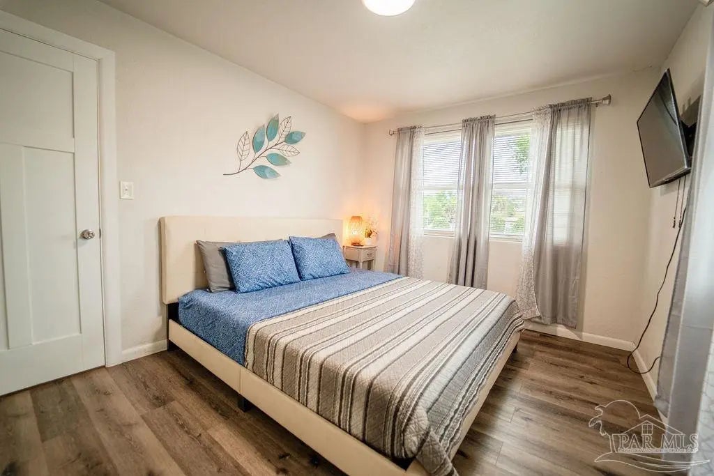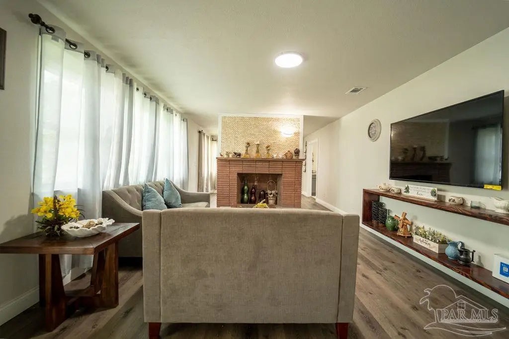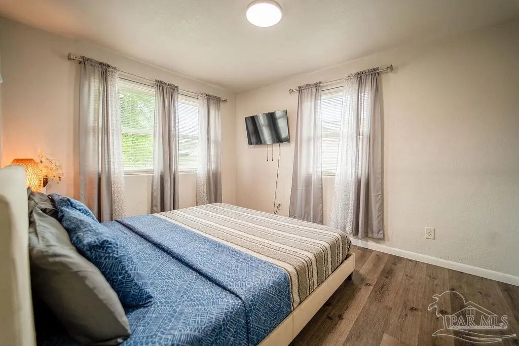 Beautifully and carefully renovated from top to bottom, this 4-bedroom, 3-bath brick home on a corner lot offers stunning front-yard views of the bayou and is just minutes from downtown Pensacola. Within walking distance to Bayou Chico and with easy access to one of the area's best boat launches, it's perfect for water enthusiasts. The open-concept layout features a modern kitchen with granite countertops, stainless-steel appliances, and ample cabinet space, flowing seamlessly into spacious living and dining areas. Luxury vinyl plank flooring runs throughout all living spaces, while custom tile enhances the kitchen and bathrooms. The bathrooms boast luxury spa-style shower systems, providing the ultimate in relaxation and comfort. Every upgrade in this home has been carefully selected with love, creating a perfect blend of style, function, and elegance. Two primary suites with private baths provide privacy and relaxation, and all furniture, appliances, and electronics convey, making this home truly move-in ready. The backyard is perfect for BBQs and entertaining friends and family, as well as enjoying sunrises, sunsets, or watching the Blue Angels fly by. Additional highlights include off-street parking and a huge neighborhood park with a playground nearby. This home perfectly combines modern luxury, thoughtful renovations, and an unbeatable location. Call today for a personal tour!