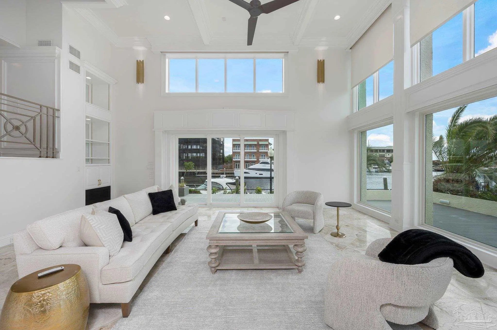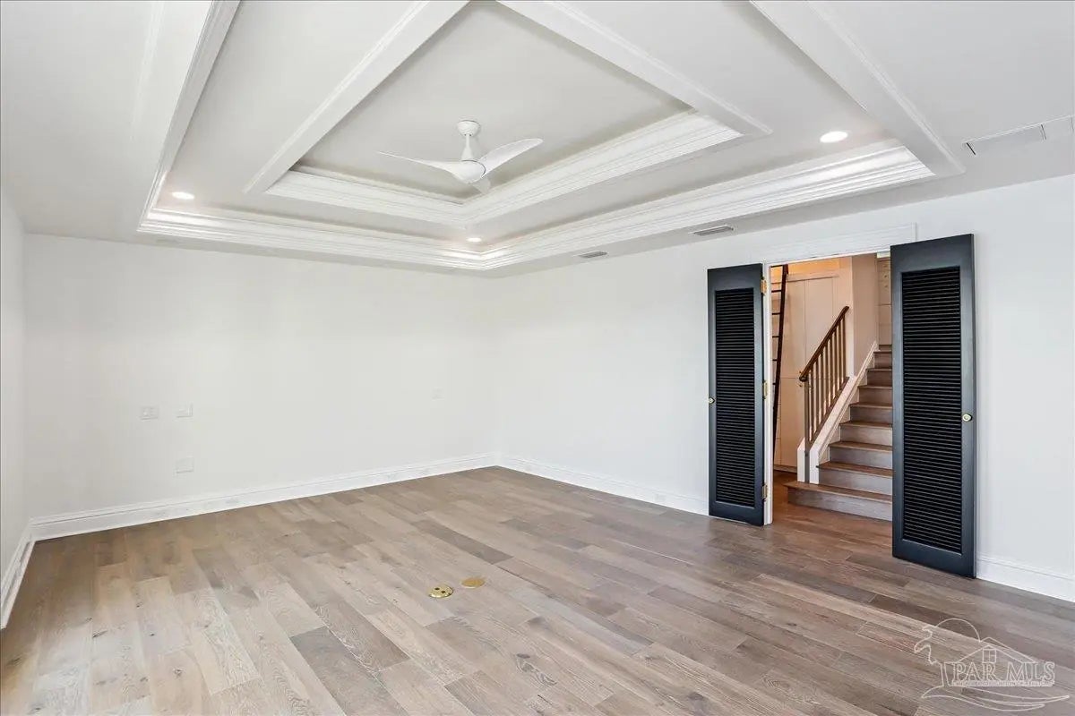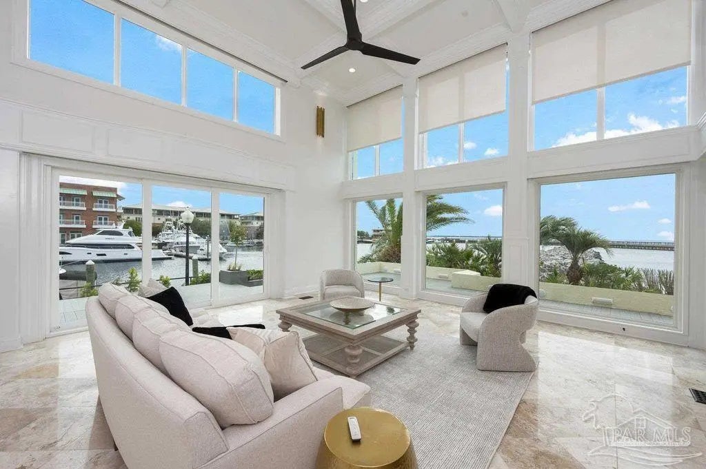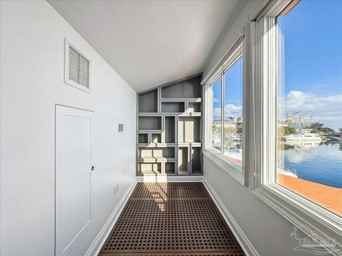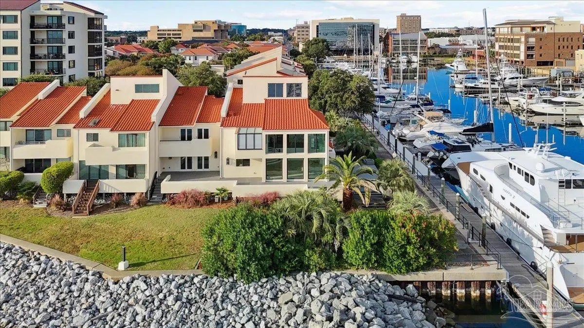 WATERFRONT LUXURY combined with the PERFECT LOCATION and unparalleled VIEWS of the Pensacola Bay are what make this impressive corner unit at Port Royal unique and one of a kind. Downtown living at its finest with access to shops, restaurants and Wahoo Stadium all within walking distance. This double unit has been completely renovated while maintaining its original charm with custom finishes and imported materials. The kitchen is a chef's dream with state of the art appliances, quartz countertops, gas range, center island and custom cabinetry. There is an additional catering kitchen that contains double ovens, dishwasher, and a full sized Sub-Zero refrigerator making this home perfect for entertaining guests. Conveniently situated between both kitchens is the formal dining room with an impressive refrigerated wine cellar with custom teak doors accessing the lanai. Off the kitchen is the grand living area with cathedral ceilings, floor to ceiling windows with breathtaking views of the Pensacola Bay and access to the lanai. The foyer is grand with custom metal railing and intricate glass French doors opening to a bonus room featuring a wet bar, ice maker, wine fridge, entertainment cabinet and even a secret door leading to a private safe. Down the hall is a powder bathroom & laundry room leading to a full bathroom and guest suite. The Master bedroom suite is located on its own private level with beautiful wood floors, balcony & custom two story closet that you have to see to believe! The Master bathroom is a sanctuary with separate vanities, dressing area, garden tub, private water closet and one of a kind marble shower with skylights overlooking the Bay. The next level features two additional guest bedrooms with full bathroom, and a bonus space accessed by a spiral staircase with stunning water views. This amazing home is complete with a spacious 3 car garage & community pool! Paradise Awaits!!
