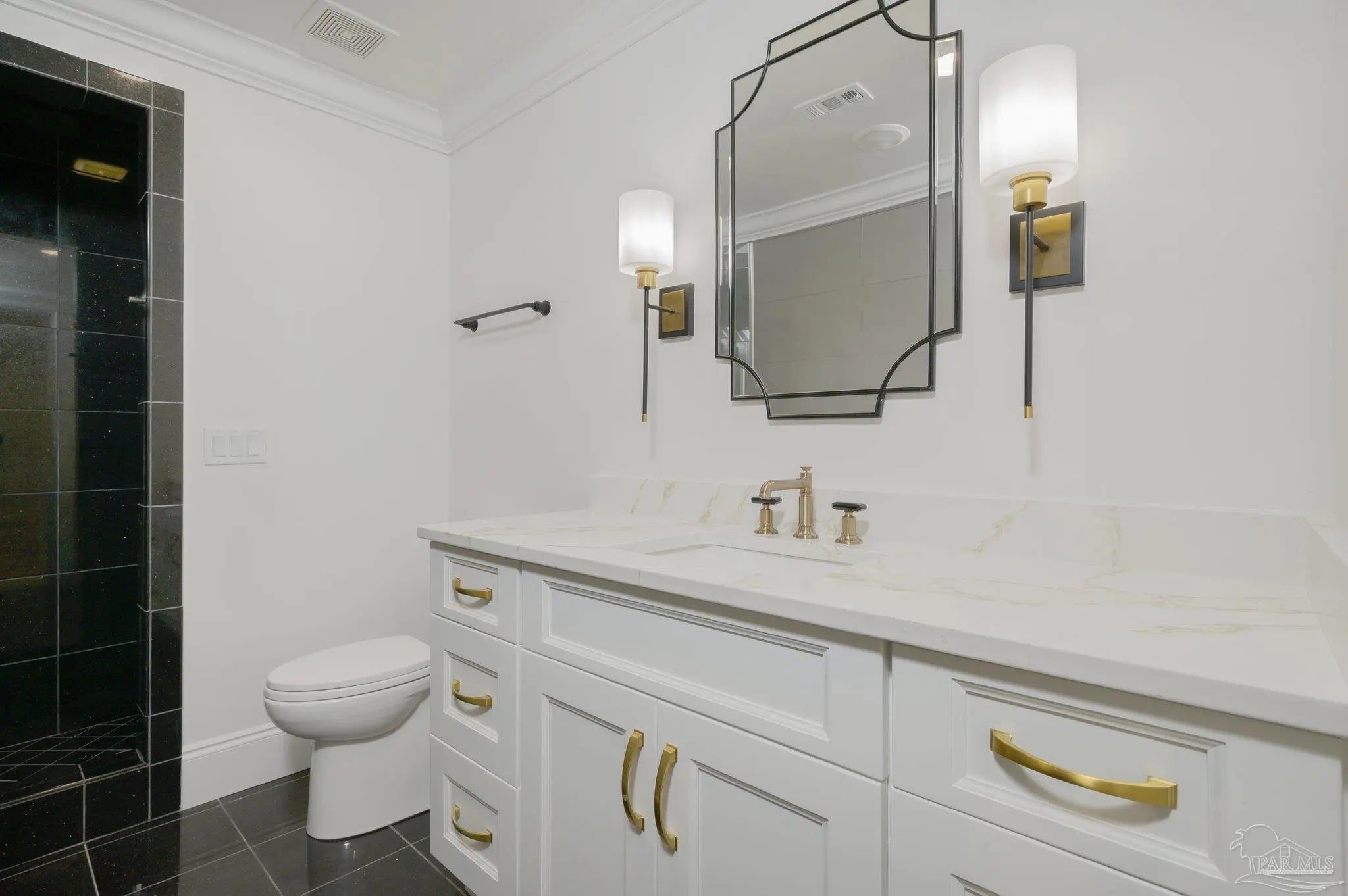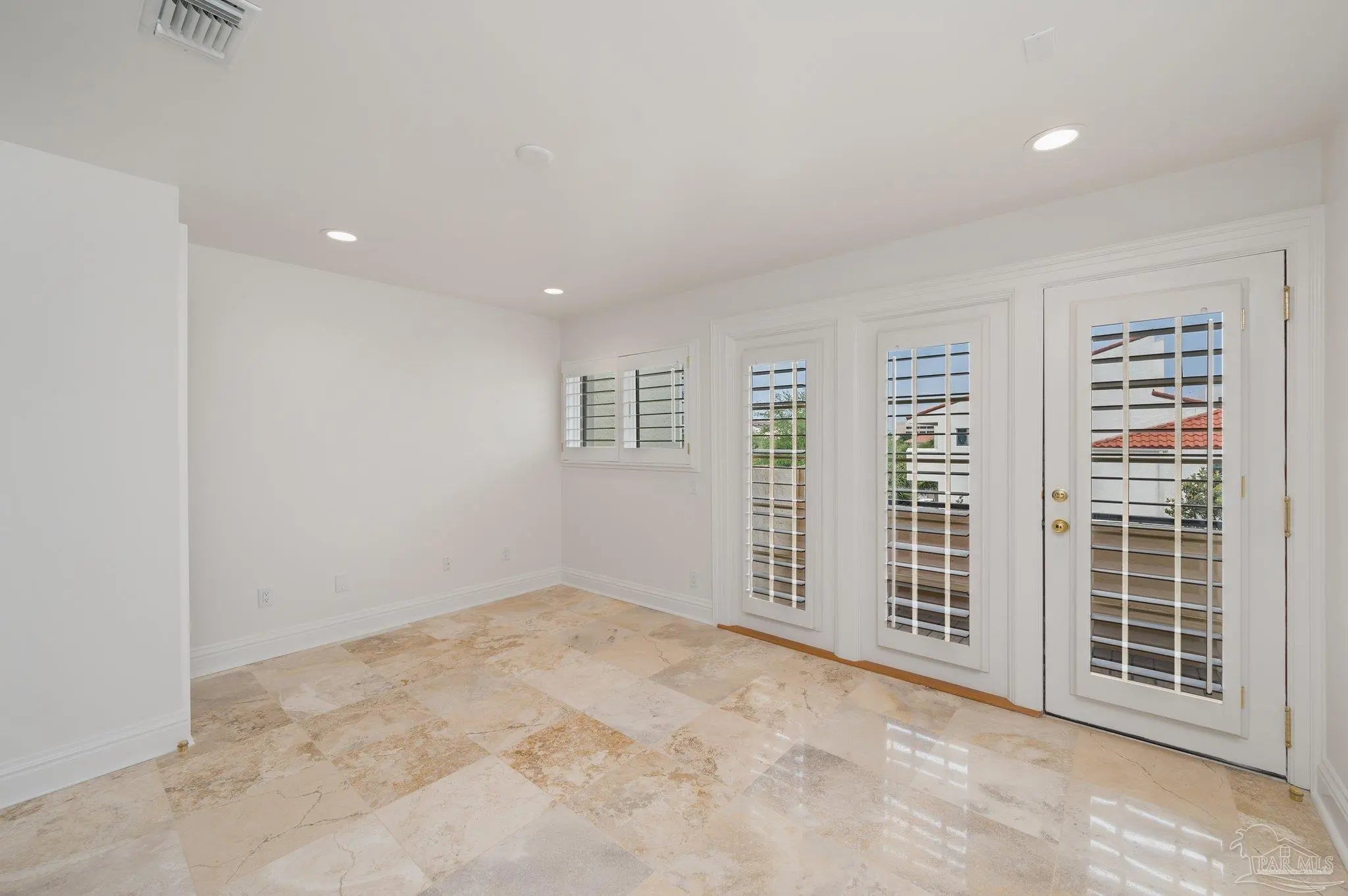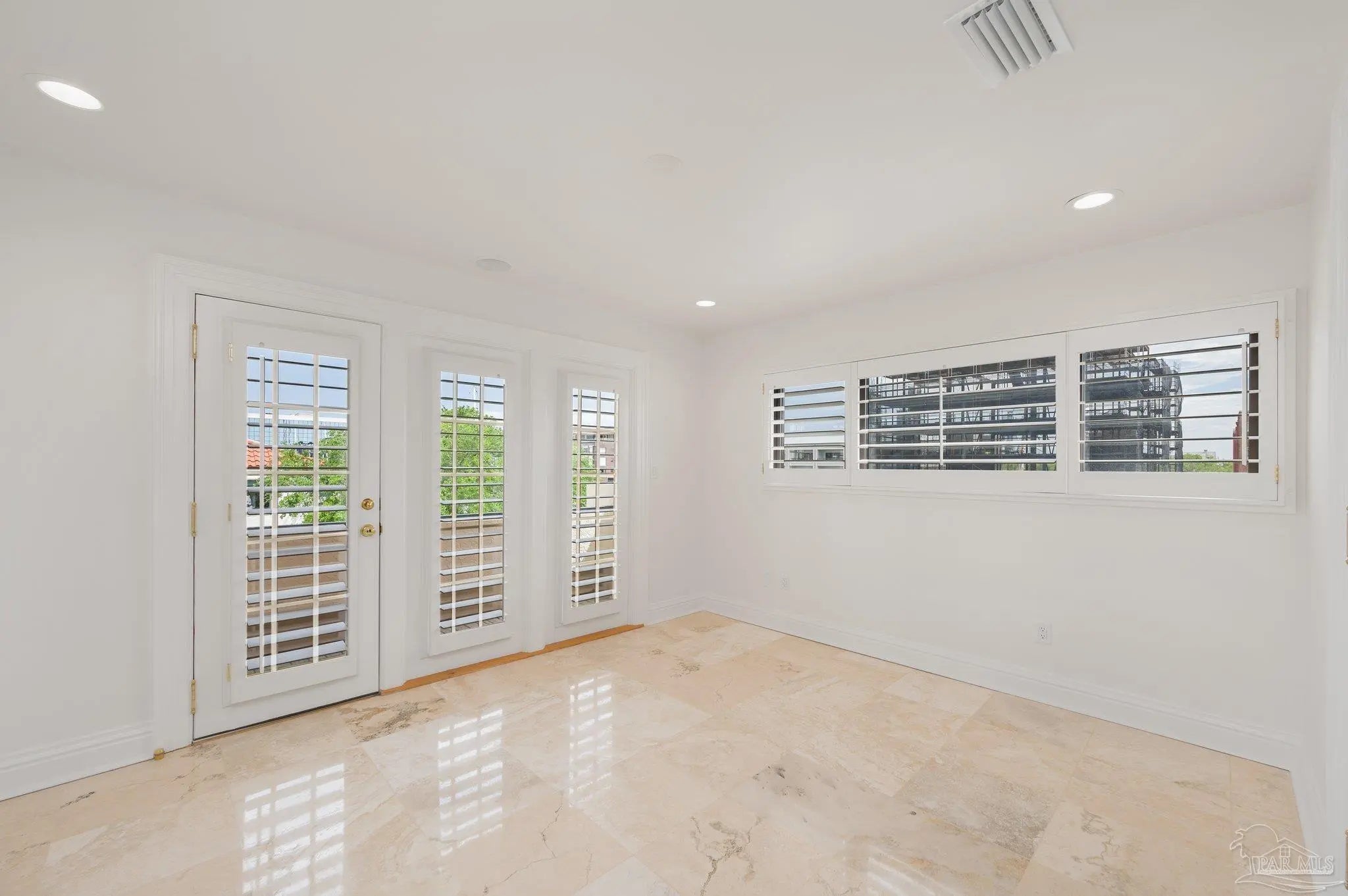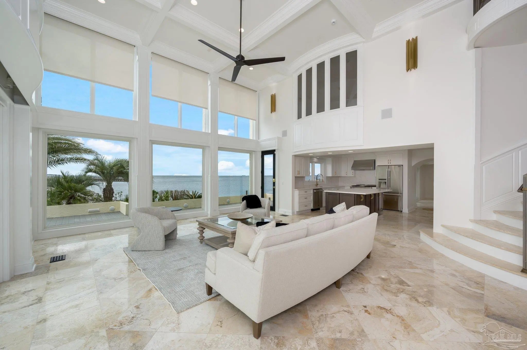 WATERFRONT LUXURY combined with the PERFECT LOCATION and unparalleled VIEWS of the Pensacola Bay are what make this impressive corner unit at Port Royal unique and one of a kind. Downtown living at its finest with access to shops, restaurants and Wahoo Stadium all within walking distance. This double unit has been completely renovated while maintaining its original charm with custom finishes and imported materials. The kitchen is a chef's dream with state of the art appliances, quartz countertops, gas range, center island and custom cabinetry. There is an additional catering kitchen that contains double ovens, dishwasher, and a full sized Sub-Zero refrigerator making this home perfect for entertaining guests. Conveniently situated between both kitchens is the formal dining room with an impressive refrigerated wine cellar with custom teak doors accessing the lanai. Off the kitchen is the grand living area with cathedral ceilings, floor to ceiling windows with breathtaking views of the Pensacola Bay and access to the lanai. The foyer is grand with custom metal railing and intricate glass French doors opening to a bonus room featuring a wet bar, ice maker, wine fridge, entertainment cabinet and even a secret door leading to a private safe. Down the hall is a powder bathroom & laundry room leading to a full bathroom and guest suite. The Master bedroom suite is located on its own private level with beautiful wood floors, balcony & custom two story closet that you have to see to believe! The Master bathroom is a sanctuary with separate vanities, dressing area, garden tub, private water closet and one of a kind marble shower with skylights overlooking the Bay. The next level features two additional guest bedrooms with full bathroom, and a bonus space accessed by a spiral staircase with stunning water views. This amazing home is complete with a spacious 3 car garage & community pool! Paradise Awaits!!