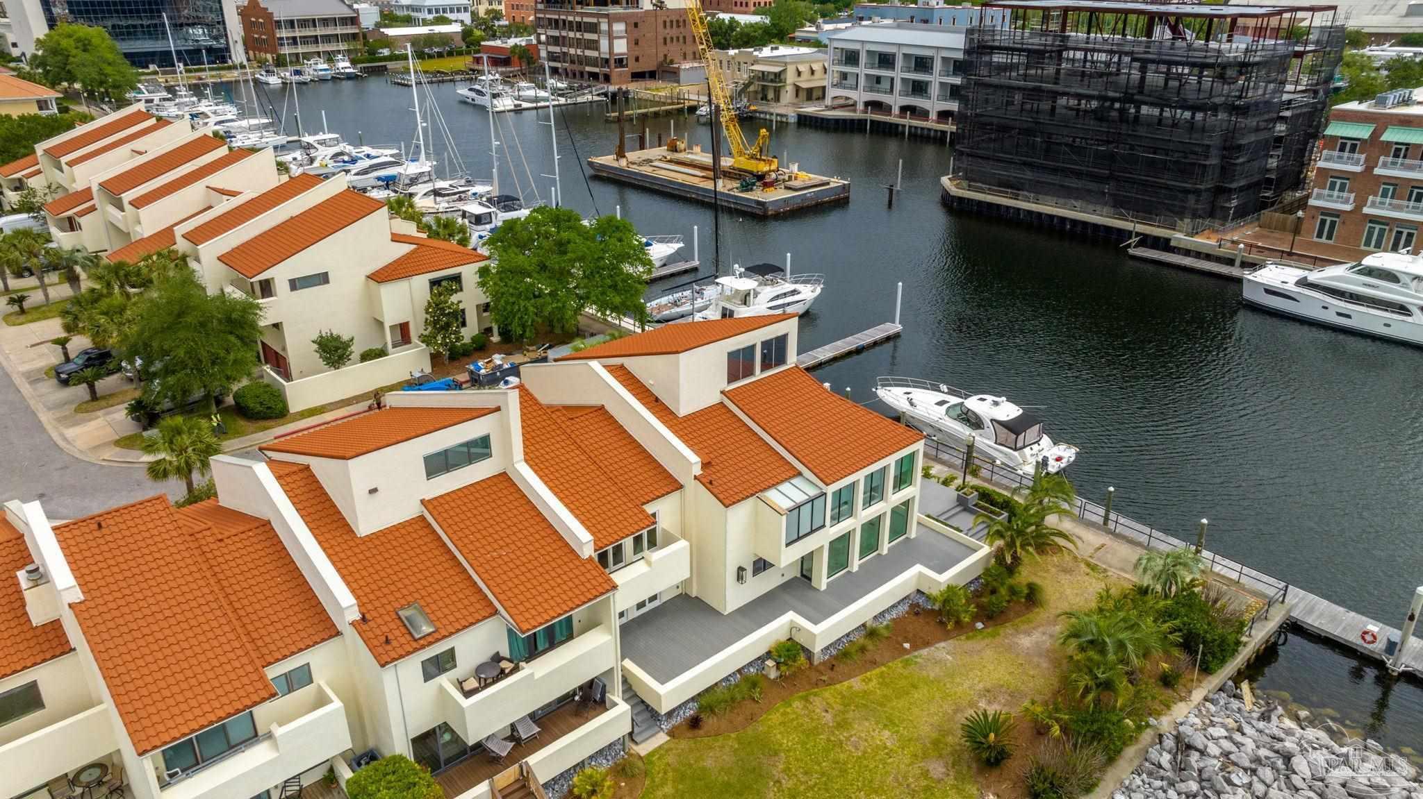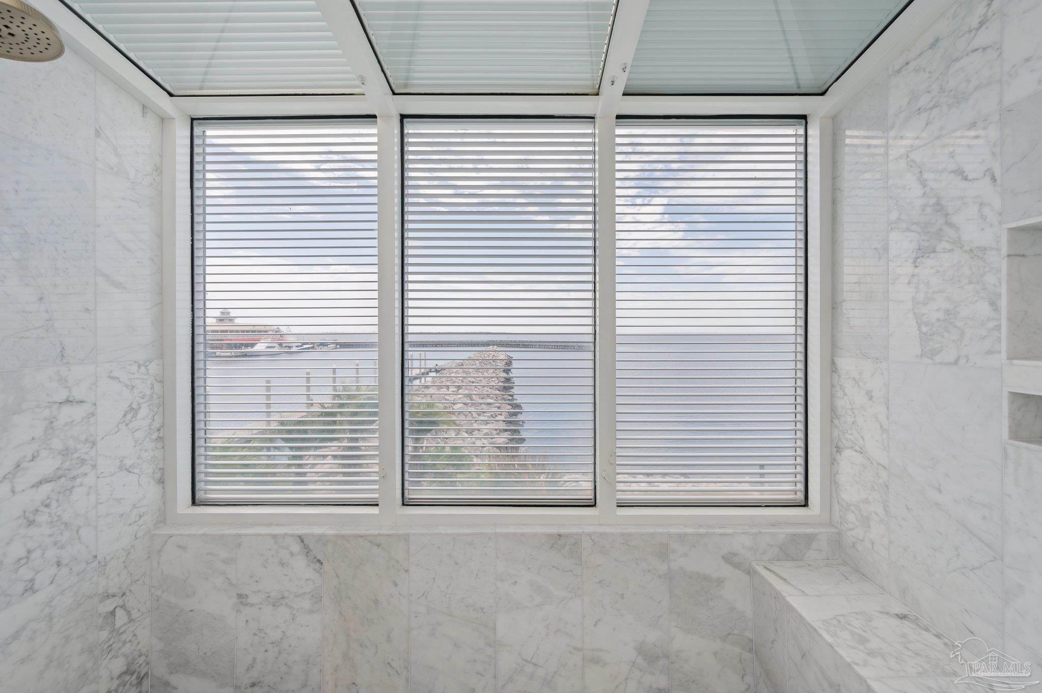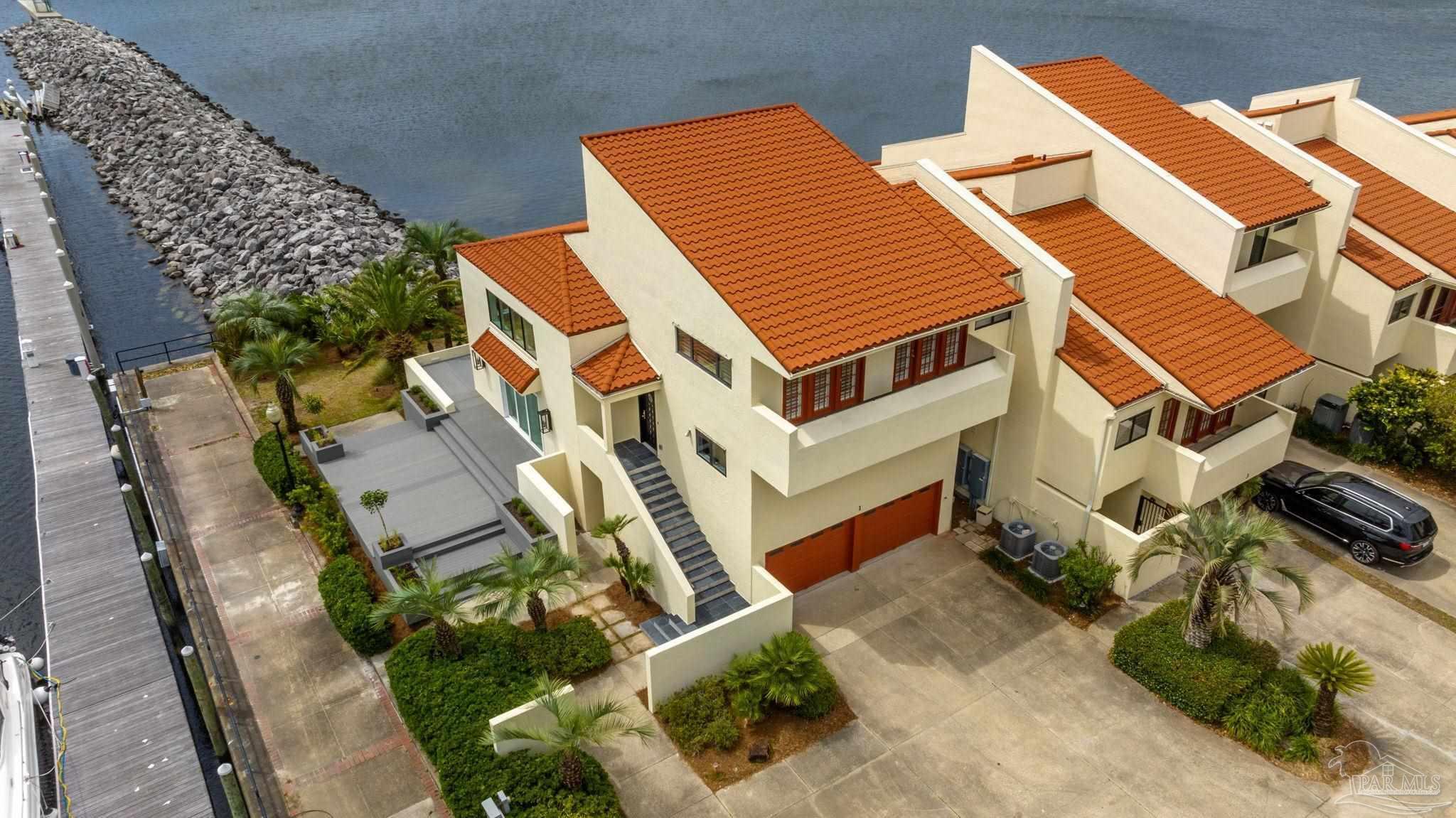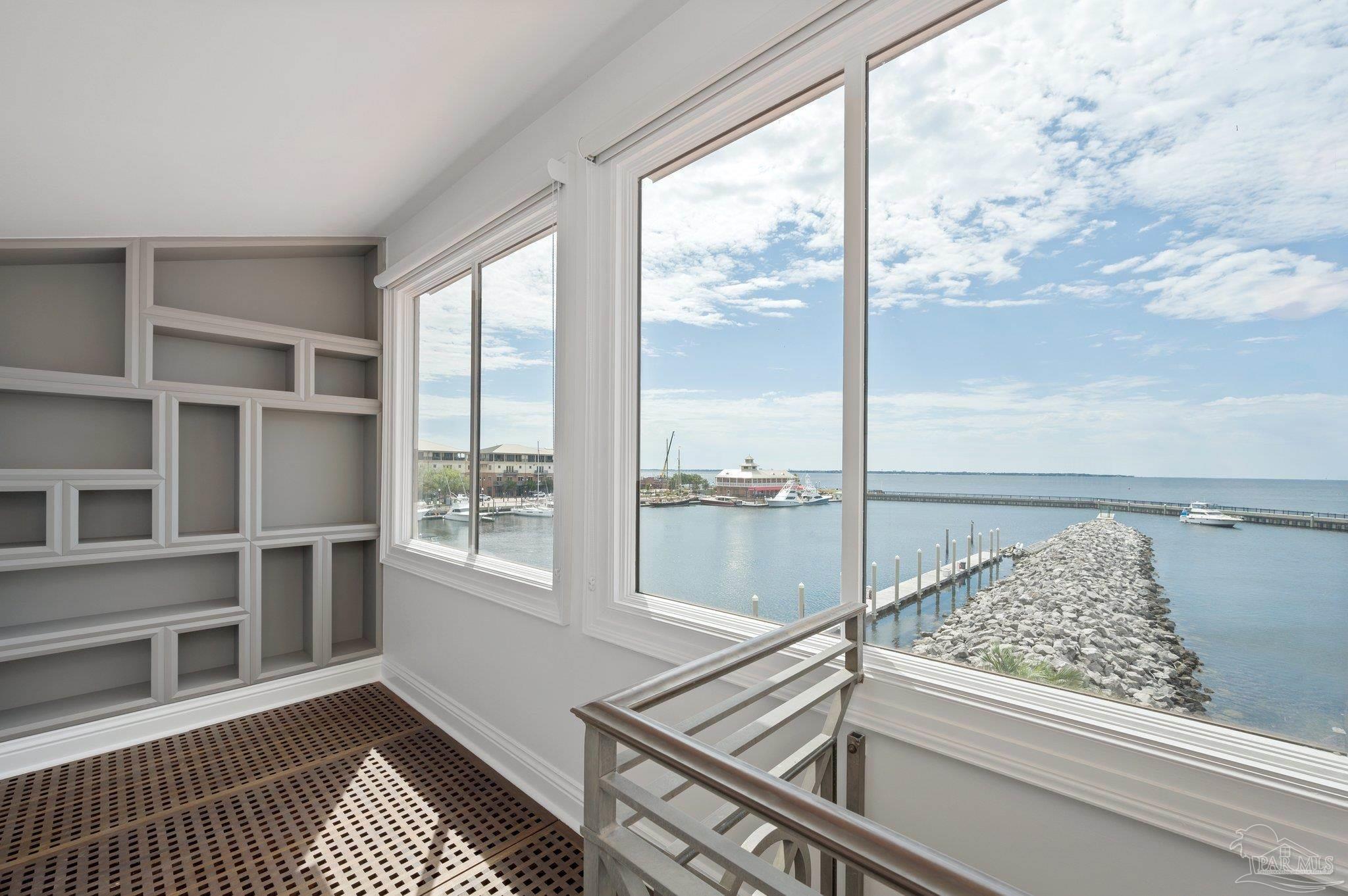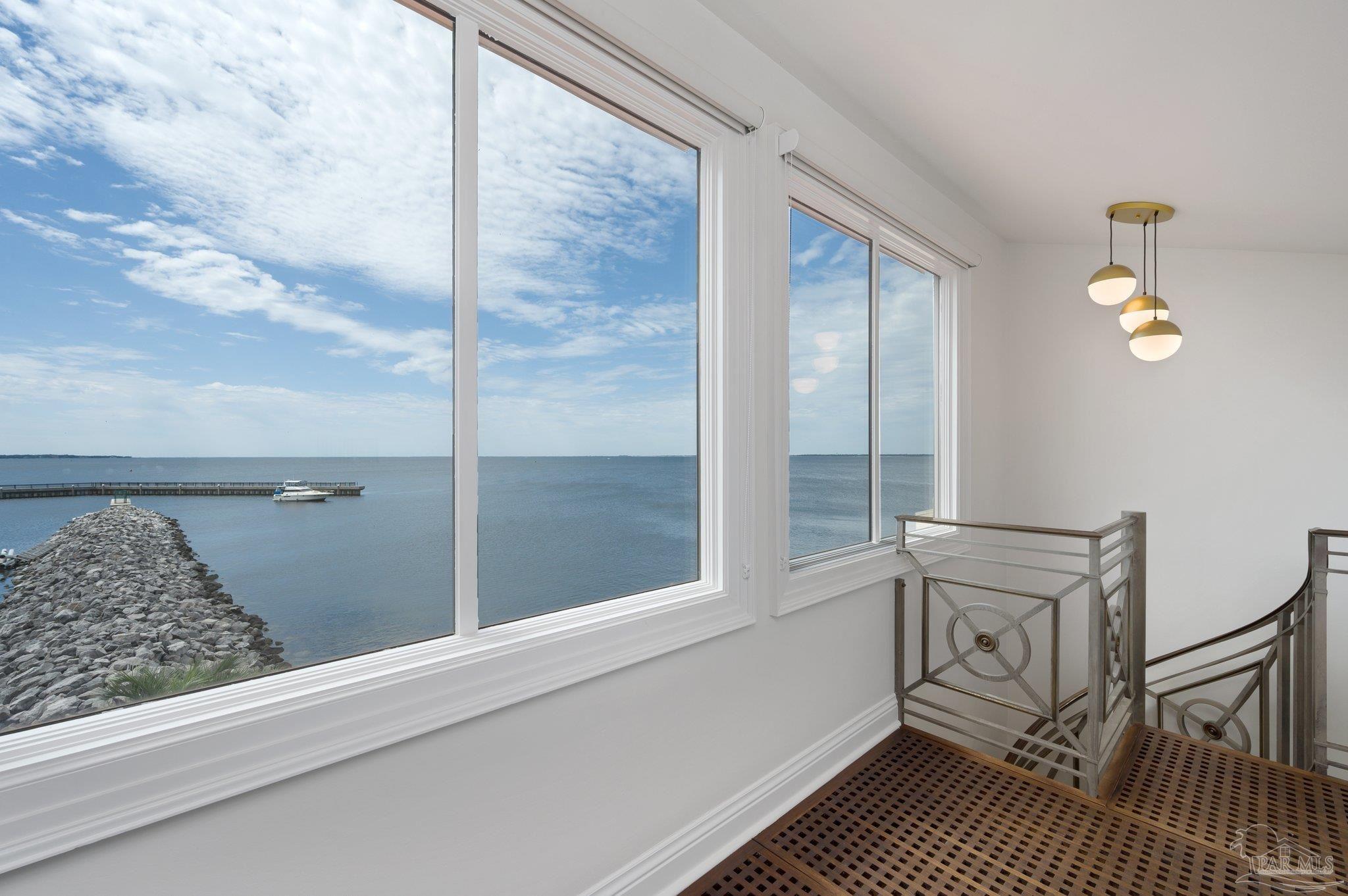 WATERFRONT LUXURY combined with the PERFECT LOCATION and unparalleled VIEWS of the Pensacola Bay are what make this impressive corner unit at Port Royal unique and one of a kind. Downtown living at its finest with access to shops, restaurants and Wahoo Stadium all within walking distance. This double unit has been completely renovated while maintaining its original charm with custom finishes and imported materials. The kitchen is a chef's dream with state of the art appliances, quartz countertops, gas range, center island and custom cabinetry. There is an additional catering kitchen that contains double ovens, dishwasher, and a full sized Sub-Zero refrigerator making this home perfect for entertaining guests. Conveniently situated between both kitchens is the formal dining room with an impressive refrigerated wine cellar with custom teak doors accessing the lanai. Off the kitchen is the grand living area with cathedral ceilings, floor to ceiling windows with breathtaking views of the Pensacola Bay and access to the lanai. The foyer is grand with custom metal railing and intricate glass French doors opening to a bonus room featuring a wet bar, ice maker, wine fridge, entertainment cabinet and even a secret door leading to a private safe. Down the hall is a powder bathroom & laundry room leading to a full bathroom and guest suite. The Master bedroom suite is located on its own private level with beautiful wood floors, balcony & custom two story closet that you have to see to believe! The Master bathroom is a sanctuary with separate vanities, dressing area, garden tub, private water closet and one of a kind marble shower with skylights overlooking the Bay. The next level features two additional guest bedrooms with full bathroom, and a bonus space accessed by a spiral staircase with stunning water views. This amazing home is complete with a spacious 3 car garage & community pool! Paradise Awaits!!