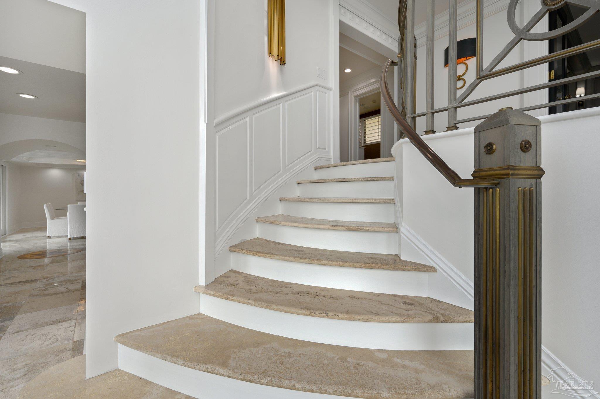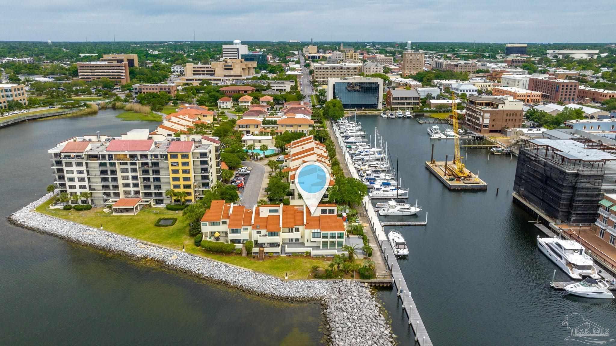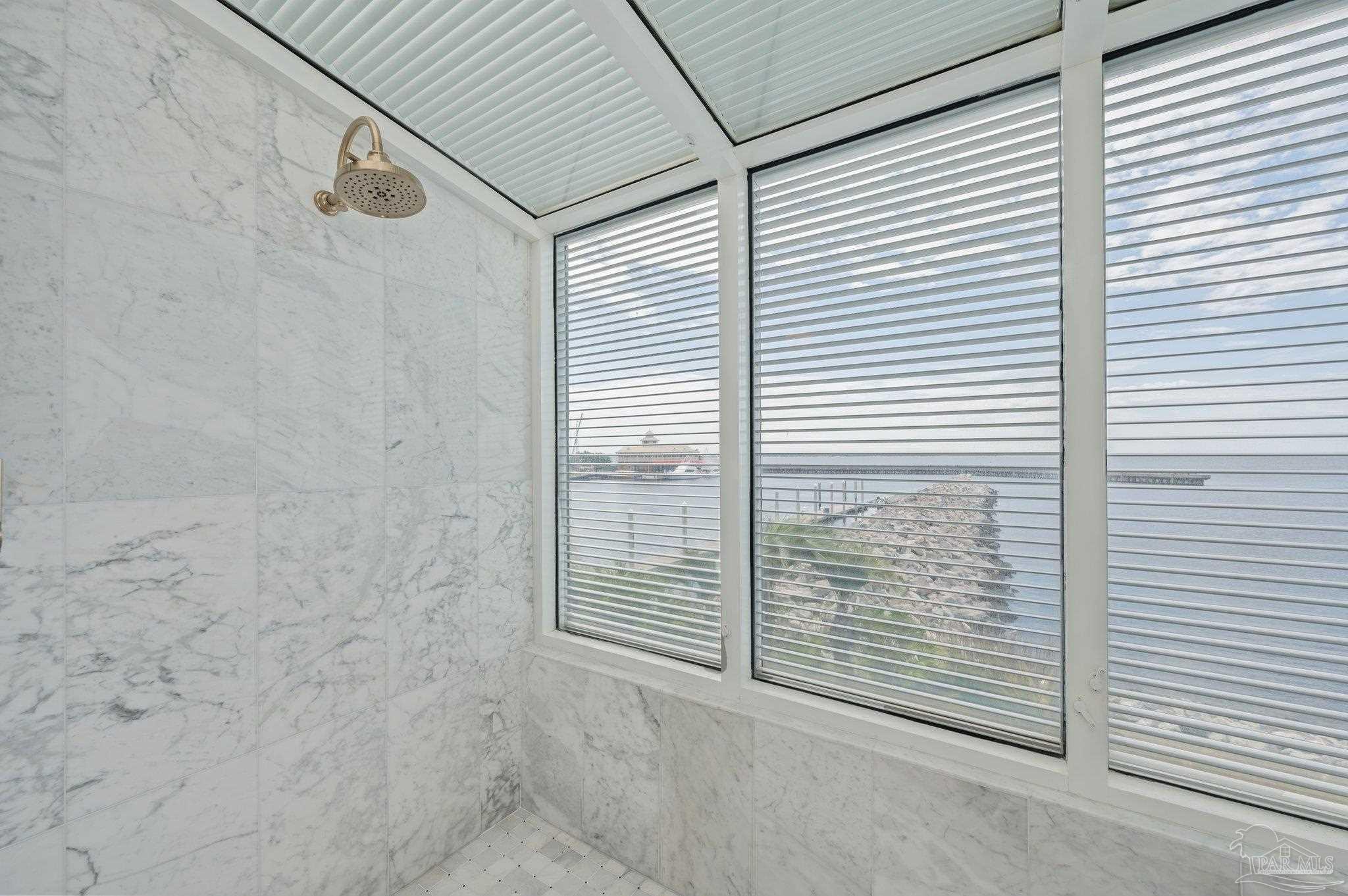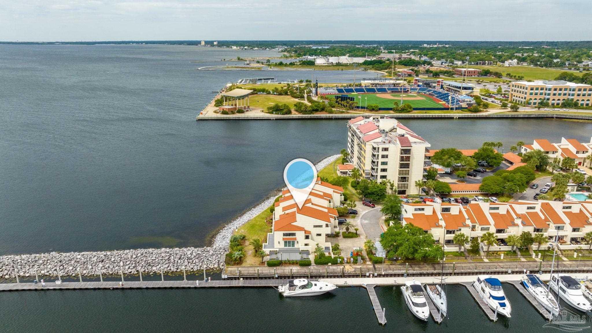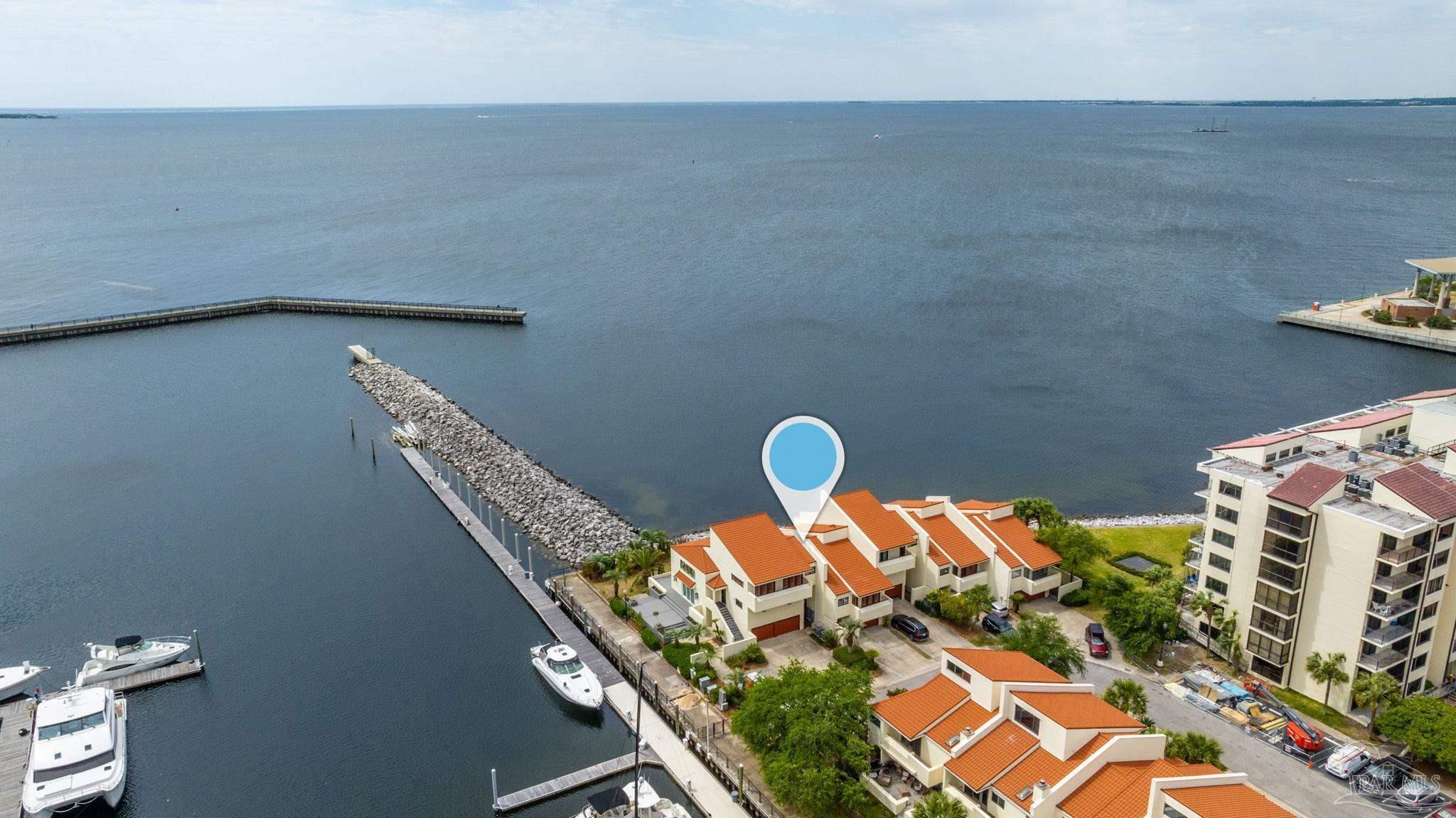 WATERFRONT LUXURY combined with the PERFECT LOCATION and unparalleled VIEWS of the Pensacola Bay are what make this impressive corner unit at Port Royal unique and one of a kind. Downtown living at its finest with access to shops, restaurants and Wahoo Stadium all within walking distance. This double unit has been completely renovated while maintaining its original charm with custom finishes and imported materials. The kitchen is a chef's dream with state of the art appliances, quartz countertops, gas range, center island and custom cabinetry. There is an additional catering kitchen that contains double ovens, dishwasher, and a full sized Sub-Zero refrigerator making this home perfect for entertaining guests. Conveniently situated between both kitchens is the formal dining room with an impressive refrigerated wine cellar with custom teak doors accessing the lanai. Off the kitchen is the grand living area with cathedral ceilings, floor to ceiling windows with breathtaking views of the Pensacola Bay and access to the lanai. The foyer is grand with custom metal railing and intricate glass French doors opening to a bonus room featuring a wet bar, ice maker, wine fridge, entertainment cabinet and even a secret door leading to a private safe. Down the hall is a powder bathroom & laundry room leading to a full bathroom and guest suite. The Master bedroom suite is located on its own private level with beautiful wood floors, balcony & custom two story closet that you have to see to believe! The Master bathroom is a sanctuary with separate vanities, dressing area, garden tub, private water closet and one of a kind marble shower with skylights overlooking the Bay. The next level features two additional guest bedrooms with full bathroom, and a bonus space accessed by a spiral staircase with stunning water views. This amazing home is complete with a spacious 3 car garage & community pool! Paradise Awaits!!