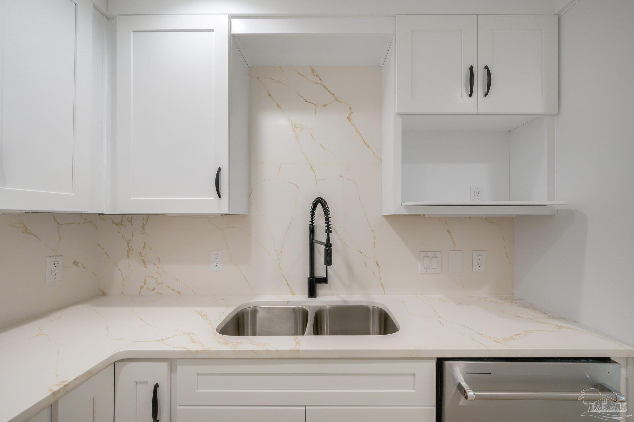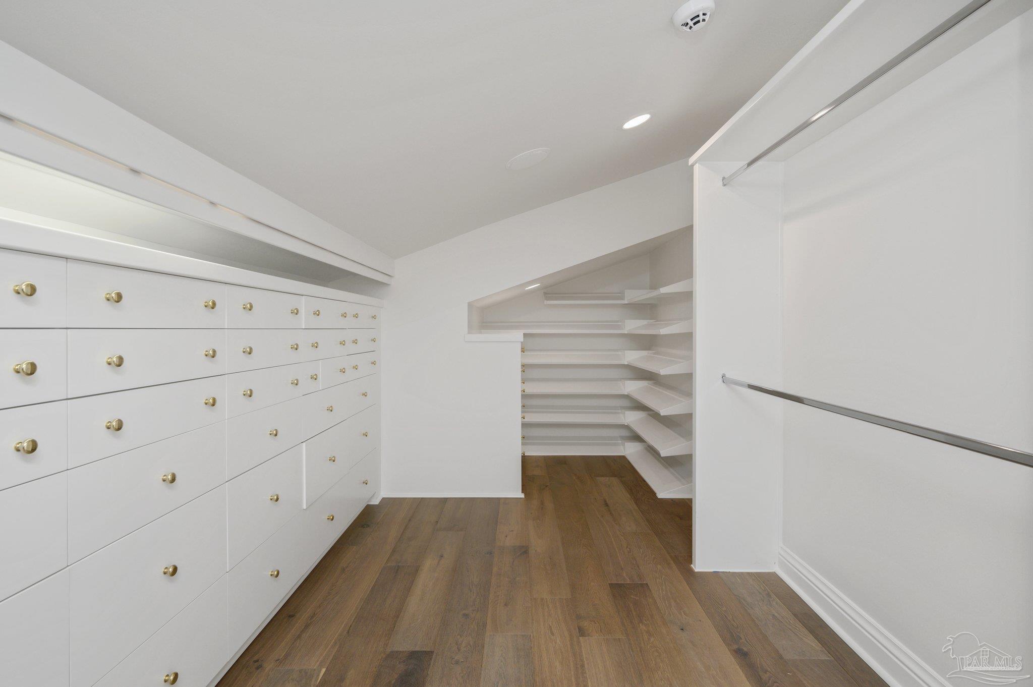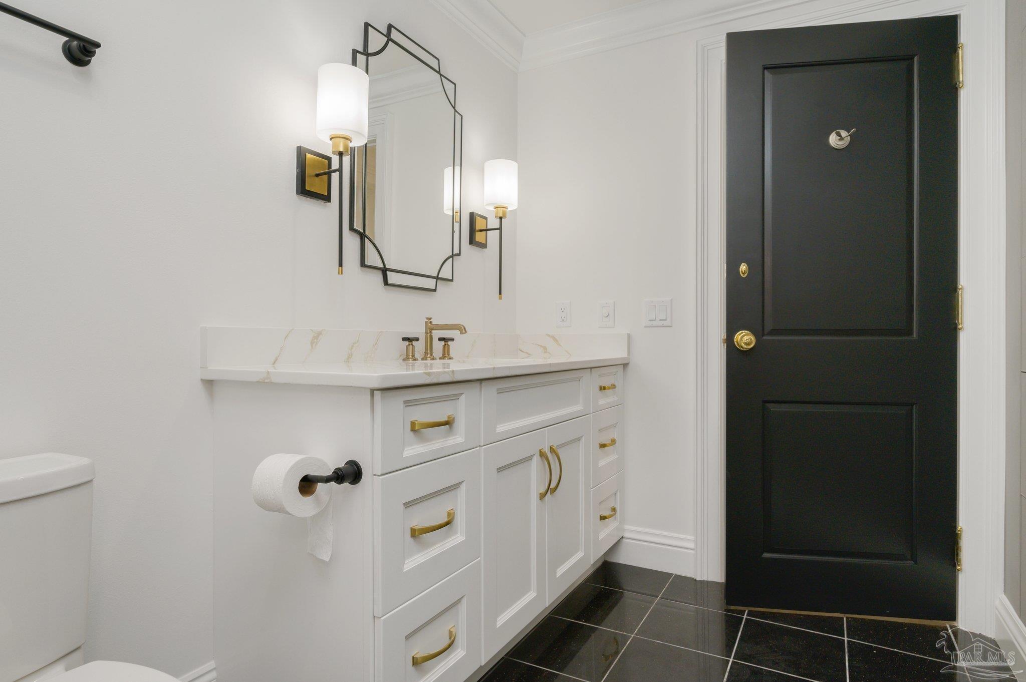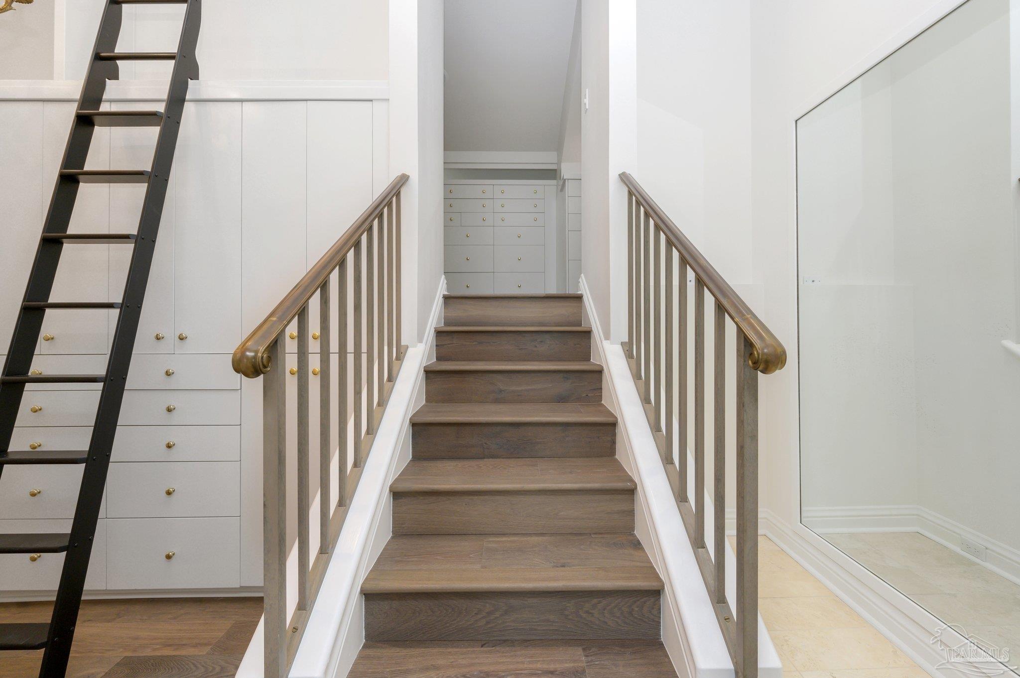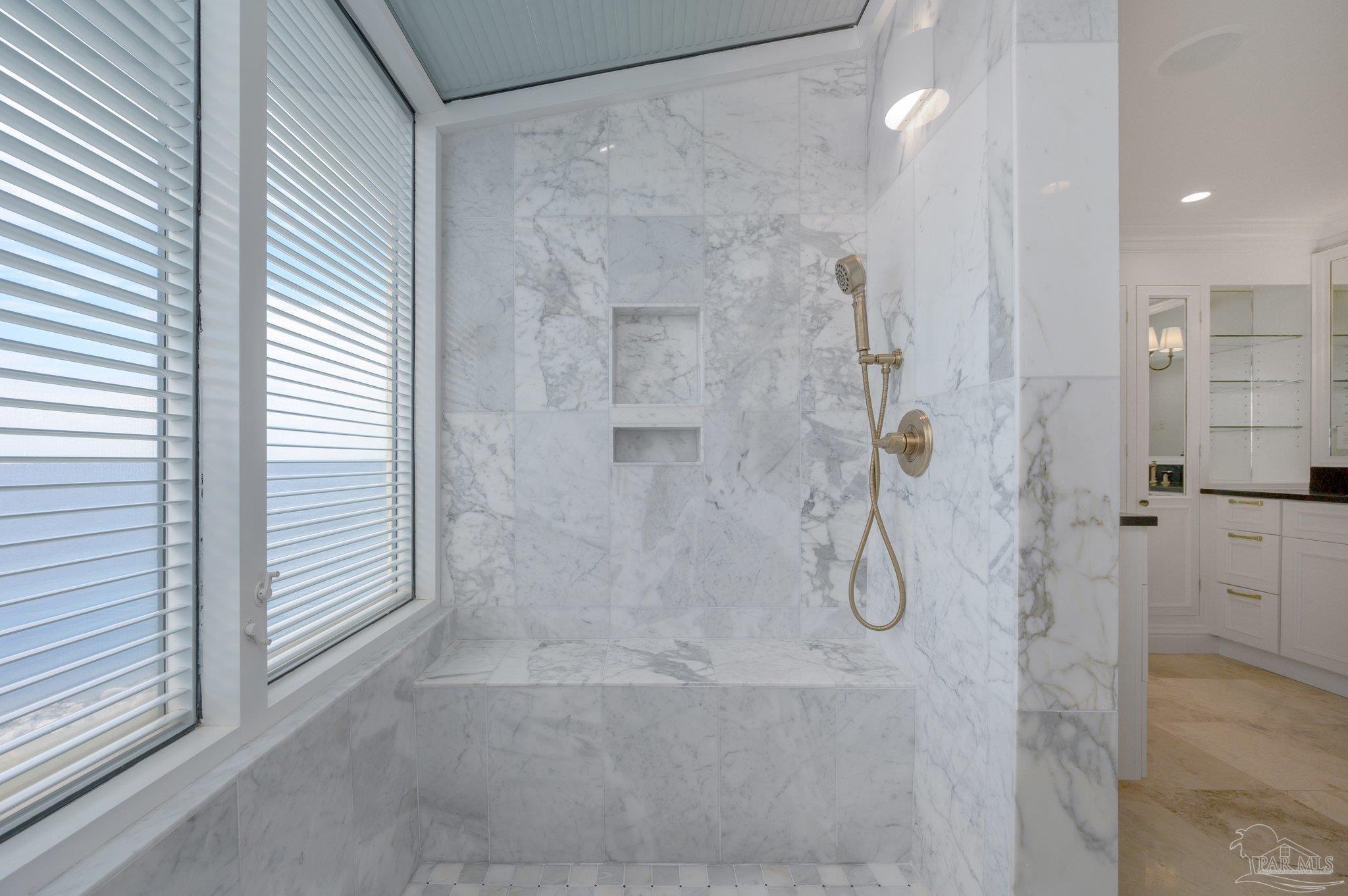 WATERFRONT LUXURY combined with the PERFECT LOCATION and unparalleled VIEWS of the Pensacola Bay are what make this impressive corner unit at Port Royal unique and one of a kind. Downtown living at its finest with access to shops, restaurants and Wahoo Stadium all within walking distance. This double unit has been completely renovated while maintaining its original charm with custom finishes and imported materials. The kitchen is a chef's dream with state of the art appliances, quartz countertops, gas range, center island and custom cabinetry. There is an additional catering kitchen that contains double ovens, dishwasher, and a full sized Sub-Zero refrigerator making this home perfect for entertaining guests. Conveniently situated between both kitchens is the formal dining room with an impressive refrigerated wine cellar with custom teak doors accessing the lanai. Off the kitchen is the grand living area with cathedral ceilings, floor to ceiling windows with breathtaking views of the Pensacola Bay and access to the lanai. The foyer is grand with custom metal railing and intricate glass French doors opening to a bonus room featuring a wet bar, ice maker, wine fridge, entertainment cabinet and even a secret door leading to a private safe. Down the hall is a powder bathroom & laundry room leading to a full bathroom and guest suite. The Master bedroom suite is located on its own private level with beautiful wood floors, balcony & custom two story closet that you have to see to believe! The Master bathroom is a sanctuary with separate vanities, dressing area, garden tub, private water closet and one of a kind marble shower with skylights overlooking the Bay. The next level features two additional guest bedrooms with full bathroom, and a bonus space accessed by a spiral staircase with stunning water views. This amazing home is complete with a spacious 3 car garage & community pool! Paradise Awaits!!