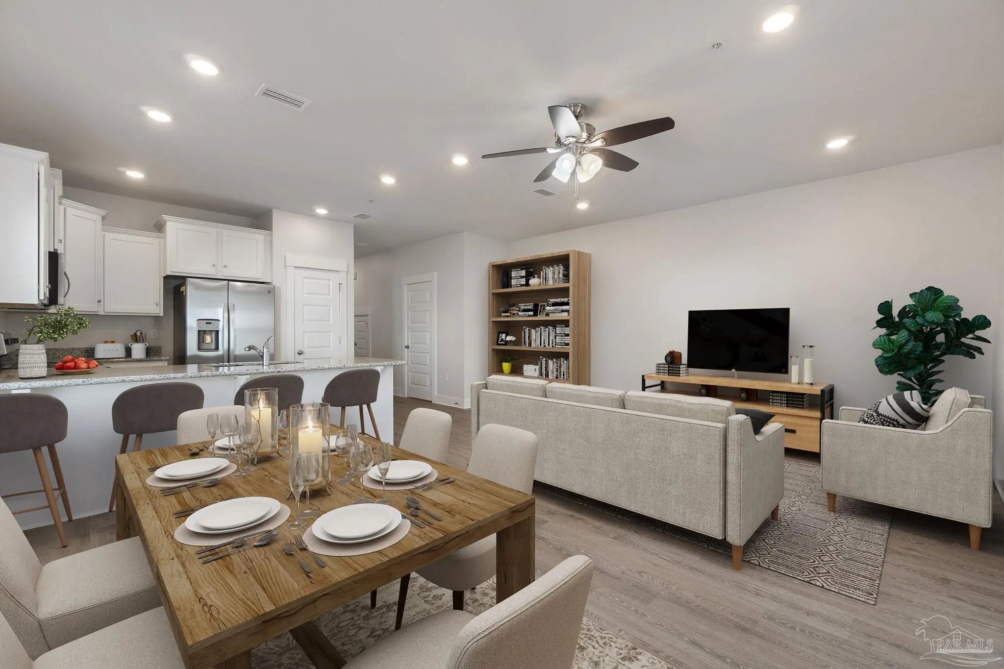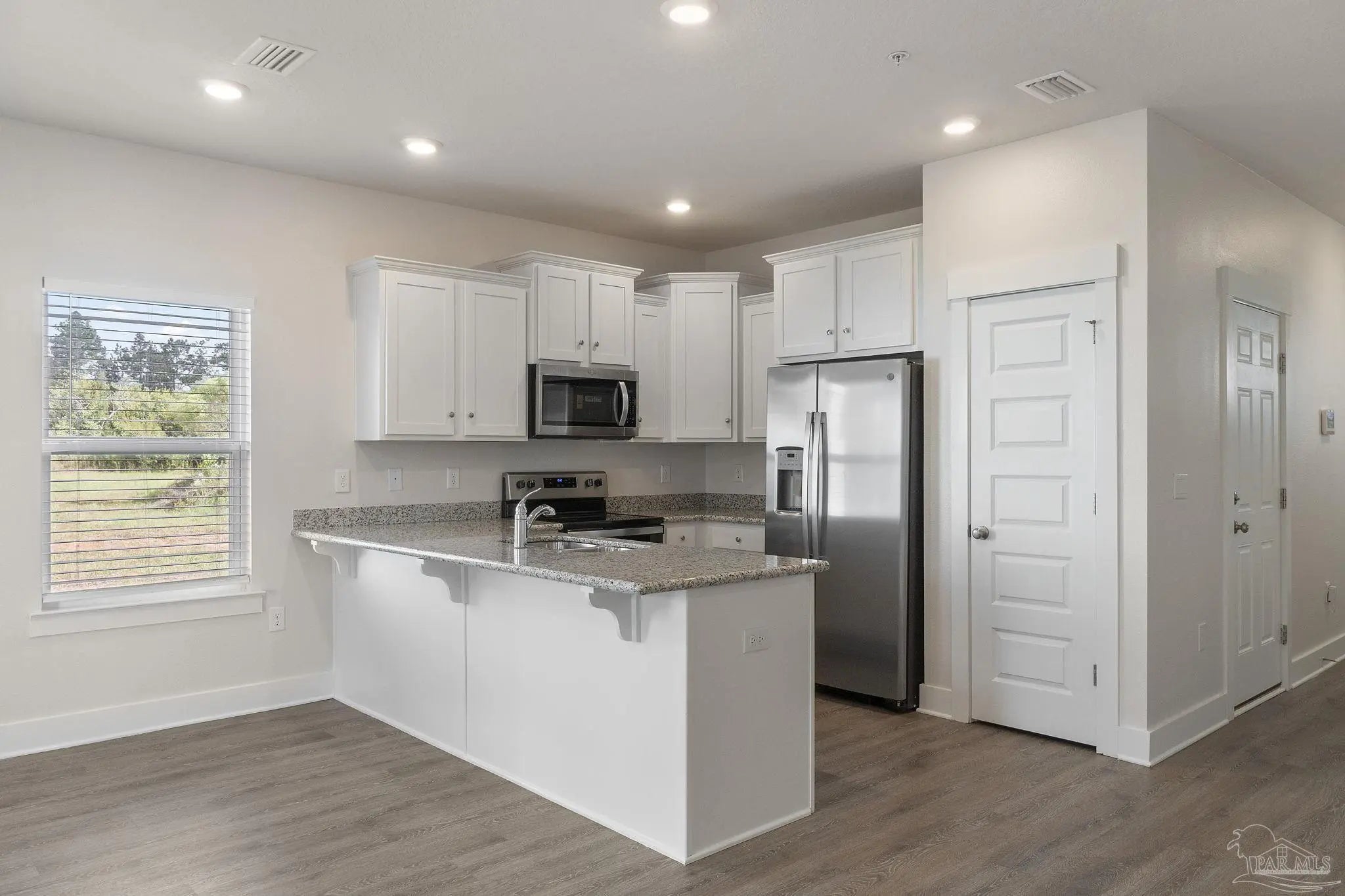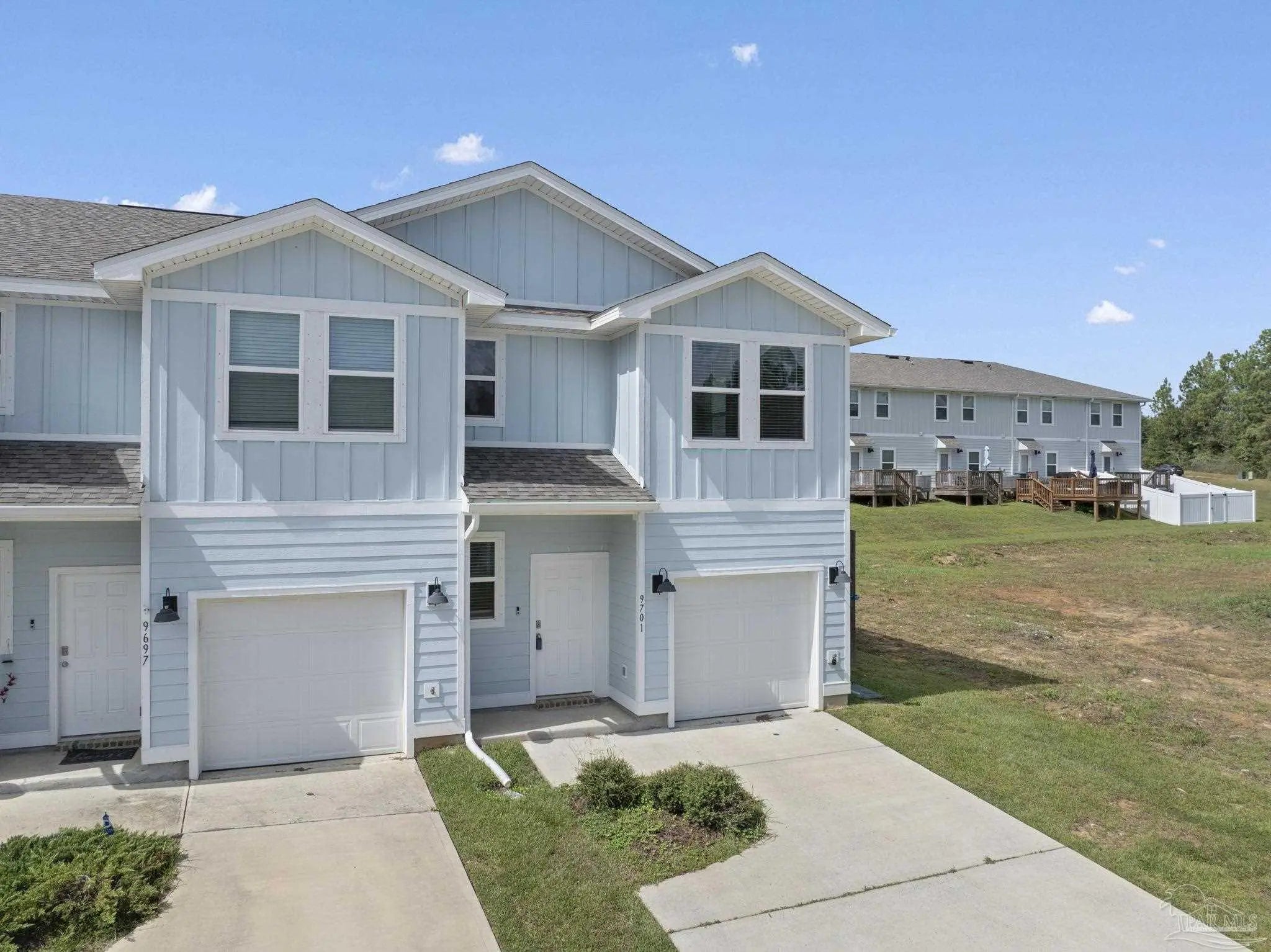 Welcome to 9701 Nature Creek Blvd—where modern design, comfort & convenience meet. This 3-bedroom, 2.5 bath end-unit townhome sits in the gated Residences at Nature Creek, offering a low-maintenance lifestyle with stylish finishes and an exceptional location. Step inside to find a bright, open-concept living space perfect for both relaxing & entertaining. The kitchen shines with granite countertops, stainless steel appliances, a center island with a breakfast bar, and white cabinetry that keeps the space feeling fresh and modern. The open layout flows seamlessly into the dining and living areas, creating an inviting atmosphere ideal for gatherings - there's even a half-bath downstairs to accommodate guests. Upstairs, the primary suite features a walk-in closet and en-suite bath with double sinks, and, down the hall, two additional bedrooms and a second full bath provide comfortable accommodations for guests, family, or a home office. Outside, enjoy your private patio area, attached garage, and access to a beautiful community pool with pavilion, lounge seating, and tranquil wooded surroundings—perfect for sunny weekends or quiet evenings. Nature Creek offers a peaceful setting just minutes from Navy Federal Credit Union’s main campus, I-10, and convenient access to downtown Pensacola, the airport, and sugar-white Gulf beaches. Shopping, dining, and everyday amenities are all close at hand, giving you the perfect blend of serenity and accessibility. Whether you’re looking for your first home, a stylish downsizing option, or a wise investment, this home delivers the lifestyle, comfort, and location to which you’ll love coming home!
