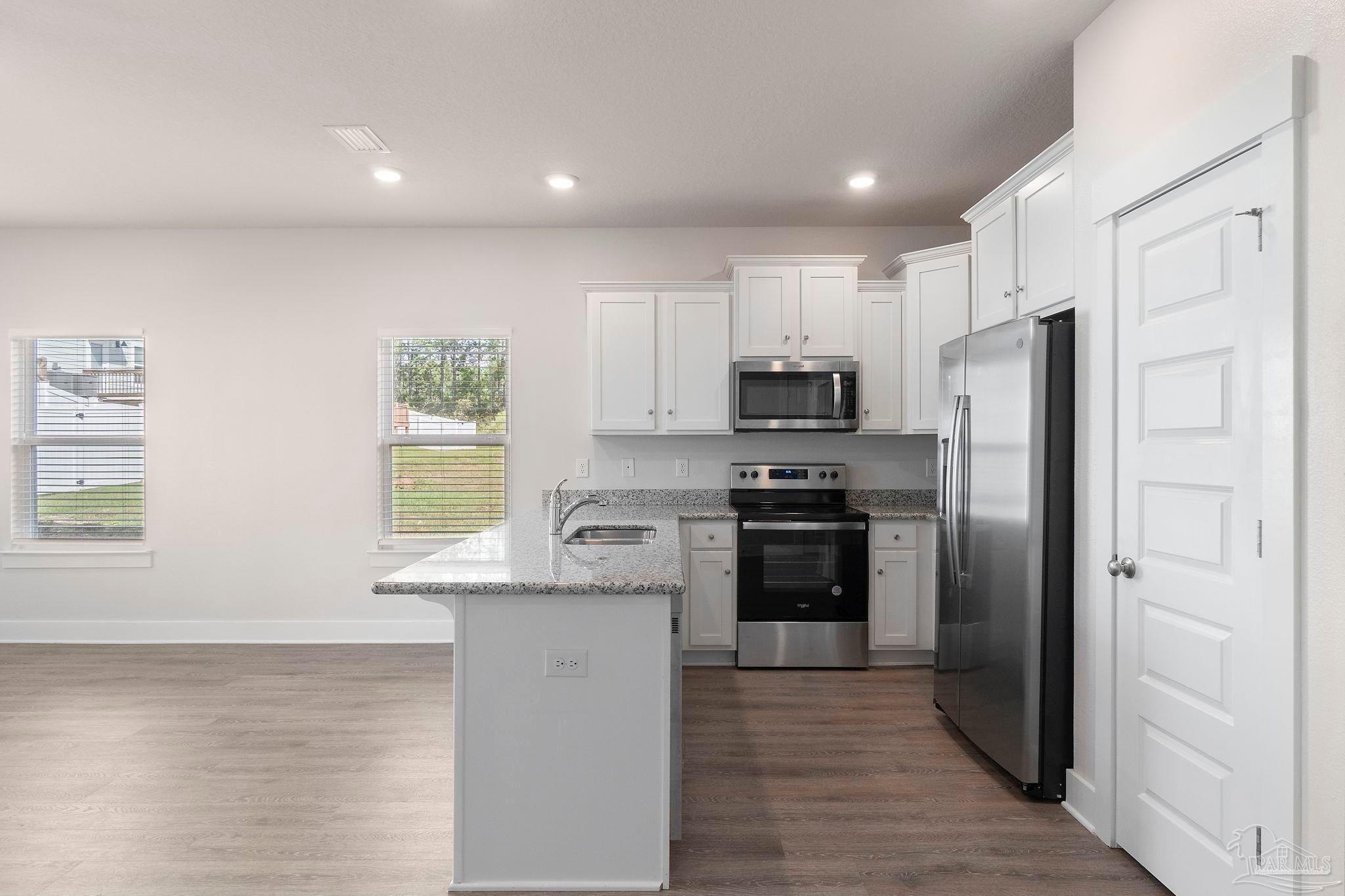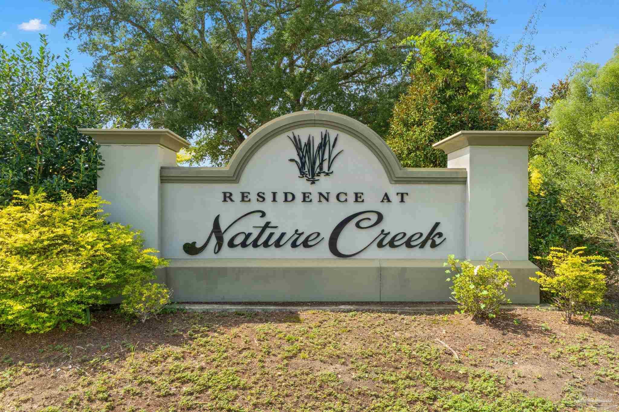Welcome to 9701 Nature Creek Blvd—where modern design, comfort & convenience meet. This 3-bedroom, 2.5 bath end-unit townhome sits in the gated Residences at Nature Creek, offering a low-maintenance lifestyle with stylish finishes and an exceptional location. Step inside to find a bright, open-concept living space perfect for both relaxing & entertaining. The kitchen shines with granite countertops, stainless steel appliances, a center island with a breakfast bar, and white cabinetry that keeps the space feeling fresh and modern. The open layout flows seamlessly into the dining and living areas, creating an inviting atmosphere ideal for gatherings - there's even a half-bath downstairs to accommodate guests. Upstairs, the primary suite features a walk-in closet and en-suite bath with double sinks, and, down the hall, two additional bedrooms and a second full bath provide comfortable accommodations for guests, family, or a home office. Outside, enjoy your private patio area, attached garage, and access to a beautiful community pool with pavilion, lounge seating, and tranquil wooded surroundings—perfect for sunny weekends or quiet evenings. Nature Creek offers a peaceful setting just minutes from Navy Federal Credit Union’s main campus, I-10, and convenient access to downtown Pensacola, the airport, and sugar-white Gulf beaches. Shopping, dining, and everyday amenities are all close at hand, giving you the perfect blend of serenity and accessibility. Whether you’re looking for your first home, a stylish downsizing option, or a wise investment, this home delivers the lifestyle, comfort, and location to which you’ll love coming home!