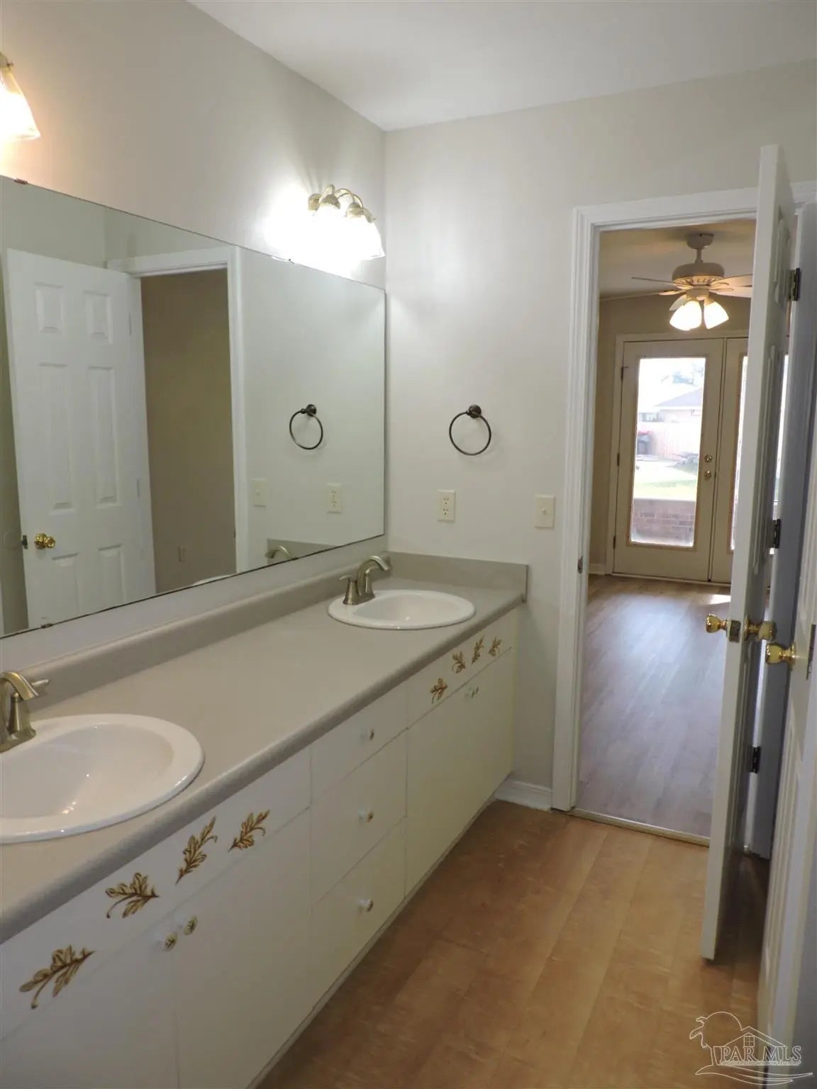 Convenient to NAS & Corry! Freshly painted interior. New wood-look vinyl plank flooring in main living areas & bedrooms. Living room with corner fireplace. ceiling fan & cathedral ceiling. Formal dining area with plant ledge. Breakfast nook plus breakfast bar. Fully equipped kitchen with pantry. Split floor plan. Main suite features an oversized closet, double vanity & garden tub. Inside laundry. Two car garage. Partially fenced backyard with covered porch & open patio. Small dog considered with owner approval.