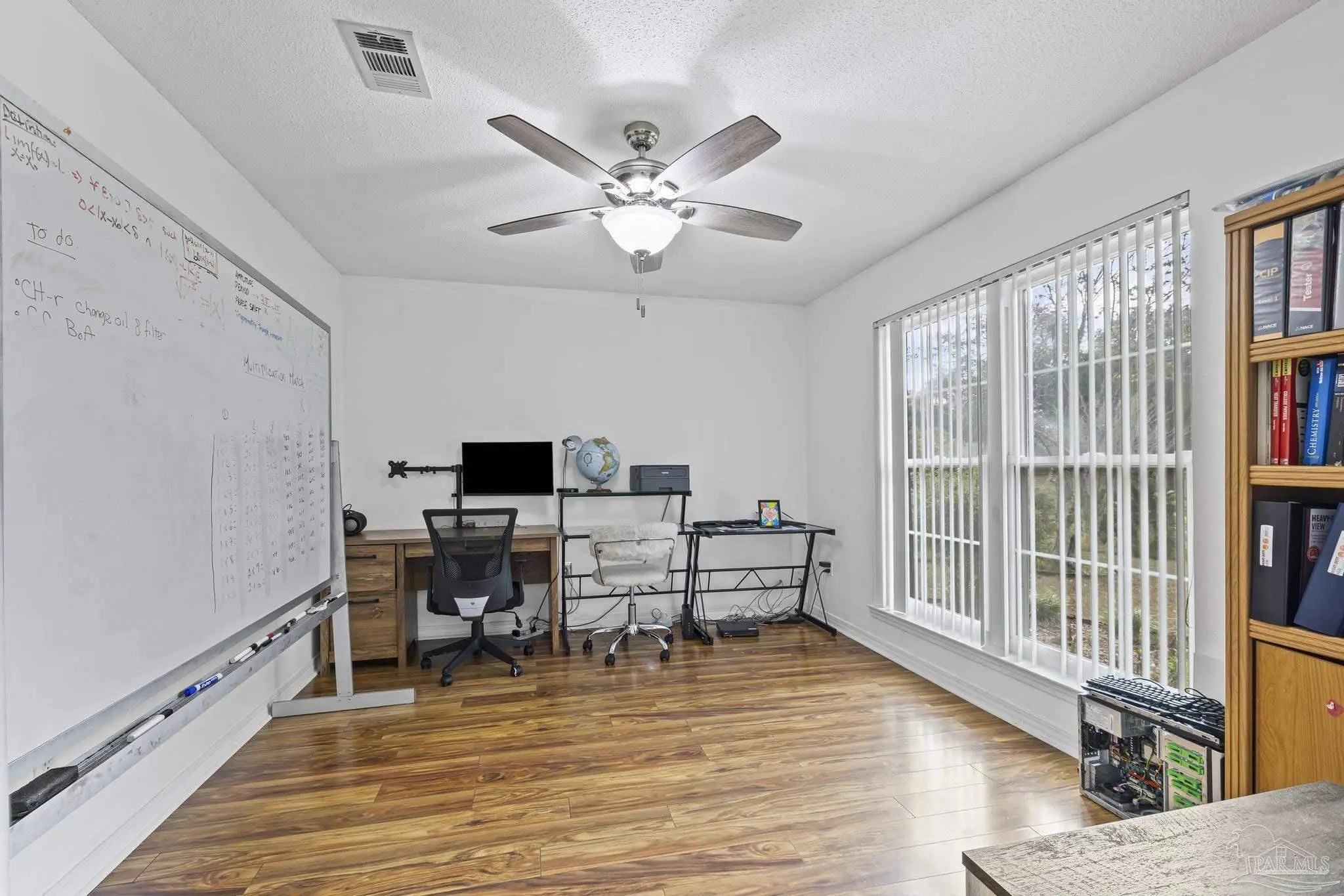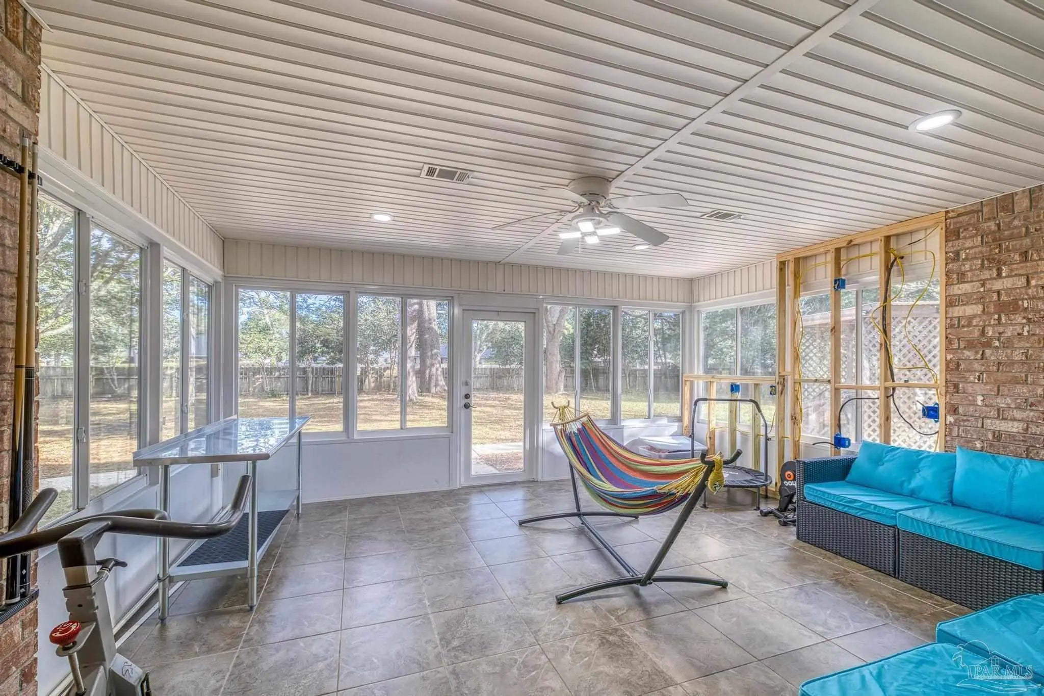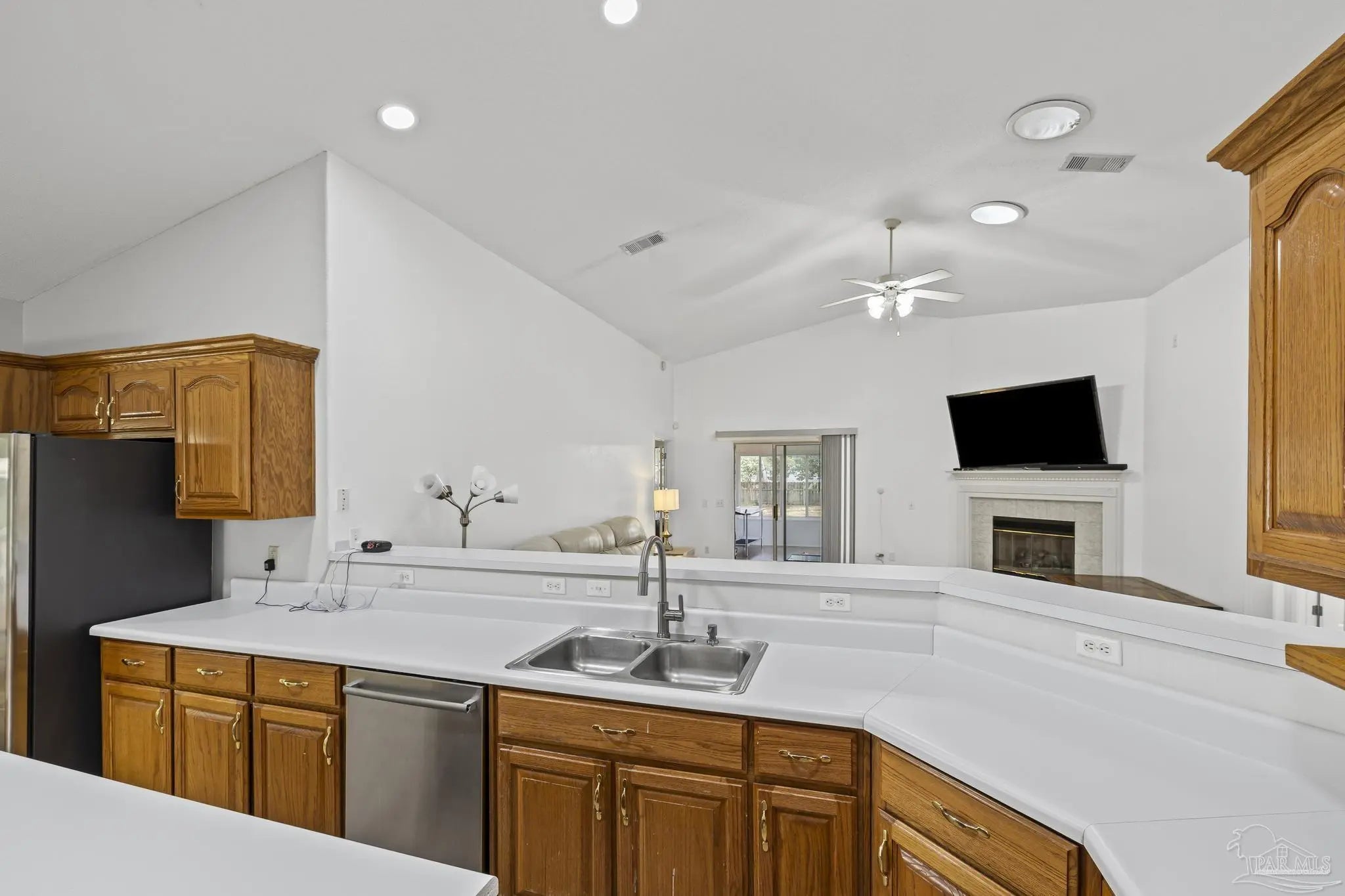TANGLEWOOD GOLF COURSE BEAUTY ~ 4 bedroom PLUS OFFICE ~ Don't miss this one! All brick, one story home ready for new owners to enjoy. Covered porch to foyer with OFFICE on your right with double door entry and formal DINING room to your left with high ceilings. KITCHEN has island, electric stove, refrigerator, pantry cabinetry, plentiful countertop for easy meal prep, extended bar area for stools plus spacious eat in area with slider door access to side yard / walkway to golf course views. LIVING ROOM is oversized for your larger furniture and also has gas fireplace and slider door access to SUNROOM. MAIN BEDROOM has tray ceiling and ensuite bath that has double vanity, tiled shower, OVERSIZED walk in closet plus linen closet for additional storage. Three additional bedrooms are SPLIT from main bedroom and share a hall bathroom with tub/shower combo. SUNROOM off living room has tile floors, recessed lighting and HVAC ducting to be part of the living area of this home (2200 sq feet is main home square footage; with sunroom, the total square footage is 2502 according to the county records). Other amenities include: PULL DOWN STAIRS for additional attic storage; GUTTERS; GOLF COURSE lot; 4' fence; GRILL AREA in backyard with cover; HVAC 2019; Water Heater 2017; ROOF 2022. Check out the virtual tour then hurry to see this one and get your offer in!