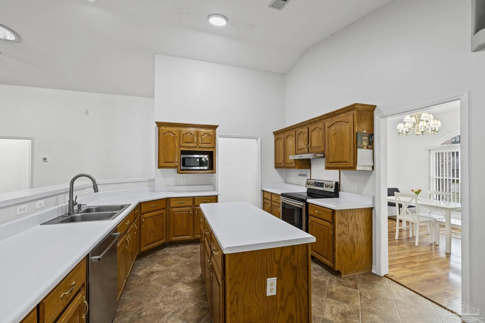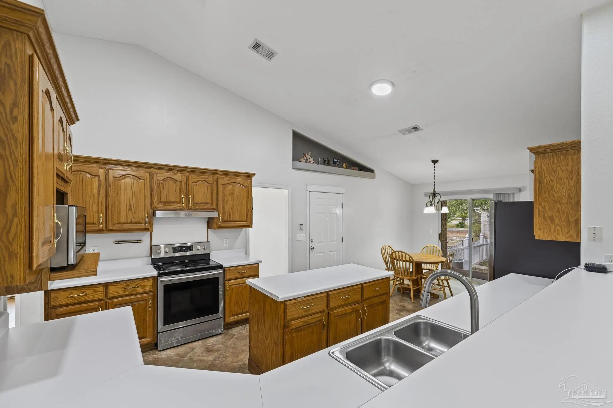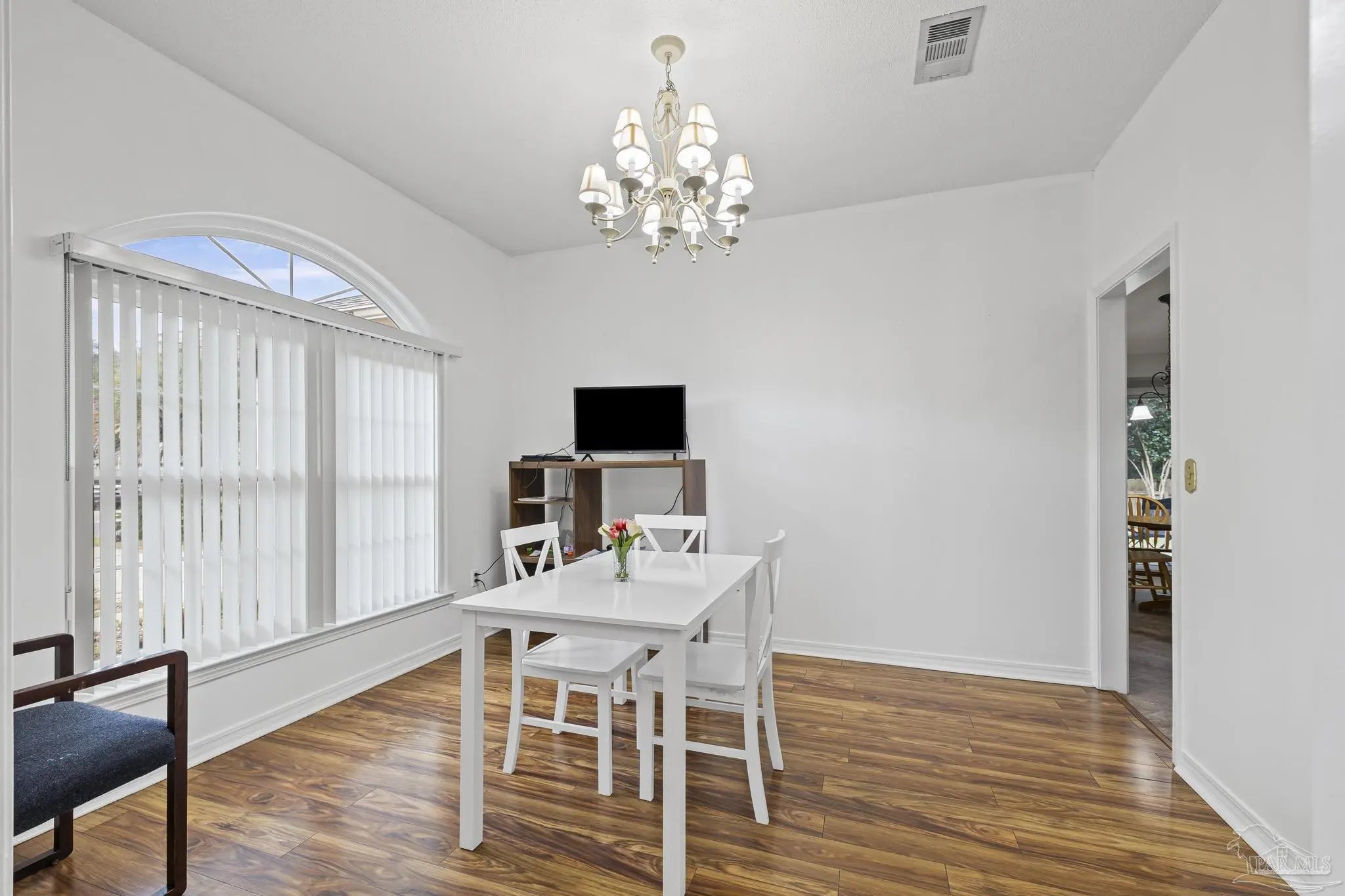 TANGLEWOOD GOLF COURSE BEAUTY ~ 4 bedroom PLUS OFFICE ~ Don't miss this one! All brick, one story home ready for new owners to enjoy. Covered porch to foyer with OFFICE on your right with double door entry and formal DINING room to your left with high ceilings. KITCHEN has island, electric stove, refrigerator, pantry cabinetry, plentiful countertop for easy meal prep, extended bar area for stools plus spacious eat in area with slider door access to side yard / walkway to golf course views. LIVING ROOM is oversized for your larger furniture and also has gas fireplace and slider door access to SUNROOM. MAIN BEDROOM has tray ceiling and ensuite bath that has double vanity, tiled shower, OVERSIZED walk in closet plus linen closet for additional storage. Three additional bedrooms are SPLIT from main bedroom and share a hall bathroom with tub/shower combo. SUNROOM off living room has tile floors, recessed lighting and HVAC ducting to be part of the living area of this home (2200 sq feet is main home square footage; with sunroom, the total square footage is 2502 according to the county records). Other amenities include: PULL DOWN STAIRS for additional attic storage; GUTTERS; GOLF COURSE lot; 4' fence; GRILL AREA in backyard with cover; HVAC 2019; Water Heater 2017; ROOF 2022. Check out the virtual tour then hurry to see this one and get your offer in!