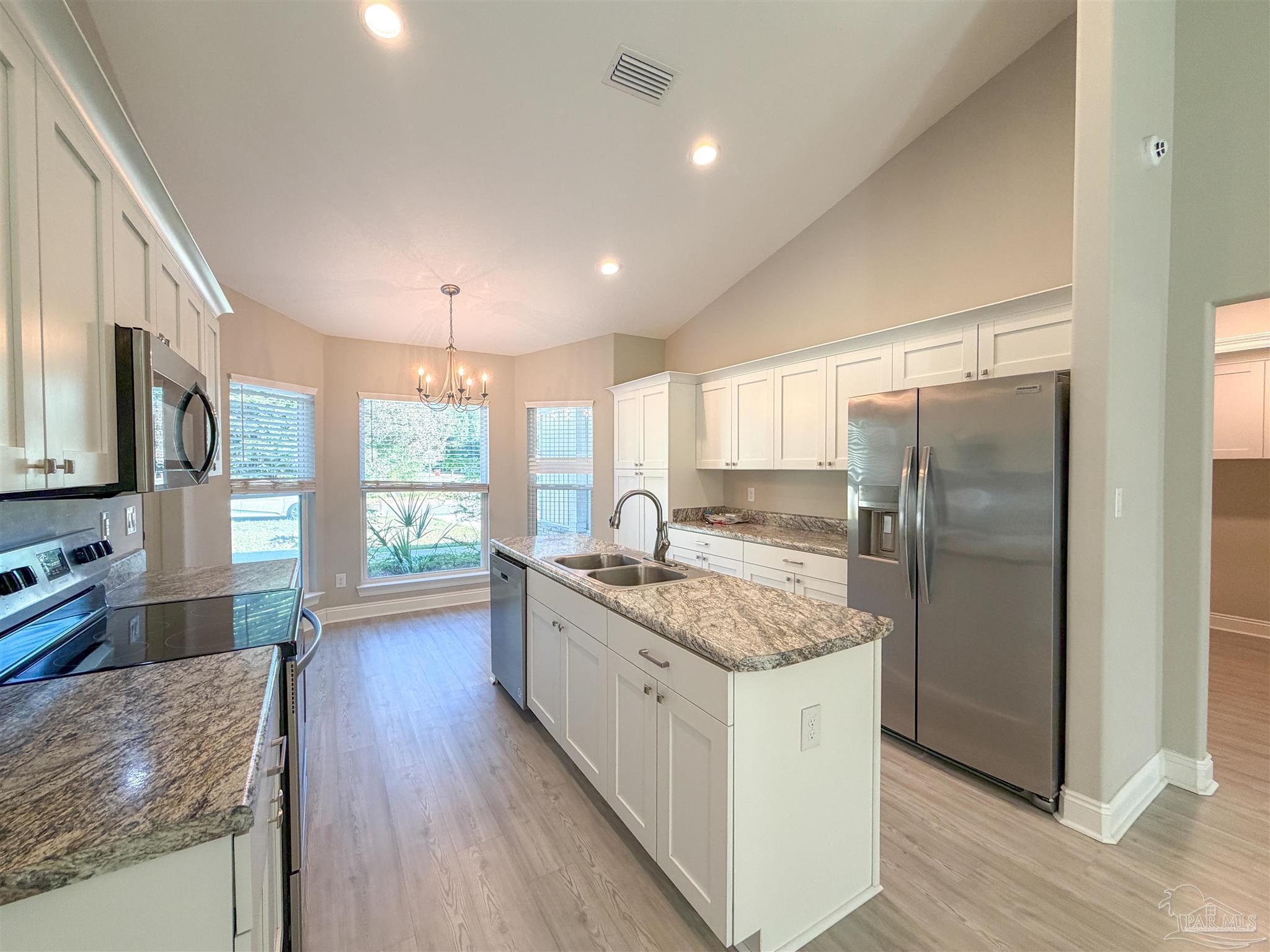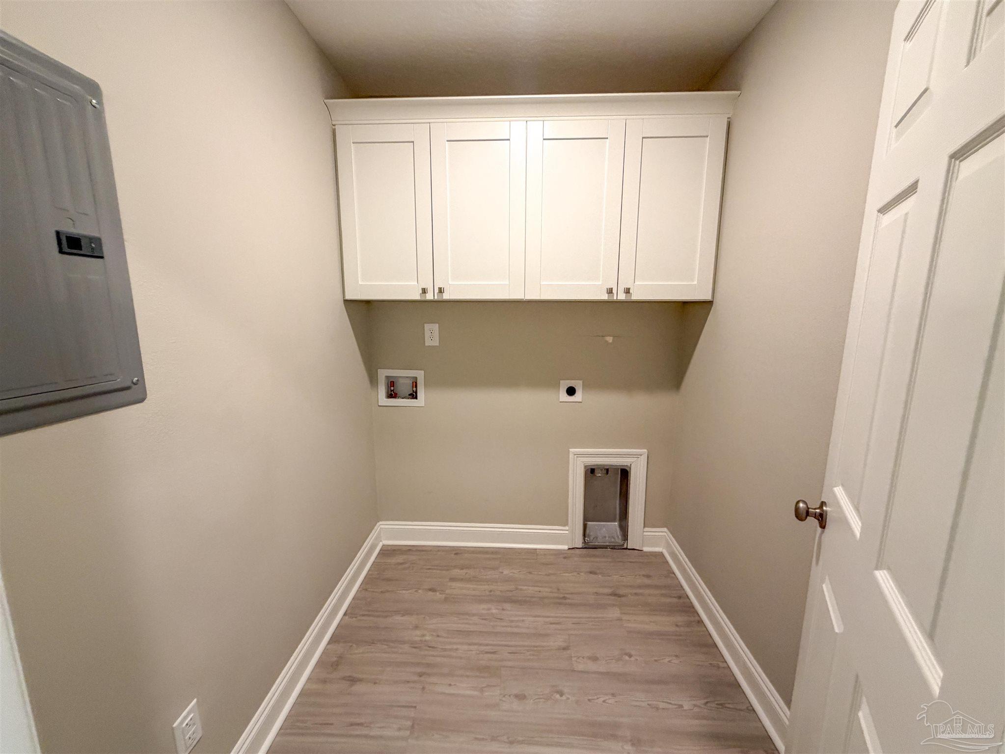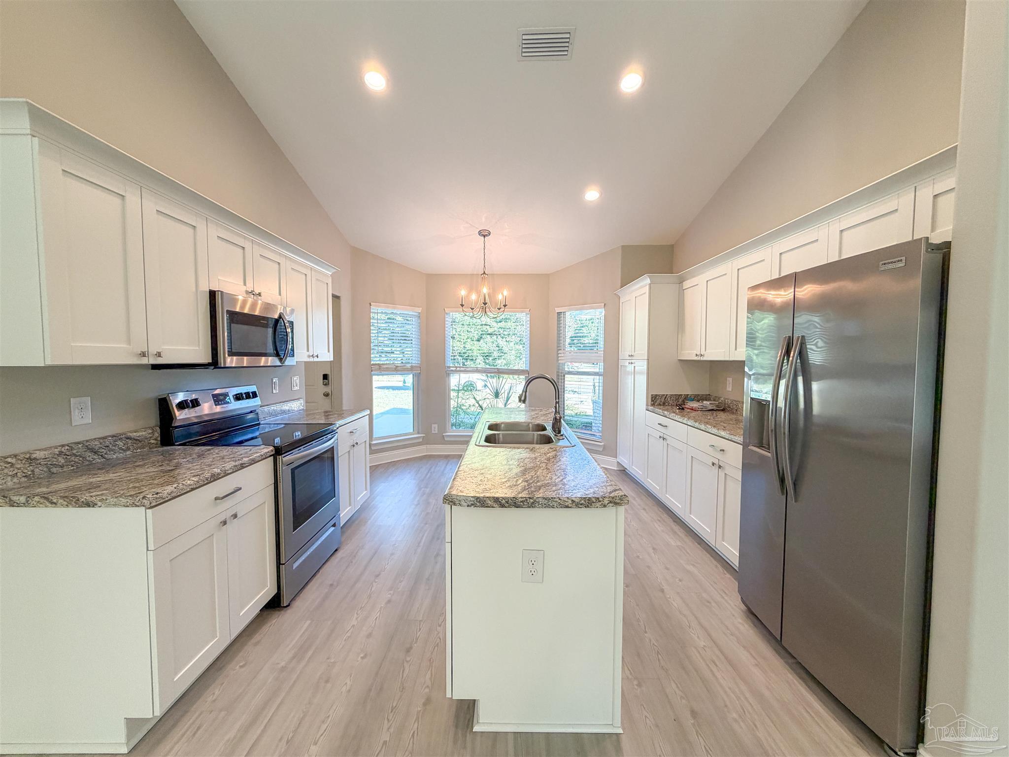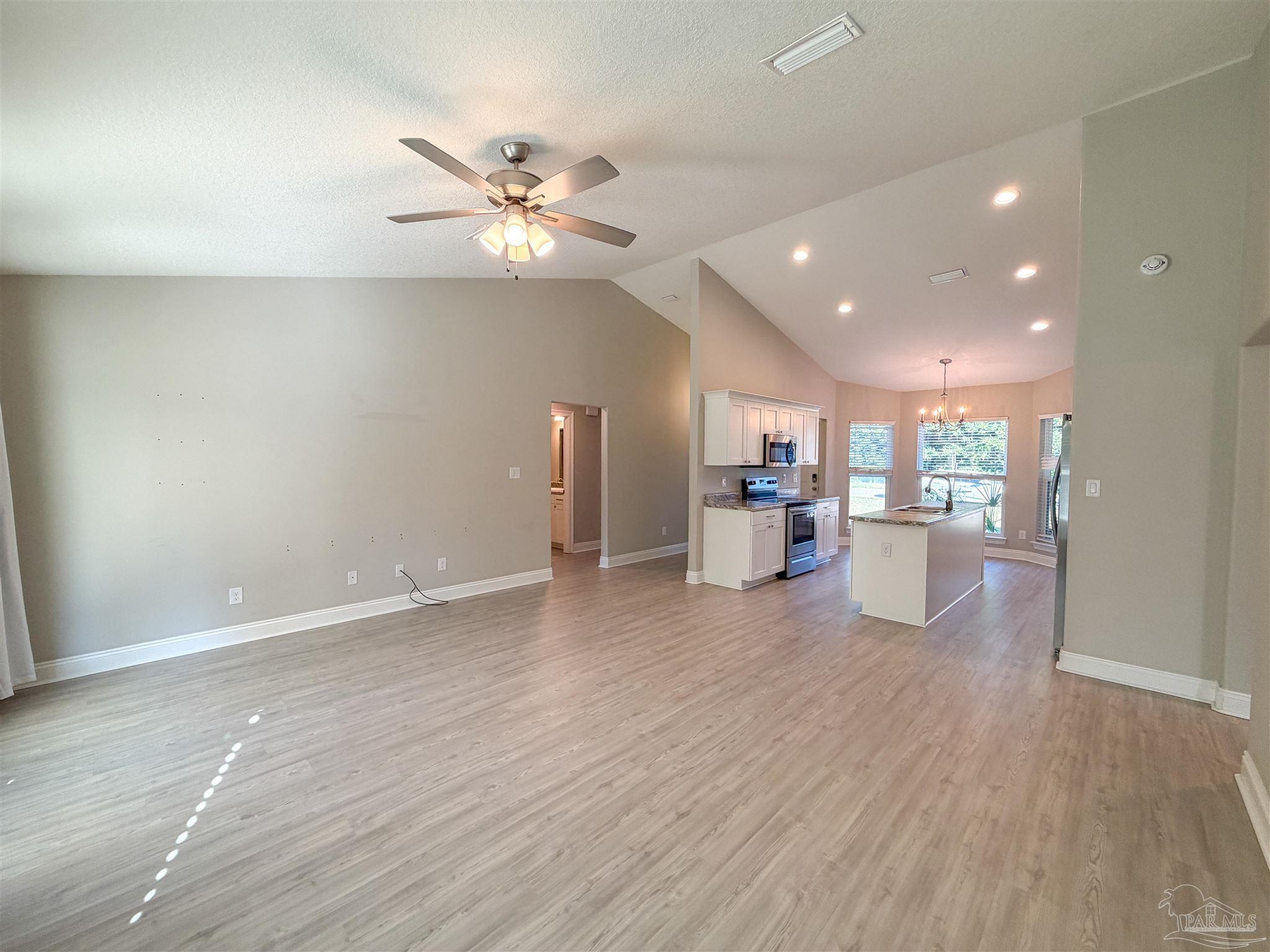 3 bedroom and 2 full bathrooms. Large vaulted ceilings in living room, luxury vinyl plank flooring, large kitchen with a plethora of cabinets, and laminate counters. Bright tiled bathroom floors and a double vanity in the primary bathroom. Large back porch with plenty of room and a sprinkler system for the huge yard. Washer/Dryer hookups in the laundry room. All Hometown Properties of the Gulf Coast residents are enrolled in the Resident Benefits Package (RBP) for $50.00/month, which includes liability insurance, credit building to help boost the resident's credit score with timely rent payments, up to $1M Identity Theft Protection, HVAC air filter delivery (for applicable properties), our best-in-class resident rewards program, on-demand pest control, and much more! More details upon application.