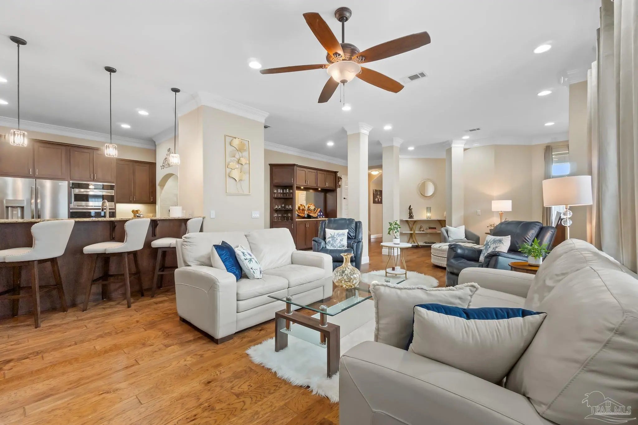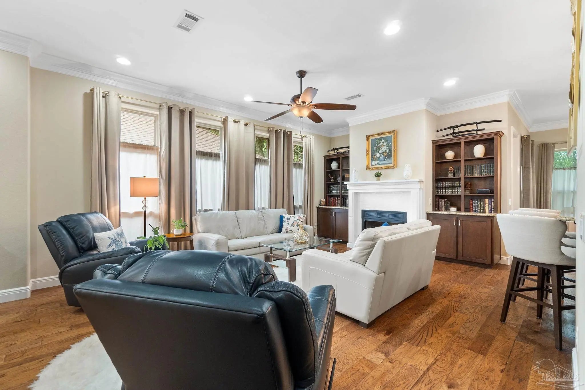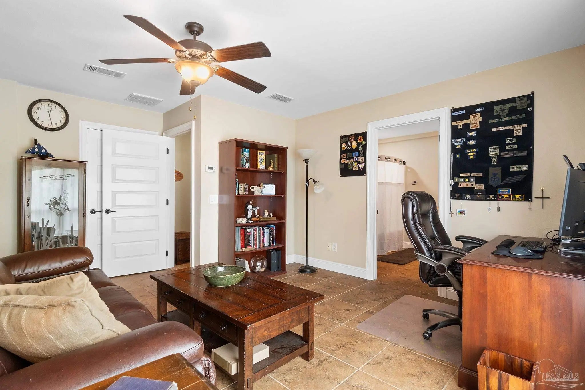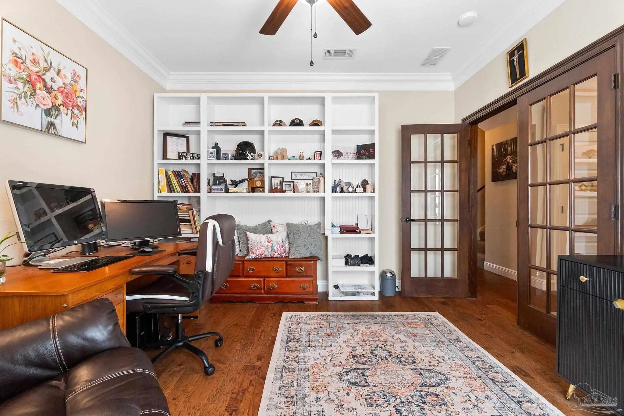 Luxury, Flexibility, and Location — All in One. Welcome to this beautifully maintained home inside one of Pensacola’s premier gated, security-patrolled communities, offering unmatched flexibility to fit your lifestyle. With 2,793 sq. ft. of thoughtfully designed space, you can make it your own — use it as a 4-bedroom home with an upstairs guest suite and private bath, or configure it as 3 bedrooms plus a formal office with elegant double doors. Prefer extra hangout space? Convert it to 3 bedrooms and a bonus room, or even 2 bedrooms with both an office and bonus room — the layout adapts to you. Inside, you’ll find upscale finishes throughout — a gourmet kitchen with stainless steel appliances and granite countertops, fresh interior paint, and plenty of storage in every room. The primary suite includes its own private screened porch, while the main living area opens to another screened outdoor retreat for relaxing or entertaining. Living here means you get the full package: pools, fitness center, tennis courts, parks, and nature trails — all in a golf-cart-friendly neighborhood just across from Navy Federal’s main campus. Top-rated schools are close by, and the Gulf beaches are only minutes away. This one’s move-in ready and built for how you actually live. Schedule your showing today and see why this community is one of Pensacola’s best-kept secrets.