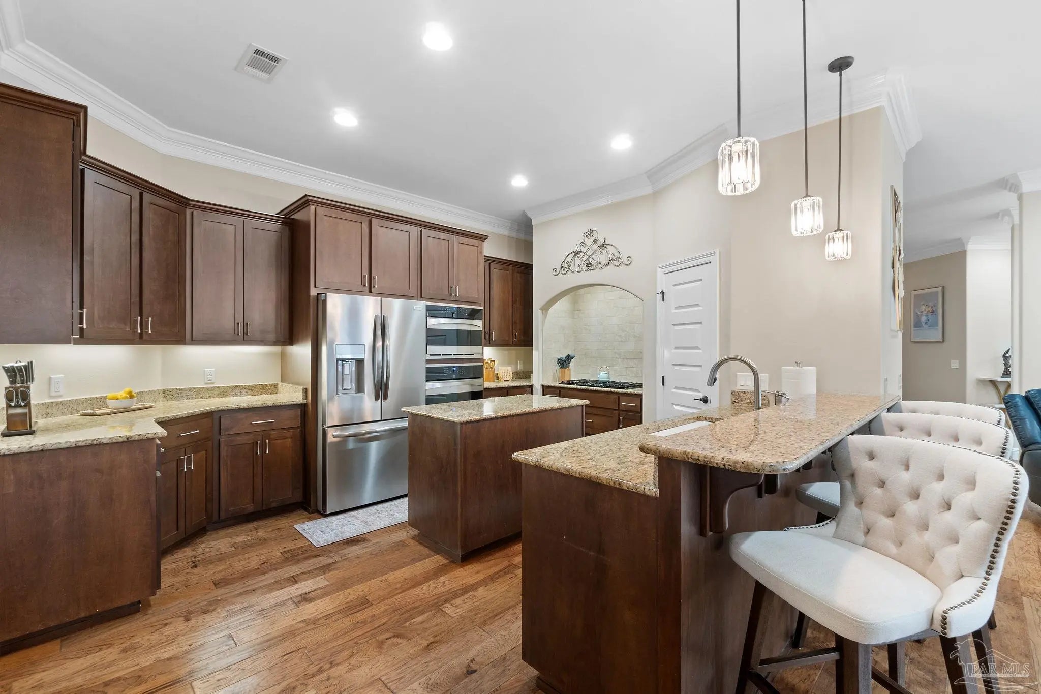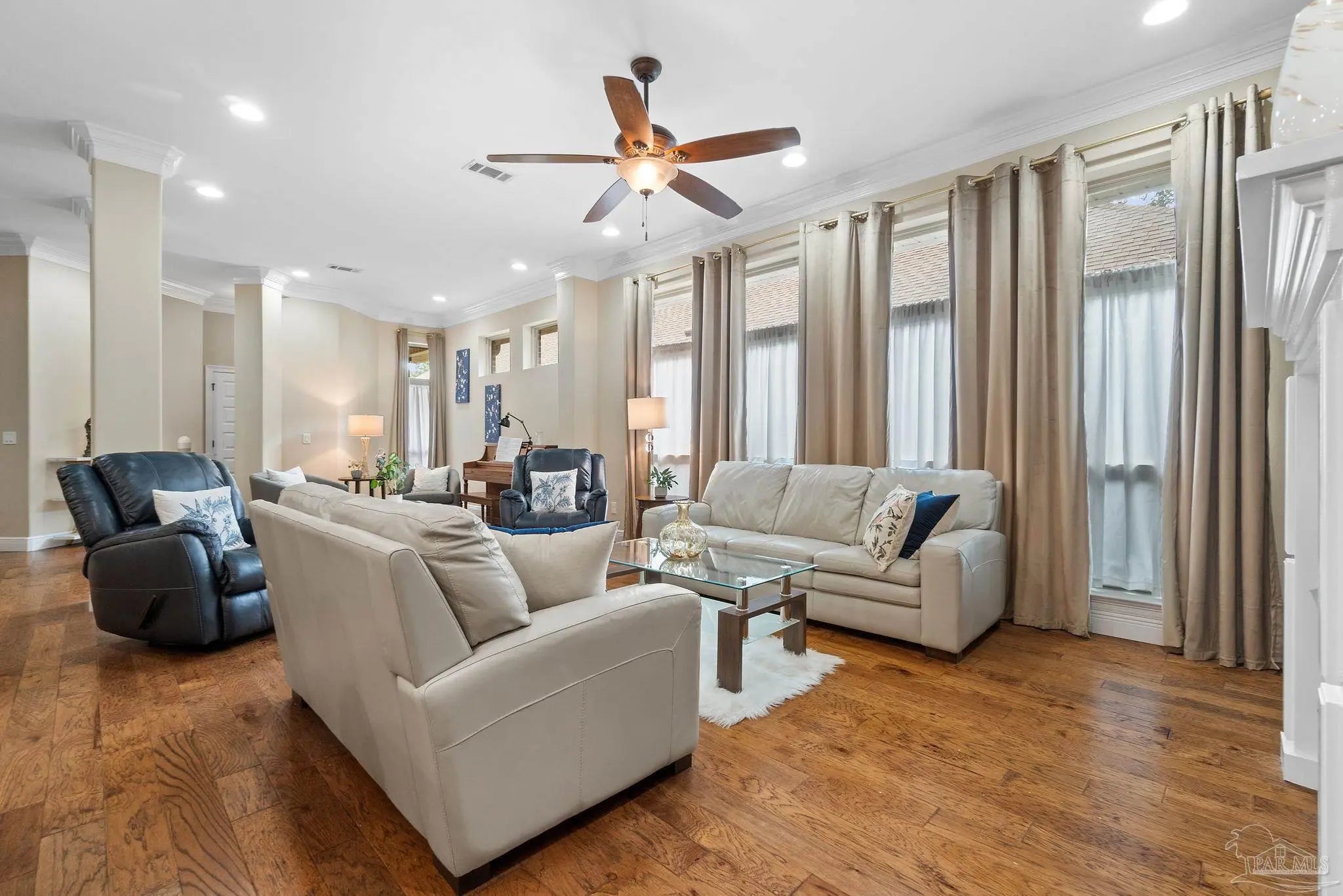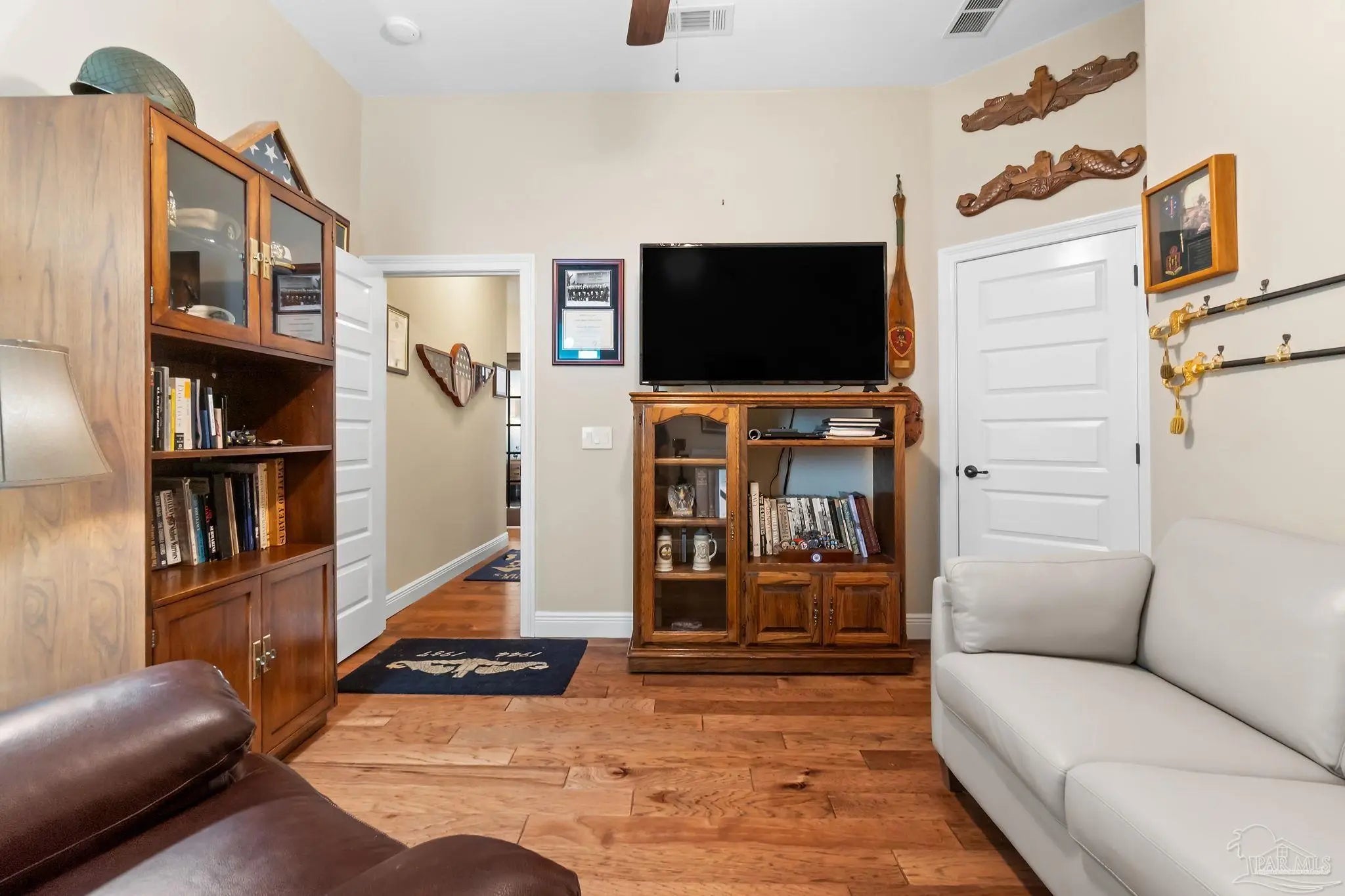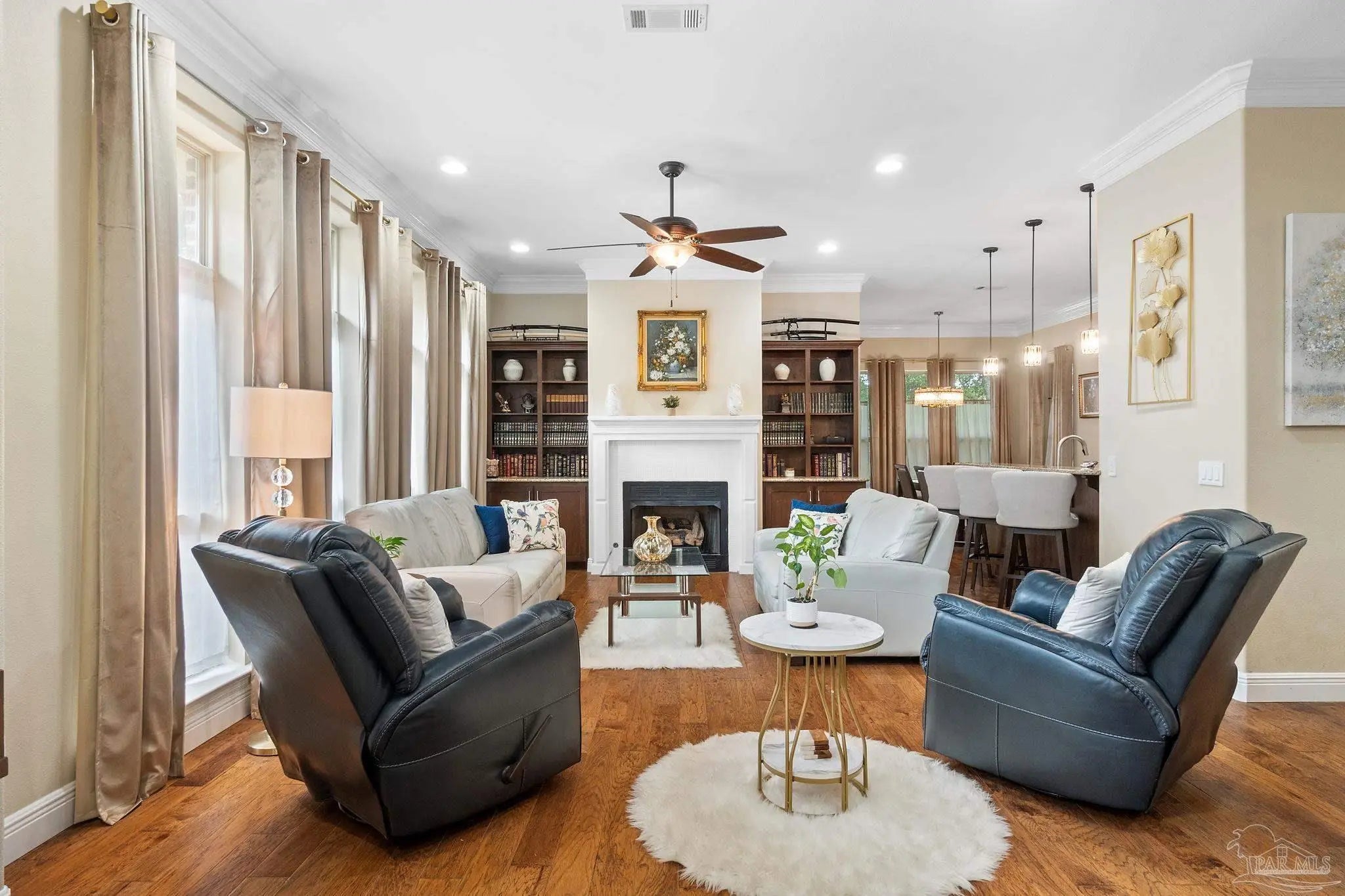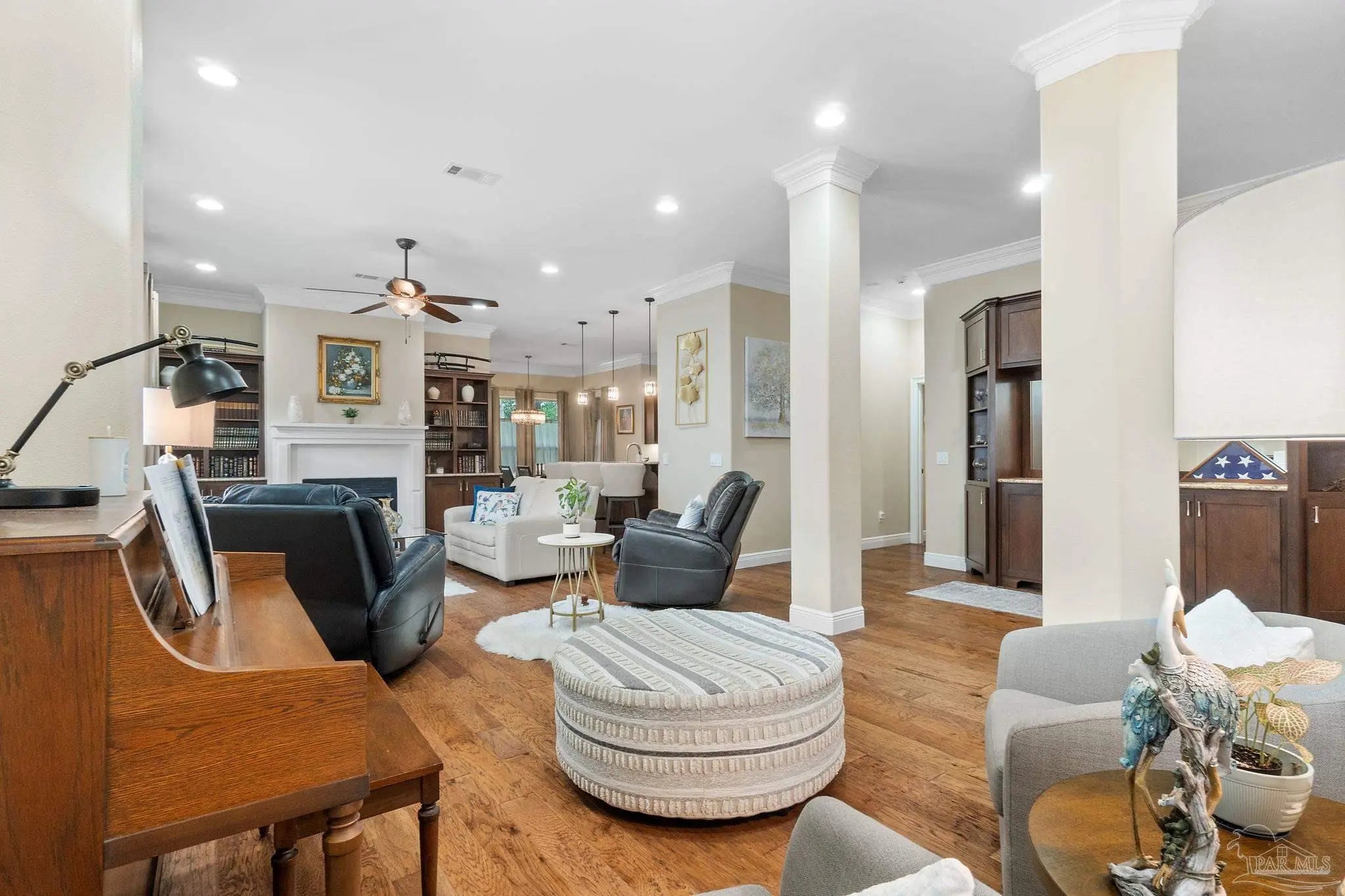 Luxury, Flexibility, and Location — All in One. Welcome to this beautifully maintained home inside one of Pensacola’s premier gated, security-patrolled communities, offering unmatched flexibility to fit your lifestyle. With 2,793 sq. ft. of thoughtfully designed space, you can make it your own — use it as a 4-bedroom home with an upstairs guest suite and private bath, or configure it as 3 bedrooms plus a formal office with elegant double doors. Prefer extra hangout space? Convert it to 3 bedrooms and a bonus room, or even 2 bedrooms with both an office and bonus room — the layout adapts to you. Inside, you’ll find upscale finishes throughout — a gourmet kitchen with stainless steel appliances and granite countertops, fresh interior paint, and plenty of storage in every room. The primary suite includes its own private screened porch, while the main living area opens to another screened outdoor retreat for relaxing or entertaining. Living here means you get the full package: pools, fitness center, tennis courts, parks, and nature trails — all in a golf-cart-friendly neighborhood just across from Navy Federal’s main campus. Top-rated schools are close by, and the Gulf beaches are only minutes away. This one’s move-in ready and built for how you actually live. Schedule your showing today and see why this community is one of Pensacola’s best-kept secrets.